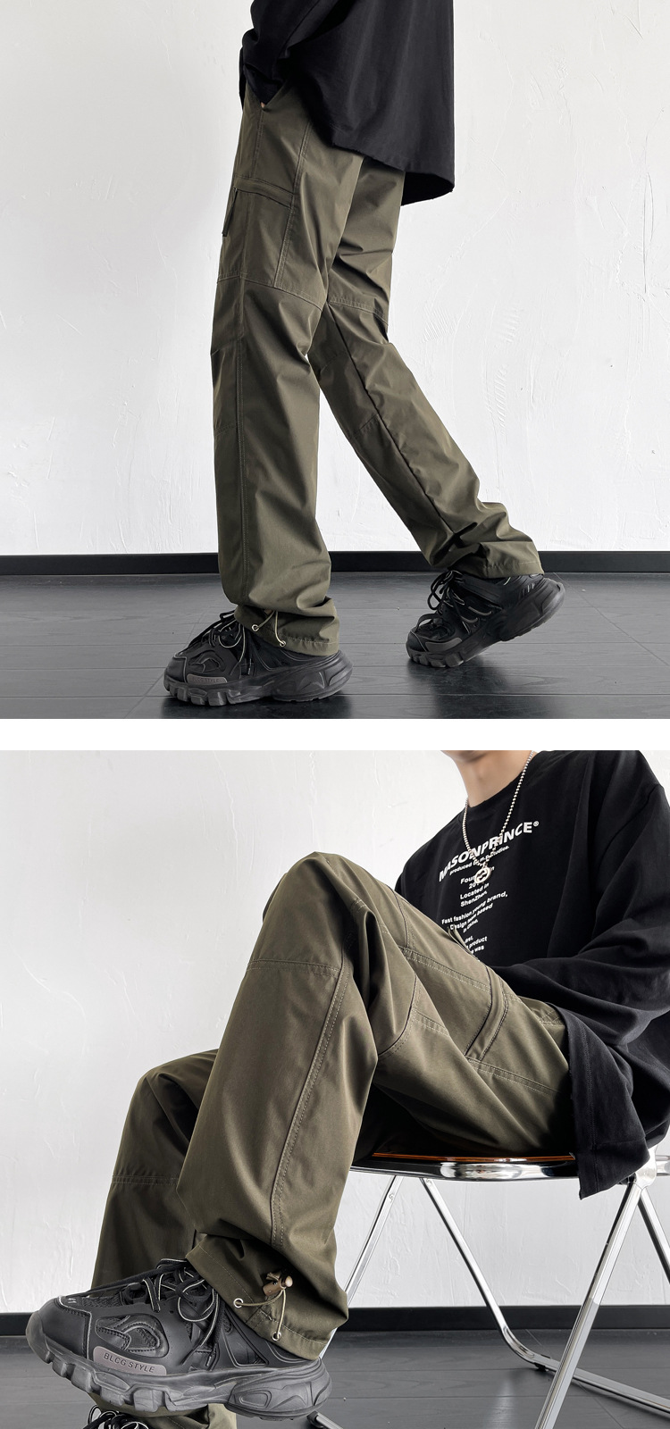 러쉬 팬츠 남성용 봄과 가을 미국 낙하산 병 트렌디 브랜드 플러키 잘 생긴 느슨한 스트레이트 등산 바지 작업복 캐주얼 바지스토어 가기