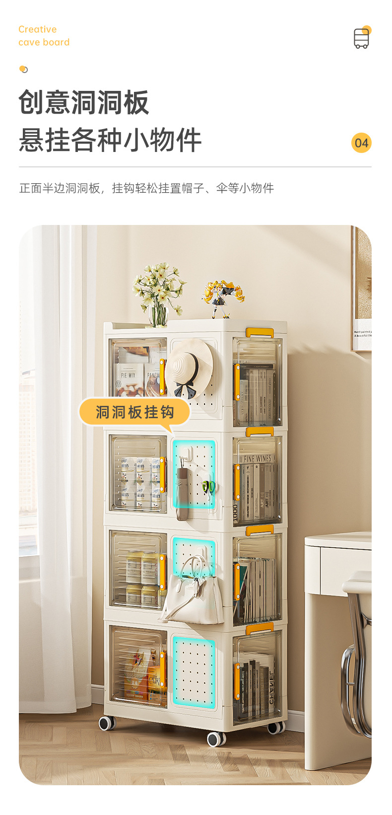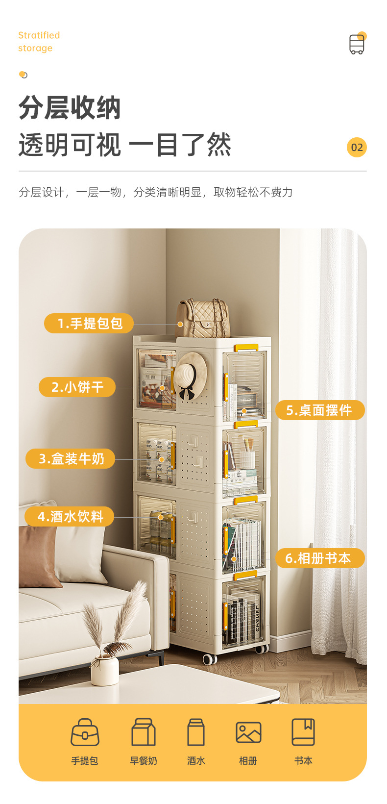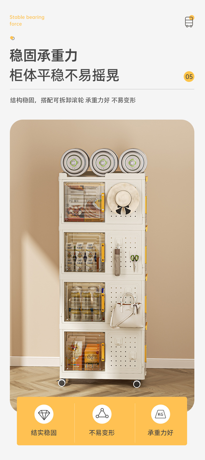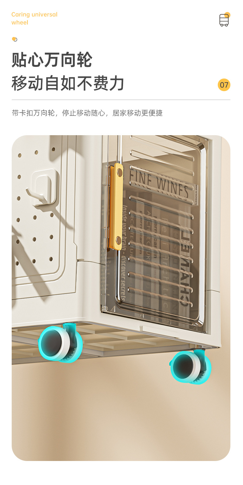 • 2층에는 범용 바퀴가 제공됩니다.