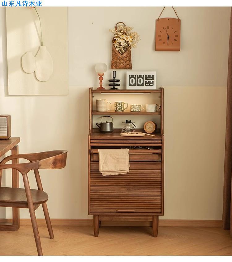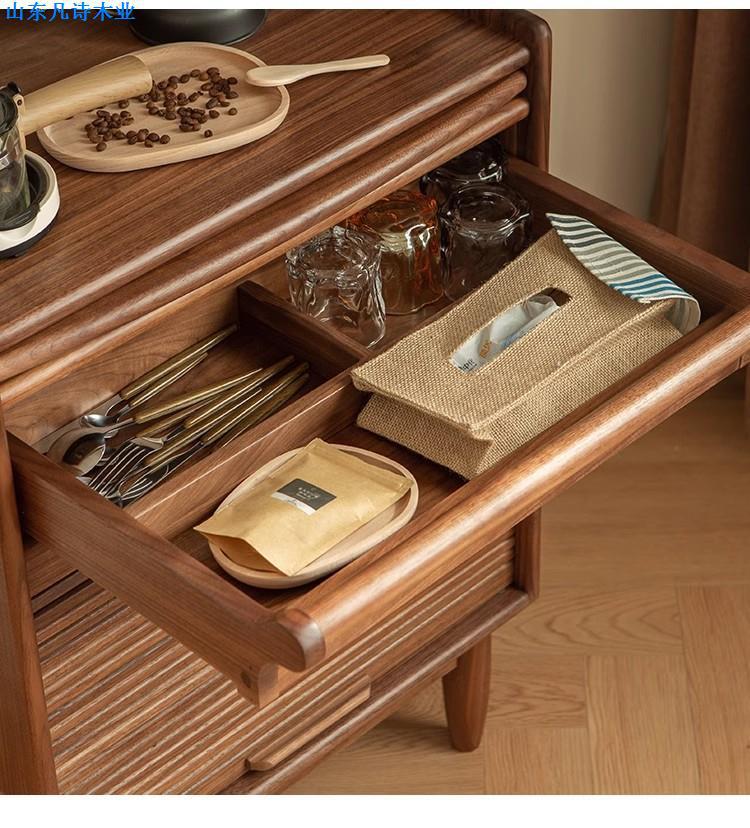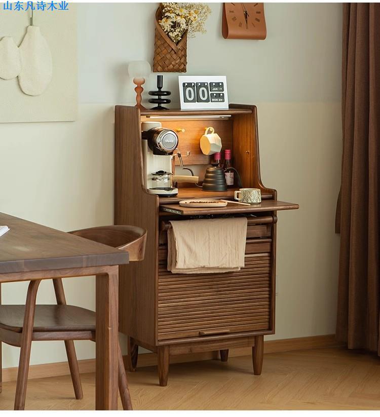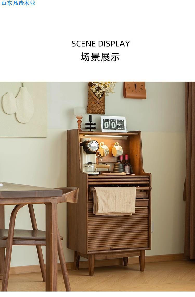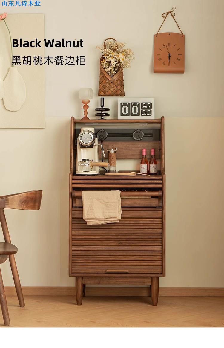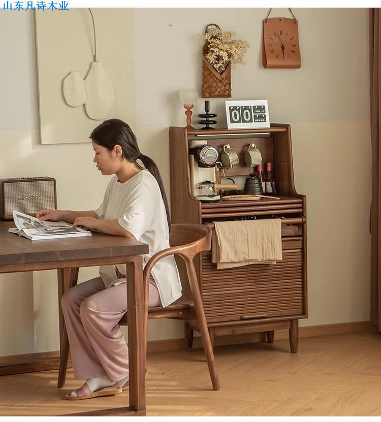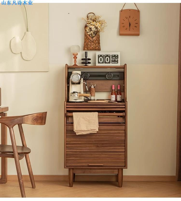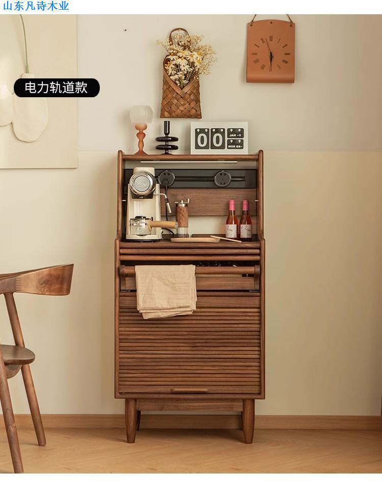북유럽 블랙 월넛 사이드 보드 현대 간단한 거실 차 캐비닛 작은 아파트 커피 카운터 단단한 나무 보관 캐비닛스토어 가기