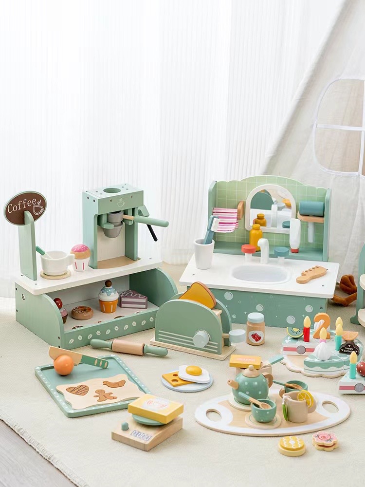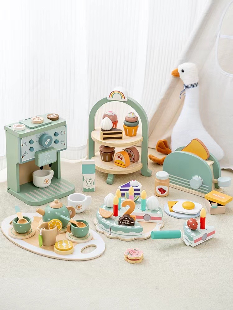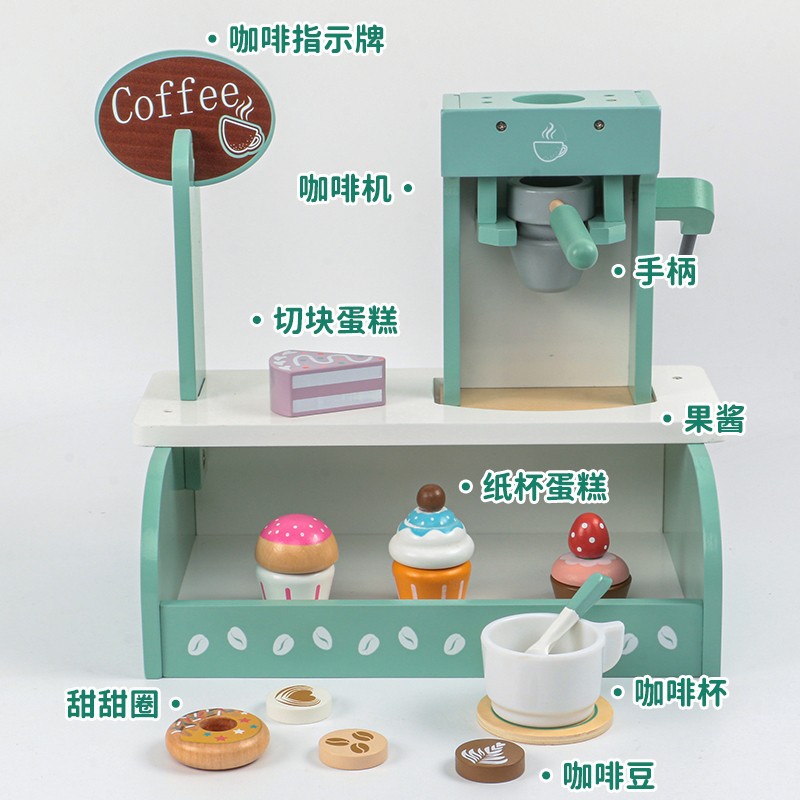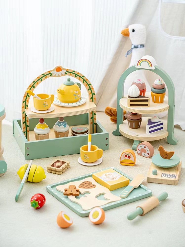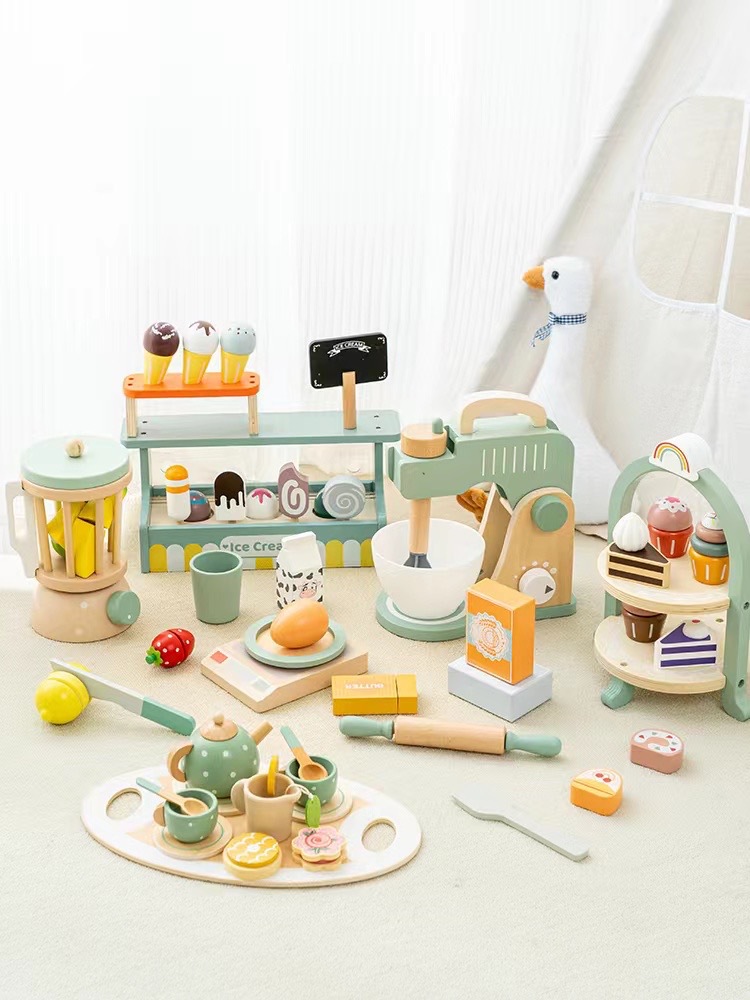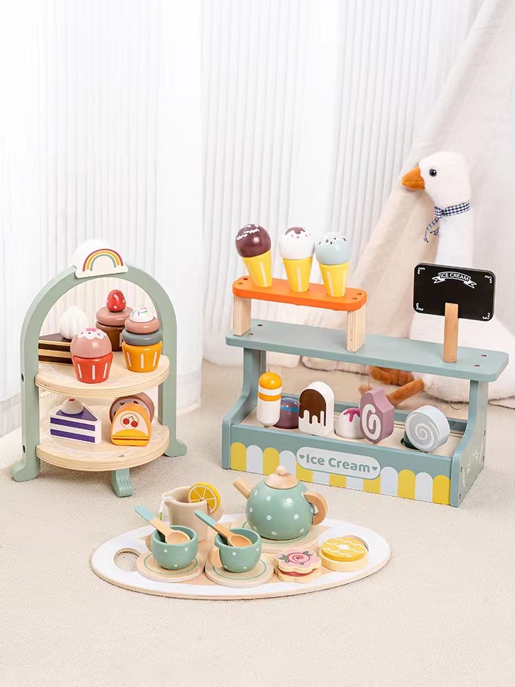 어린이 디저트 샵 소년과 소녀를위한 아이스크림 차 세트 트레이 놀이 집 나무 장난감 패키지스토어 가기
