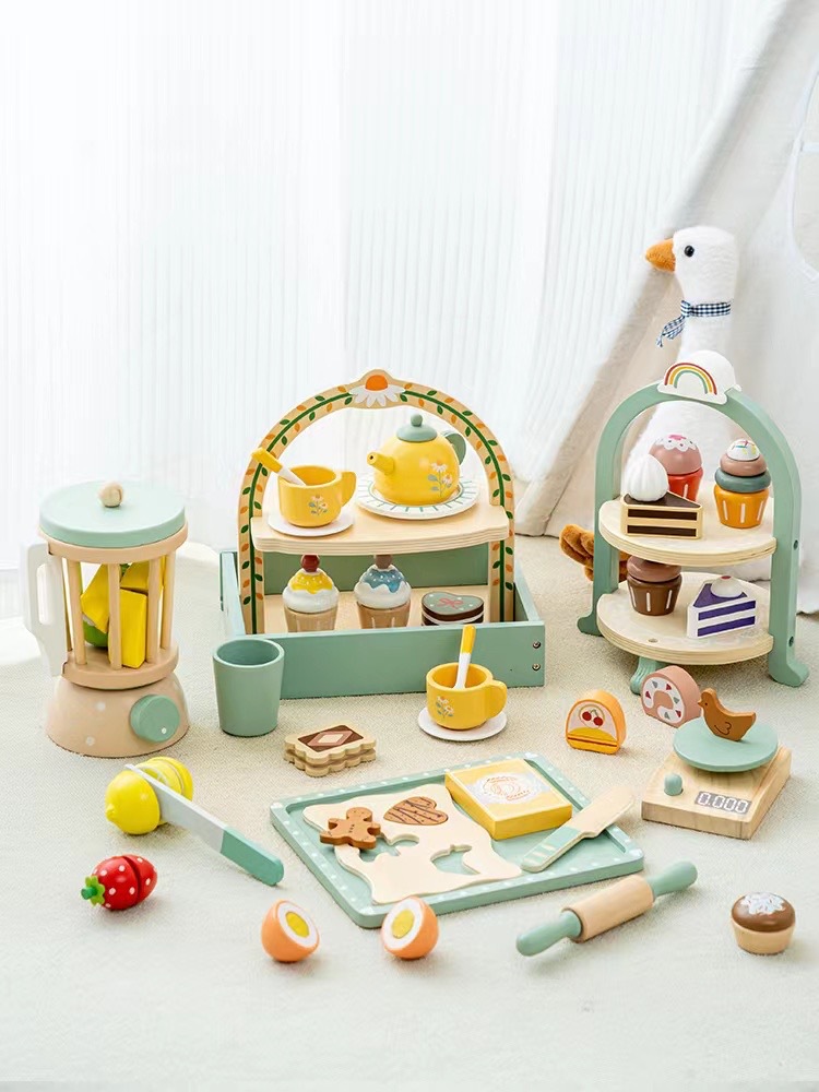 어린이 디저트 샵 소년과 소녀를위한 아이스크림 차 세트 트레이 놀이 집 나무 장난감 패키지