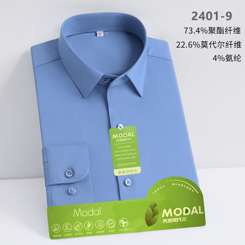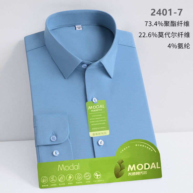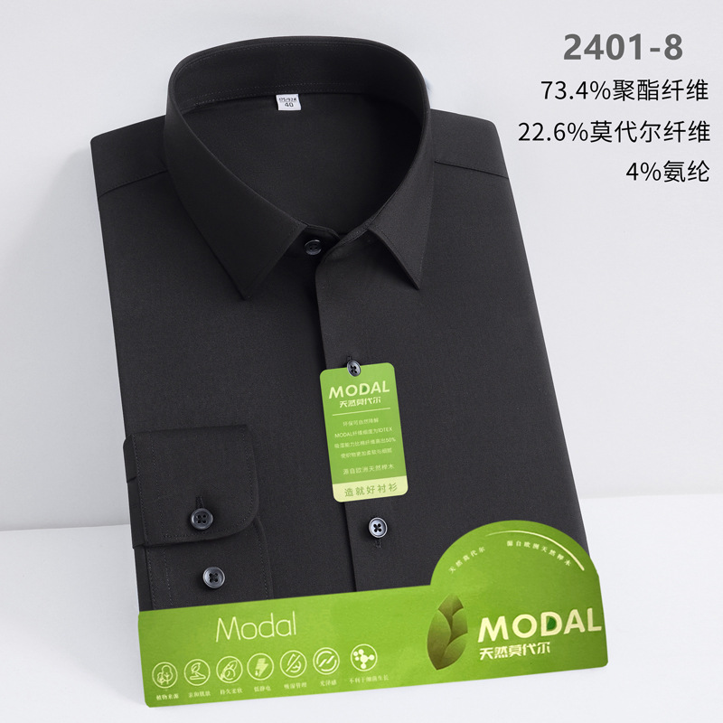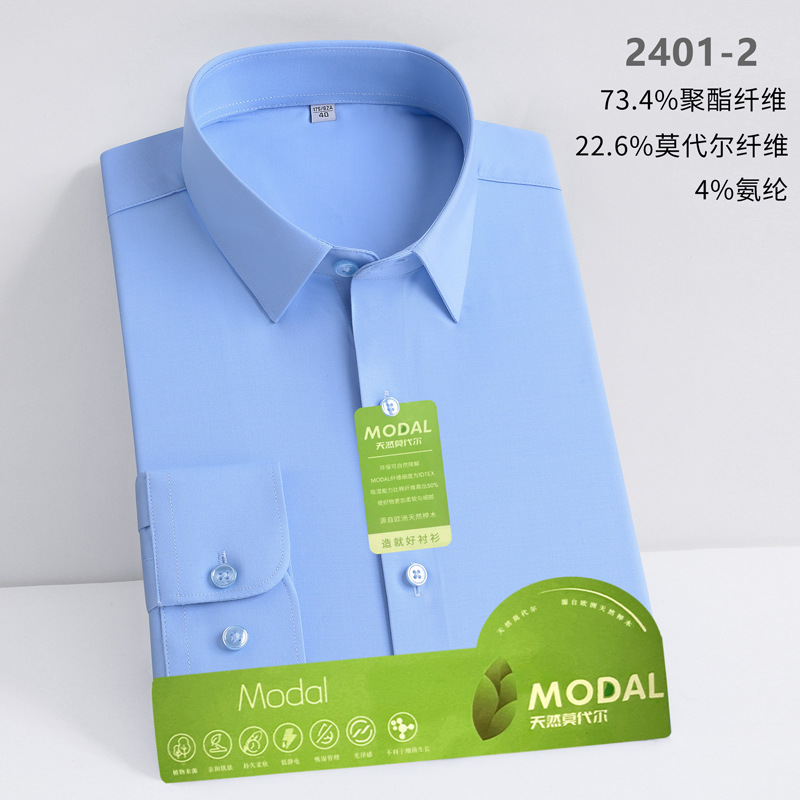 새로운 모달 긴팔 셔츠 남성용 단색 주름 방지 드레이프 캐주얼 비 다림질 비즈니스웨어 화이트 셔츠 비즈니스 남성복스토어 가기