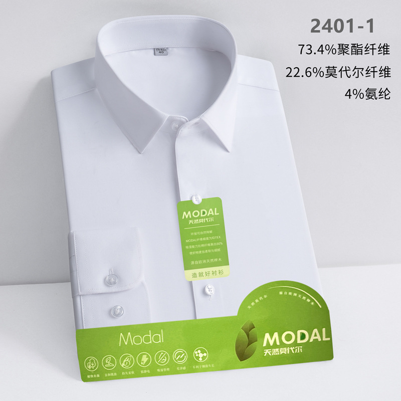 새로운 모달 긴팔 셔츠 남성용 단색 주름 방지 드레이프 캐주얼 비 다림질 비즈니스웨어 화이트 셔츠 비즈니스 남성복