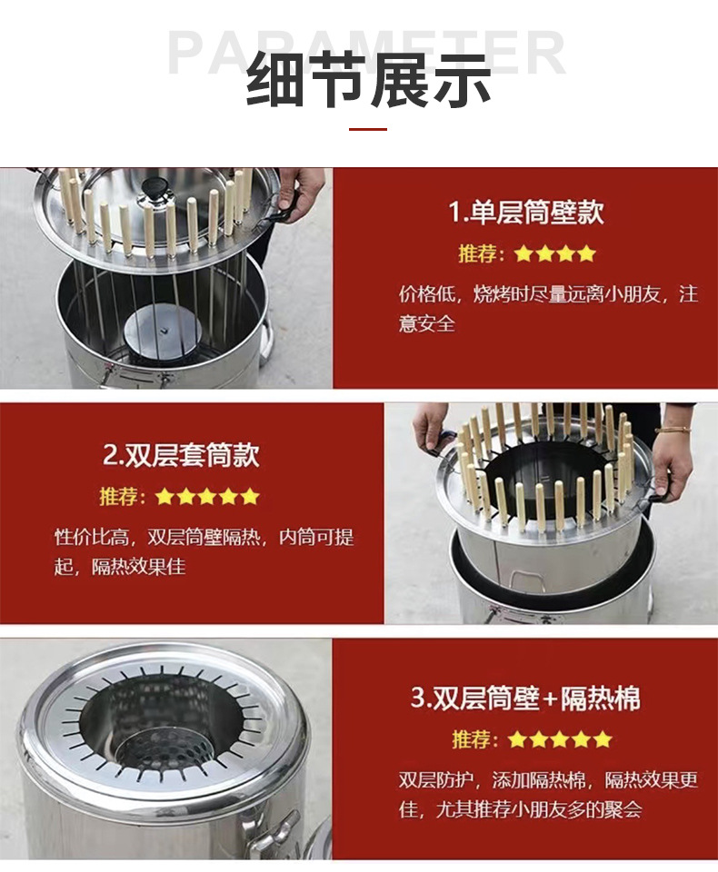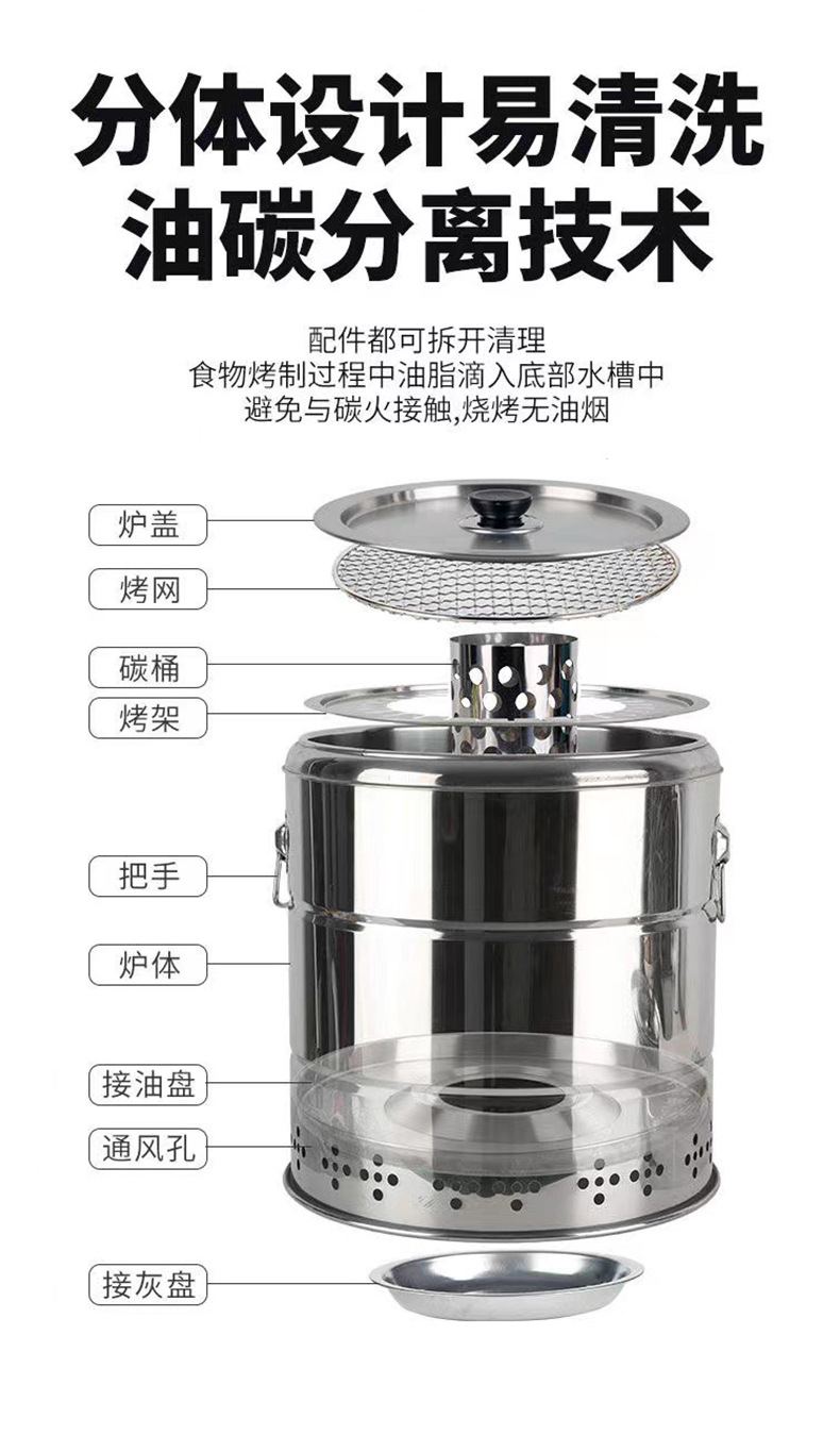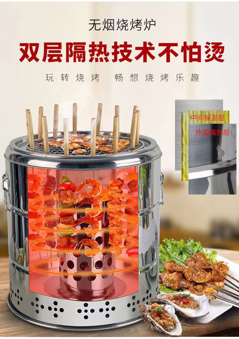 실내 스테인레스 스틸 교수형 스토브 무연 휴대용 베이킹 오븐 자동 배럴 그릴 야외 숯 바베큐 오븐스토어 가기