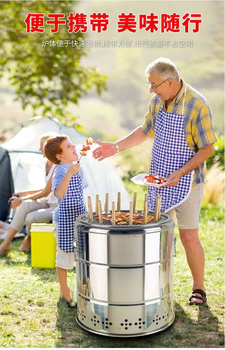 실내 스테인레스 스틸 교수형 스토브 무연 휴대용 베이킹 오븐 자동 배럴 그릴 야외 숯 바베큐 오븐