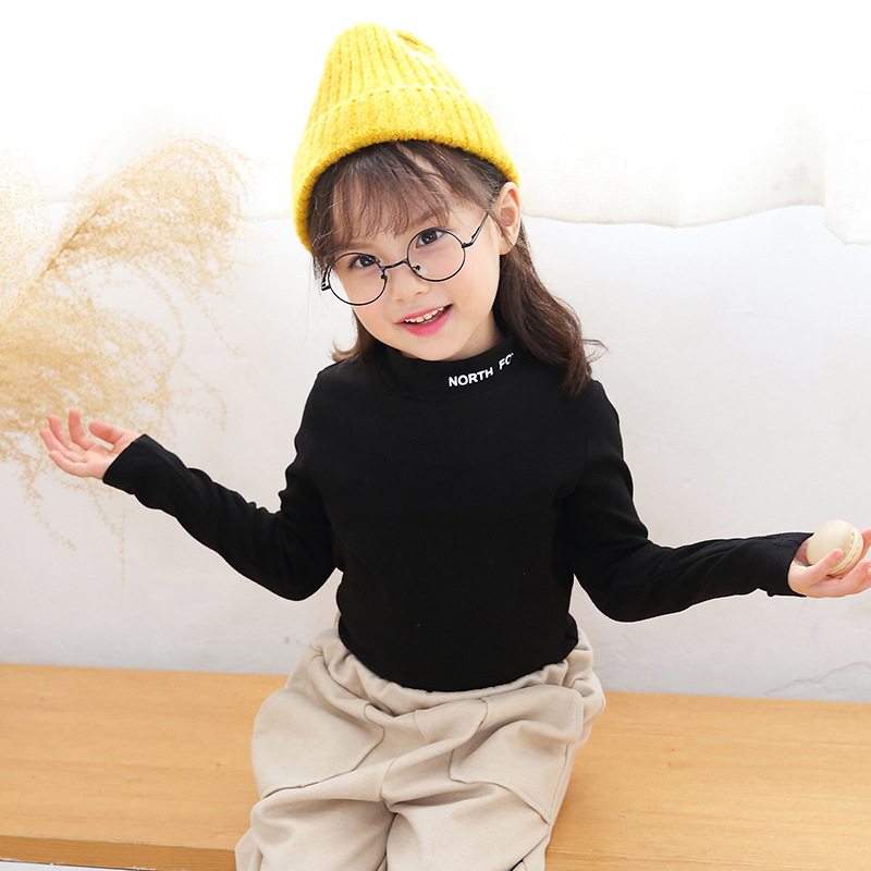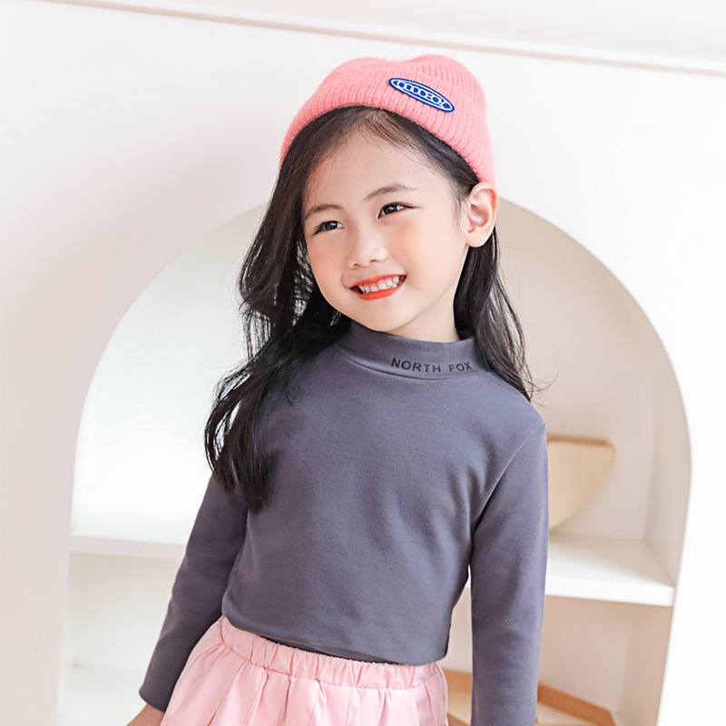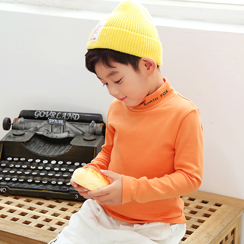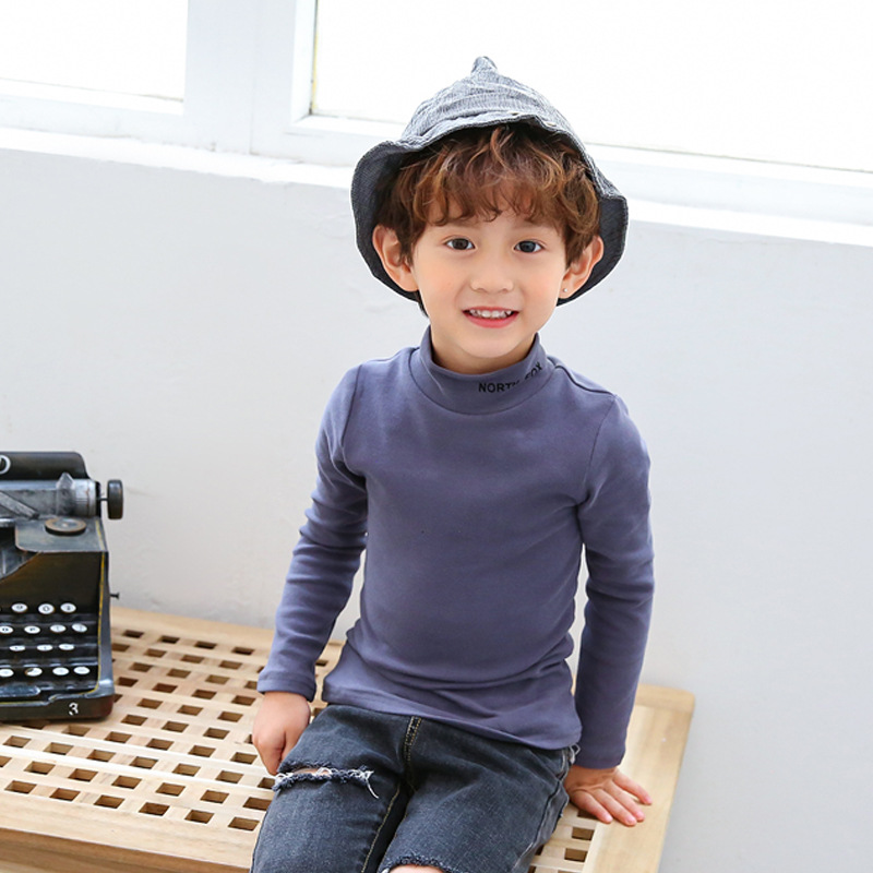 하프 하이 칼라 아동베이스 셔츠 남아 중간 칼라 면 봄과 가을 겨울 가을 옷 면 내부 탑 긴팔 티셔츠스토어 가기