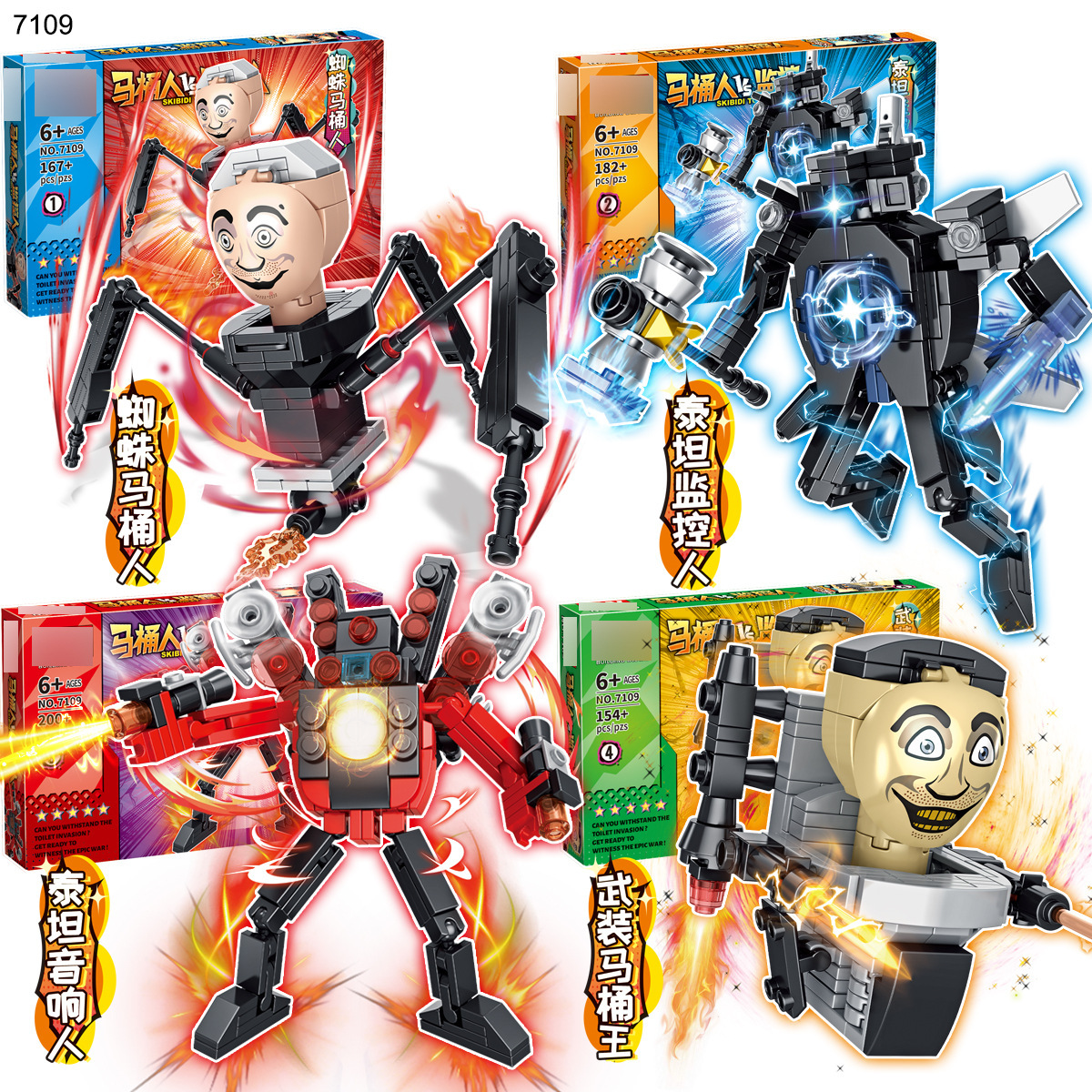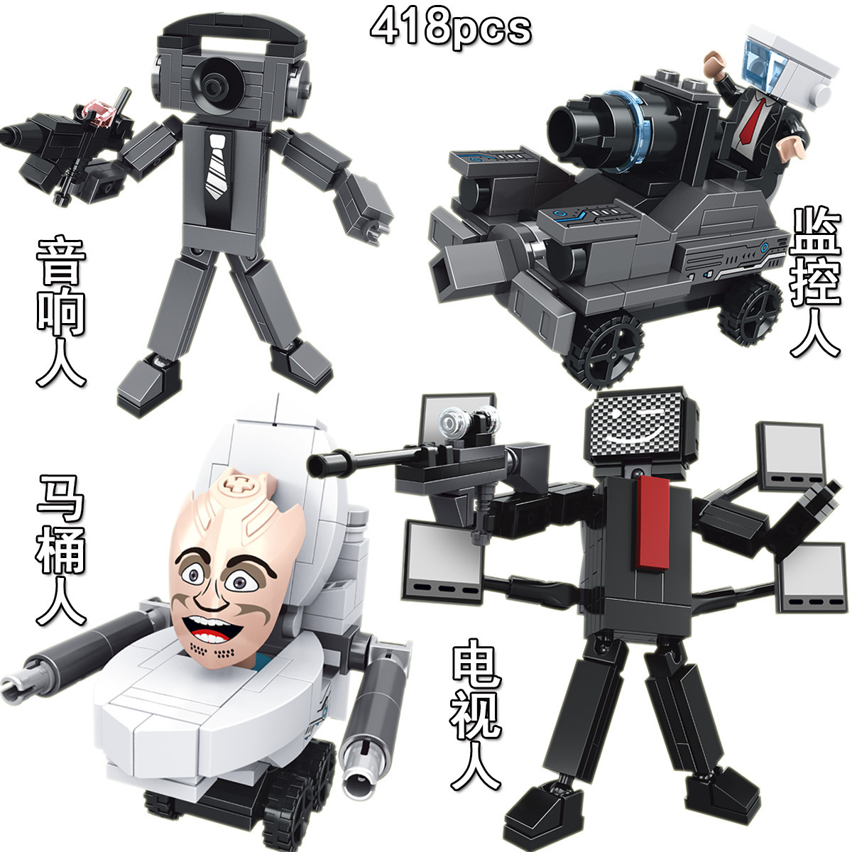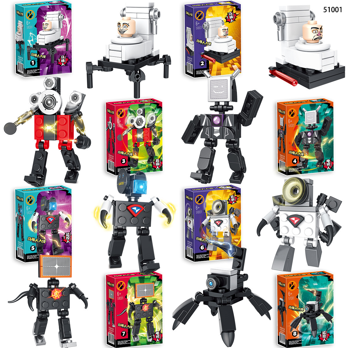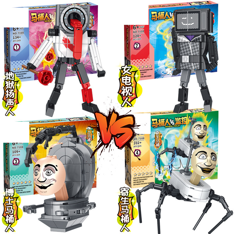 7098 크로스 보더 화장실 남자 대 모니터 남자 빌딩 블록 Skibidi 화장실 시리즈 소년 빌딩 블록 조립 완구스토어 가기