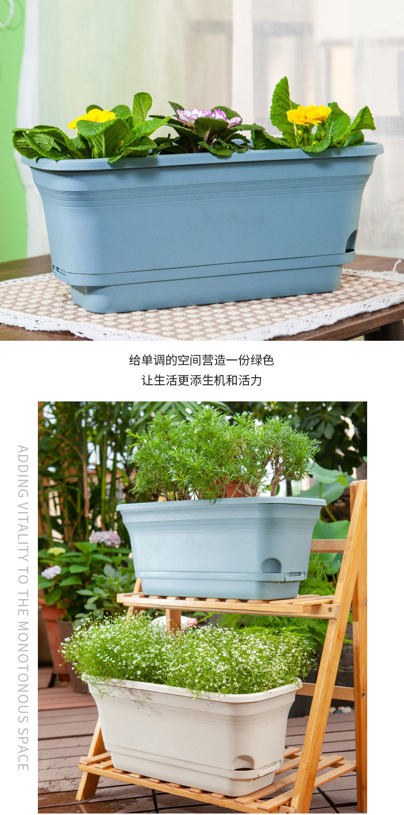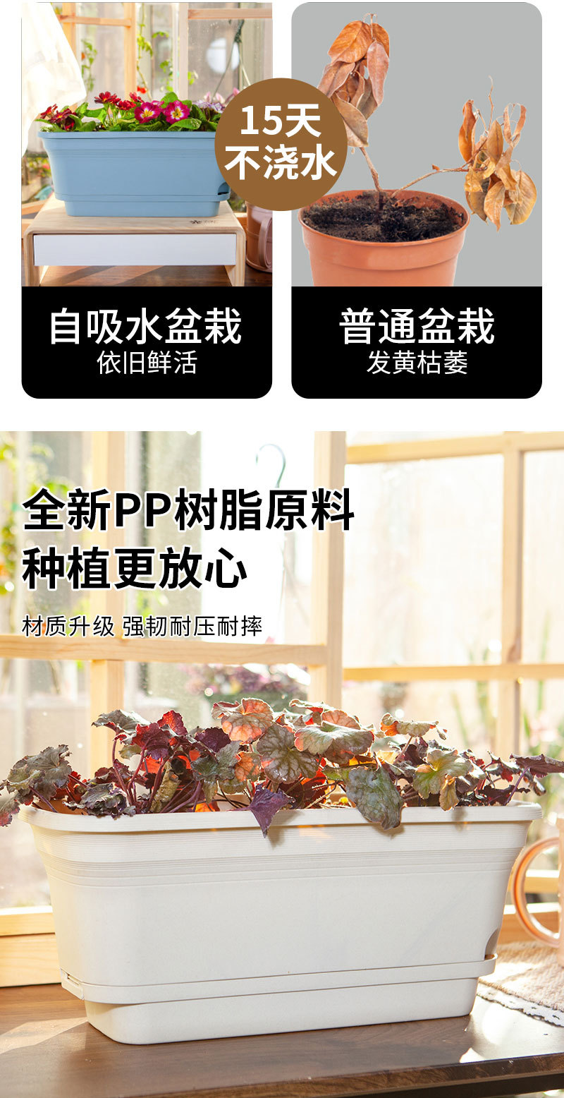 게으른 꽃 냄비 새로운 두꺼운 자기 흡수 직사각형 발코니 야채 분지 트레이 가족 심기 상자 도매스토어 가기