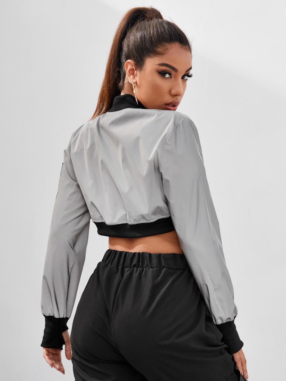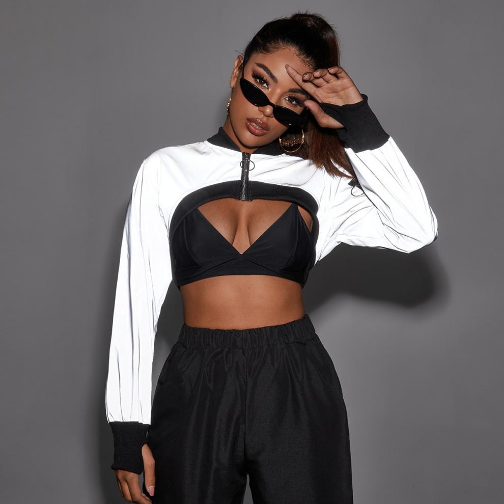 크로스 보더 새로운 여성 의류 AliExpress 유럽과 미국의 스트리트 스타일 반사 패션 트렌드 울트라 쇼트 재킷 코트 여성