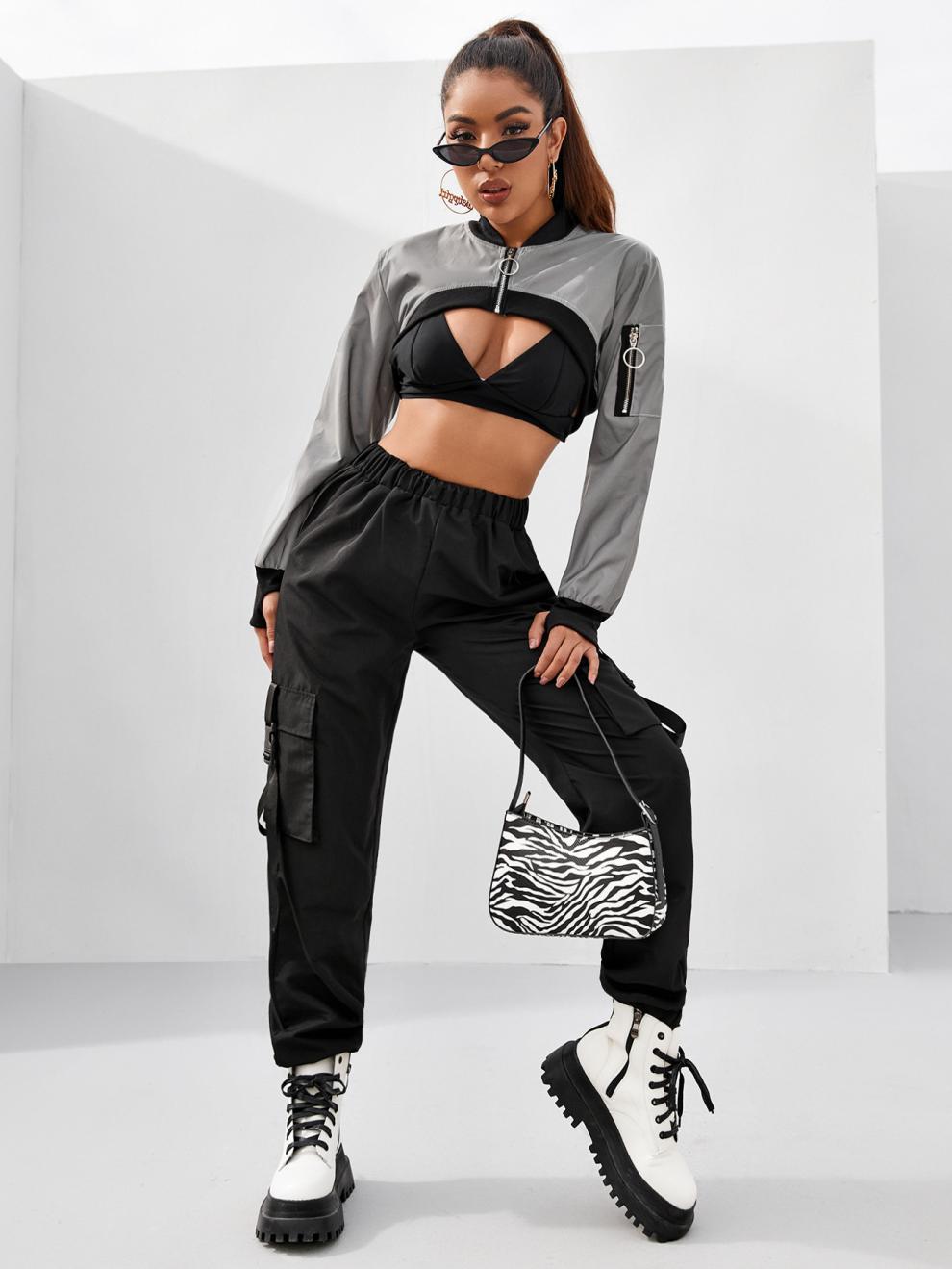 크로스 보더 새로운 여성 의류 AliExpress 유럽과 미국의 스트리트 스타일 반사 패션 트렌드 울트라 쇼트 재킷 코트 여성스토어 가기