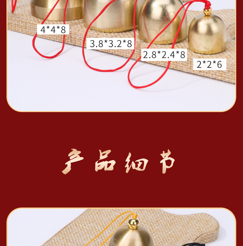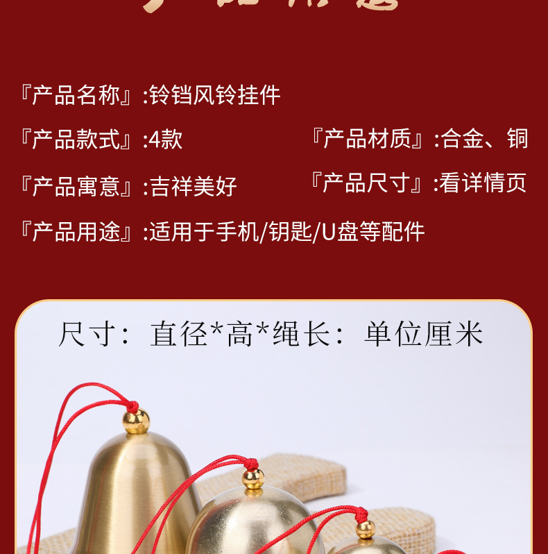 황동 풍경종 장식품 금속 구리 DIY 재료 크리스마스 장식품 구리 소형 종 펜던트 선물 액세서리스토어 가기