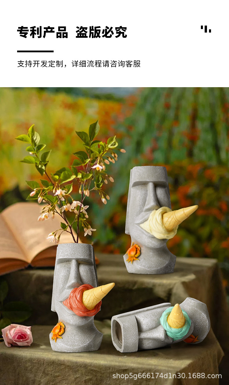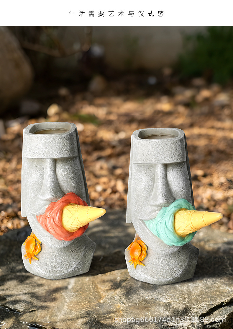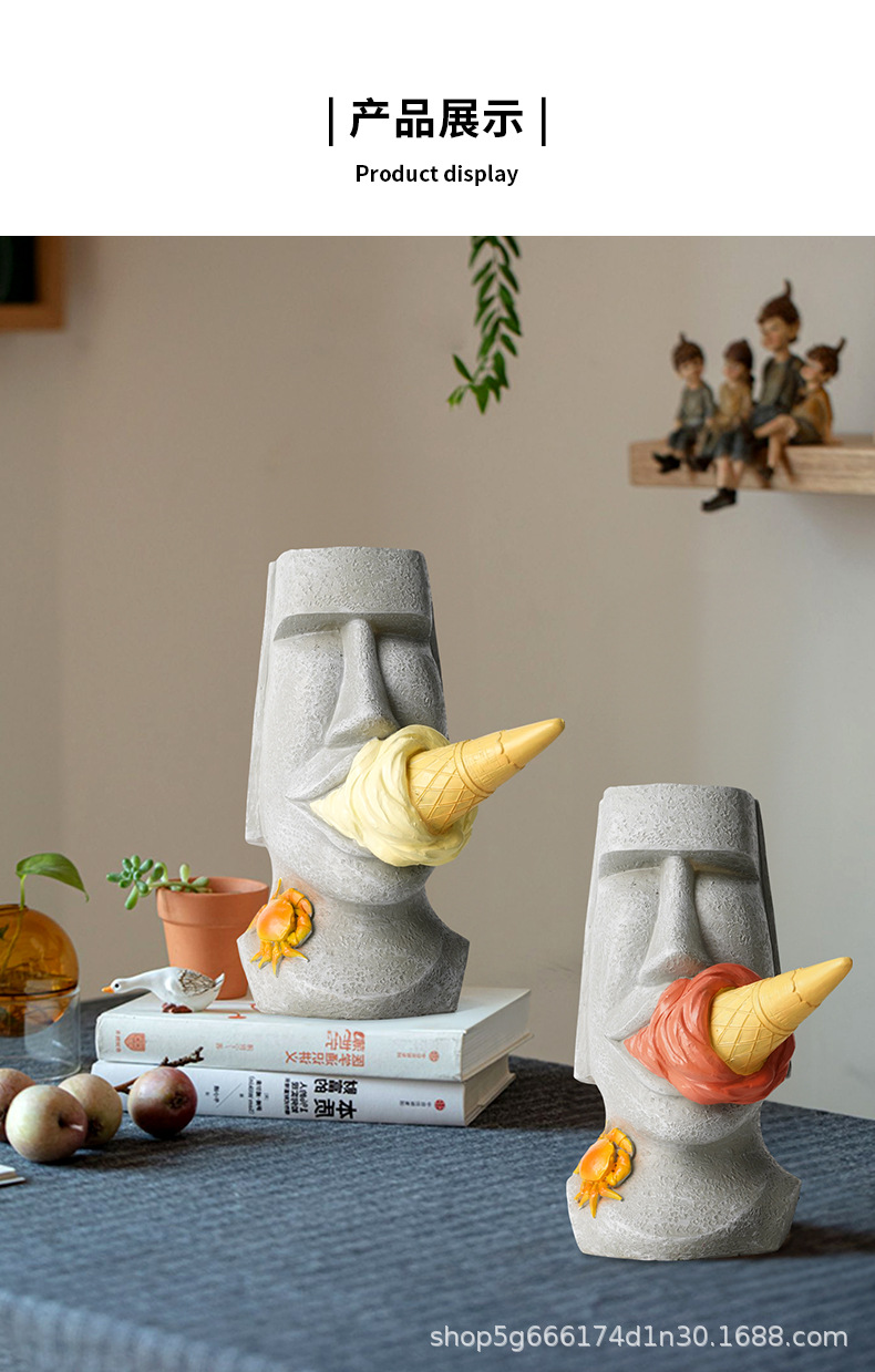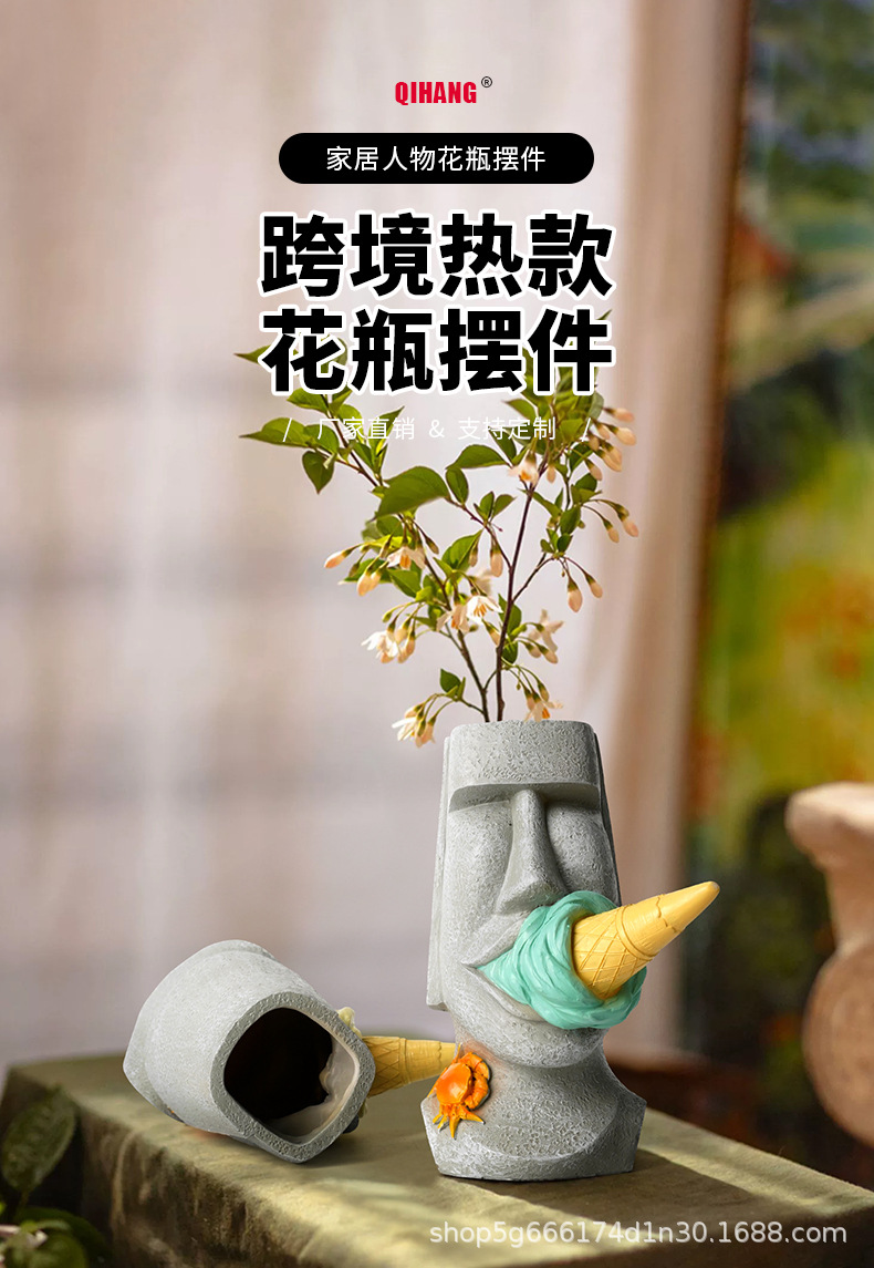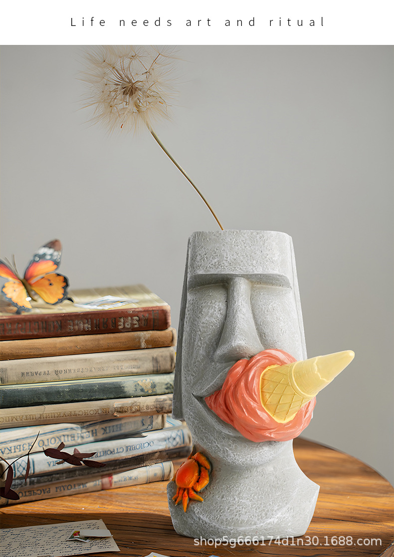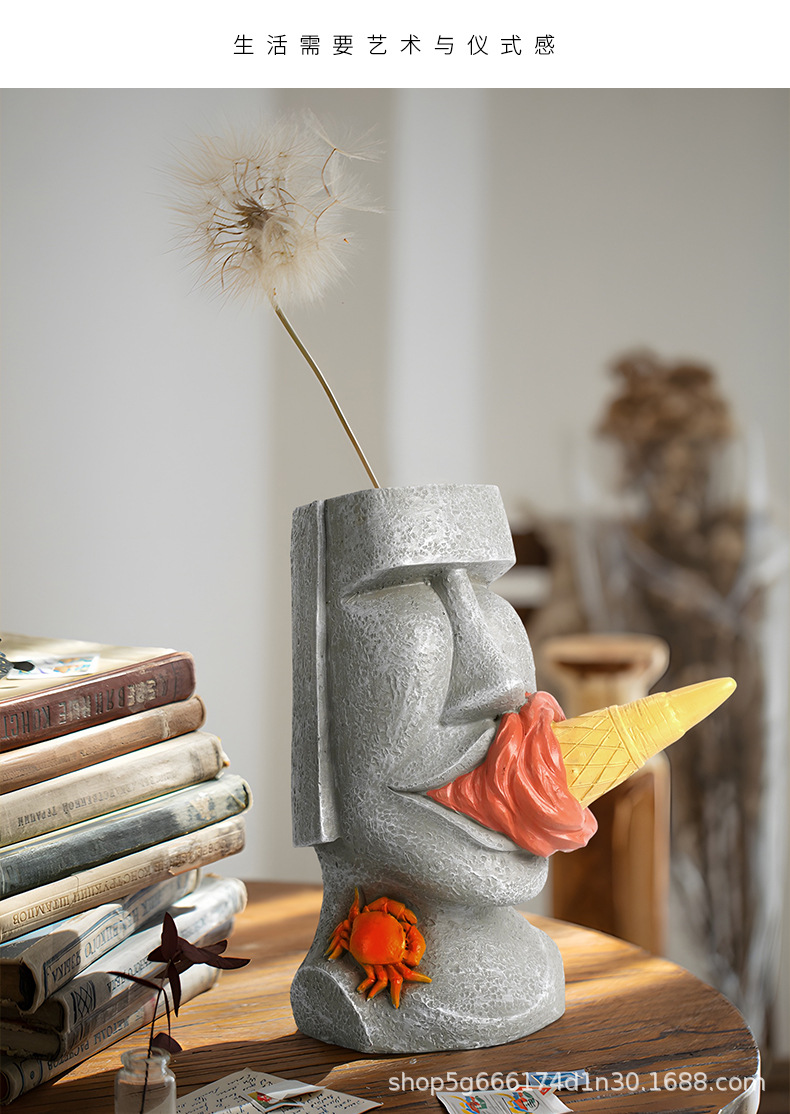국경 간 새로운 아이스크림 스매싱 모아이 스톤 동상 섬 주민 꽃병 장식품 아트 플라워 어레인지 장식 간단한 데스크탑 조각스토어 가기