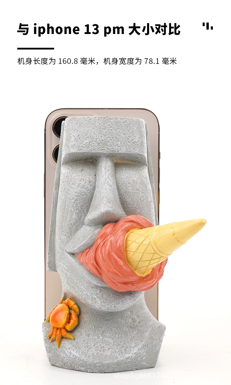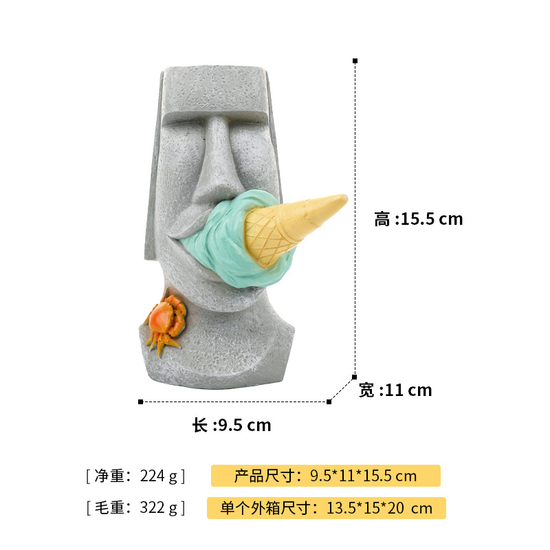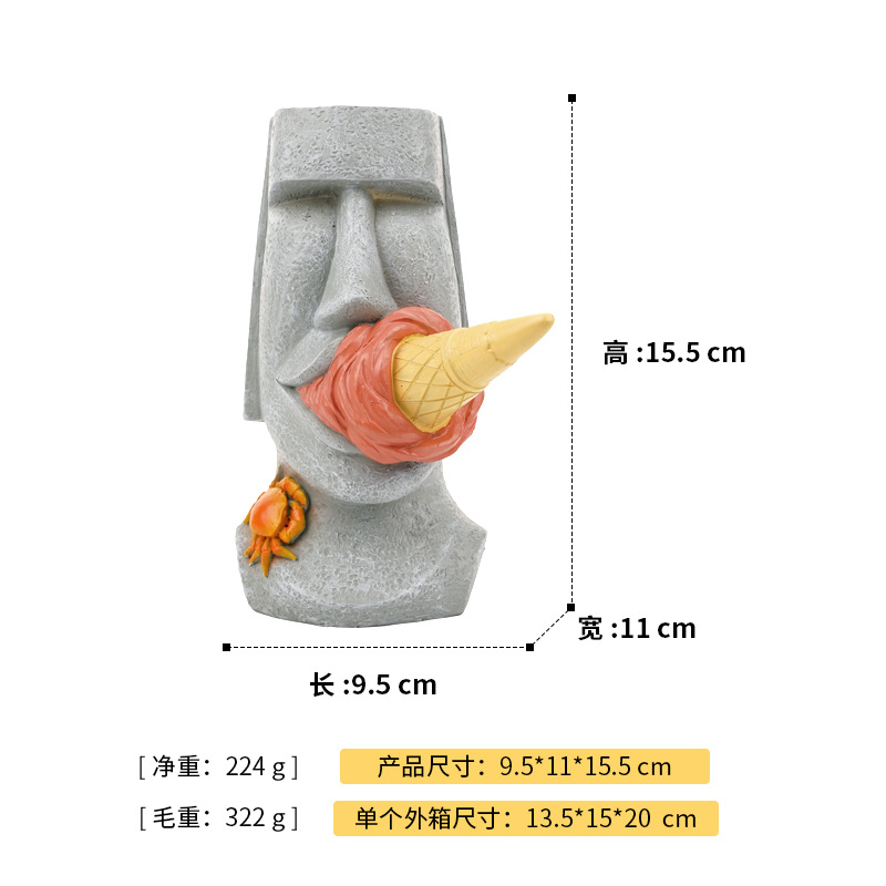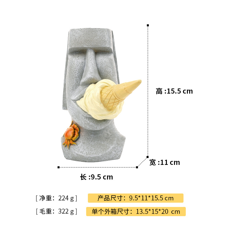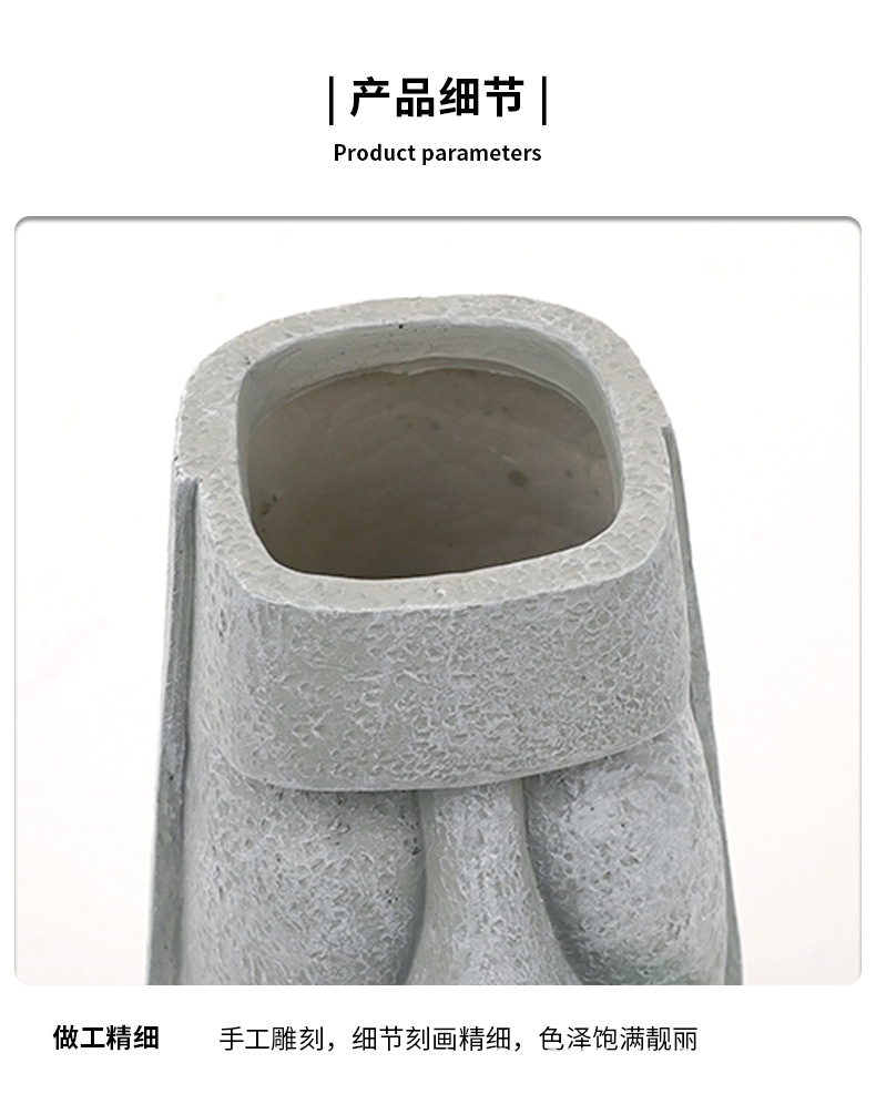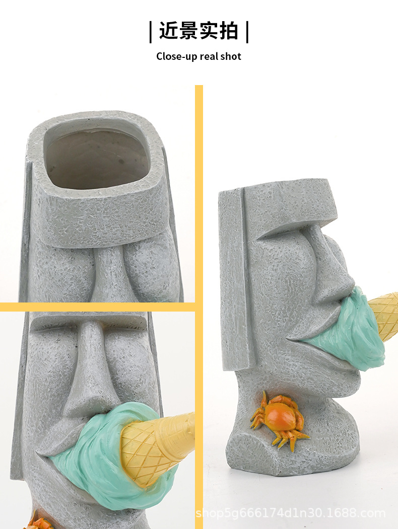 국경 간 새로운 아이스크림 스매싱 모아이 스톤 동상 섬 주민 꽃병 장식품 아트 플라워 어레인지 장식 간단한 데스크탑 조각스토어 가기