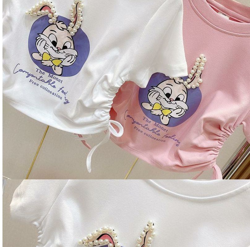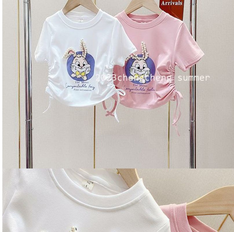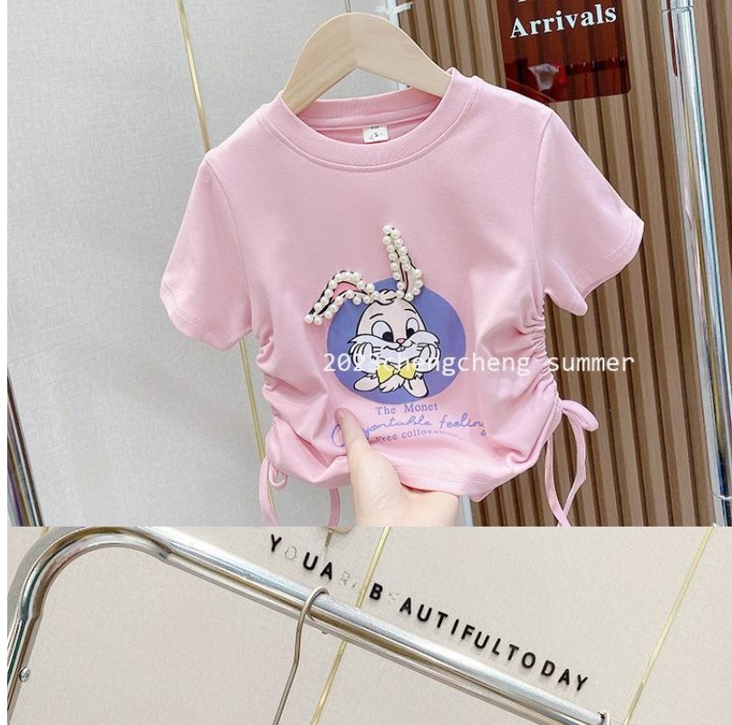 한국 스타일 아동복 2025 소녀 여름 패션 간단한 편지 짧은 티셔츠 어린이 얼음 실크 졸라 매는 끈 반팔 탑스토어 가기