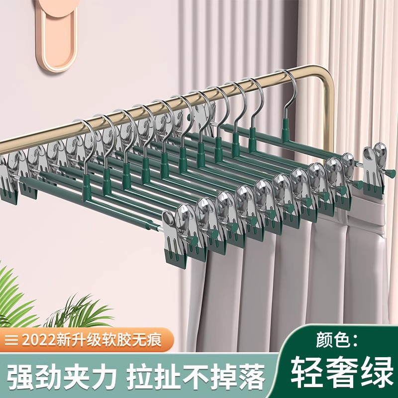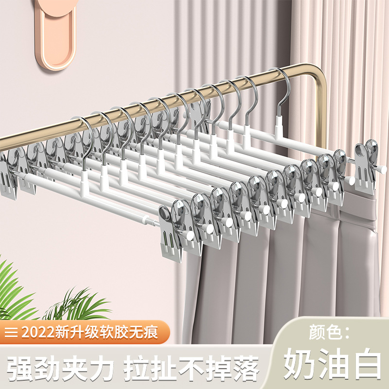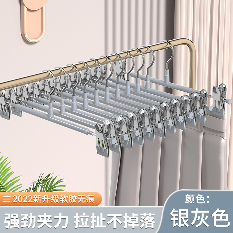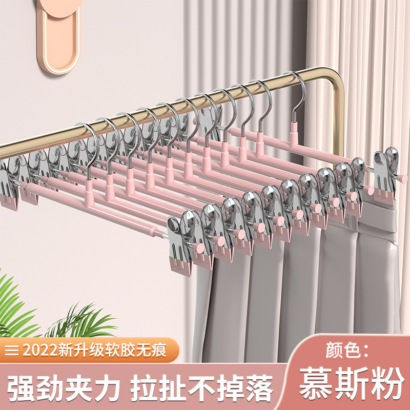 무료 배송 스테인레스 스틸 담근 플라스틱 바지 랙 텔레스코픽 바지 클립 다기능 가정용 옷걸이 원활한 두꺼운 바지 랙 미끄럼 방지 스커트