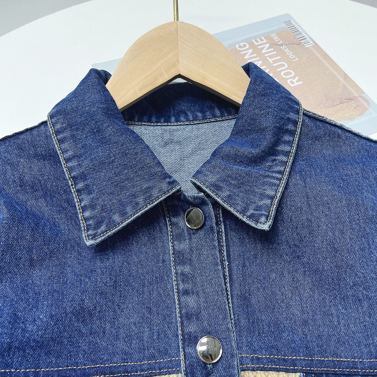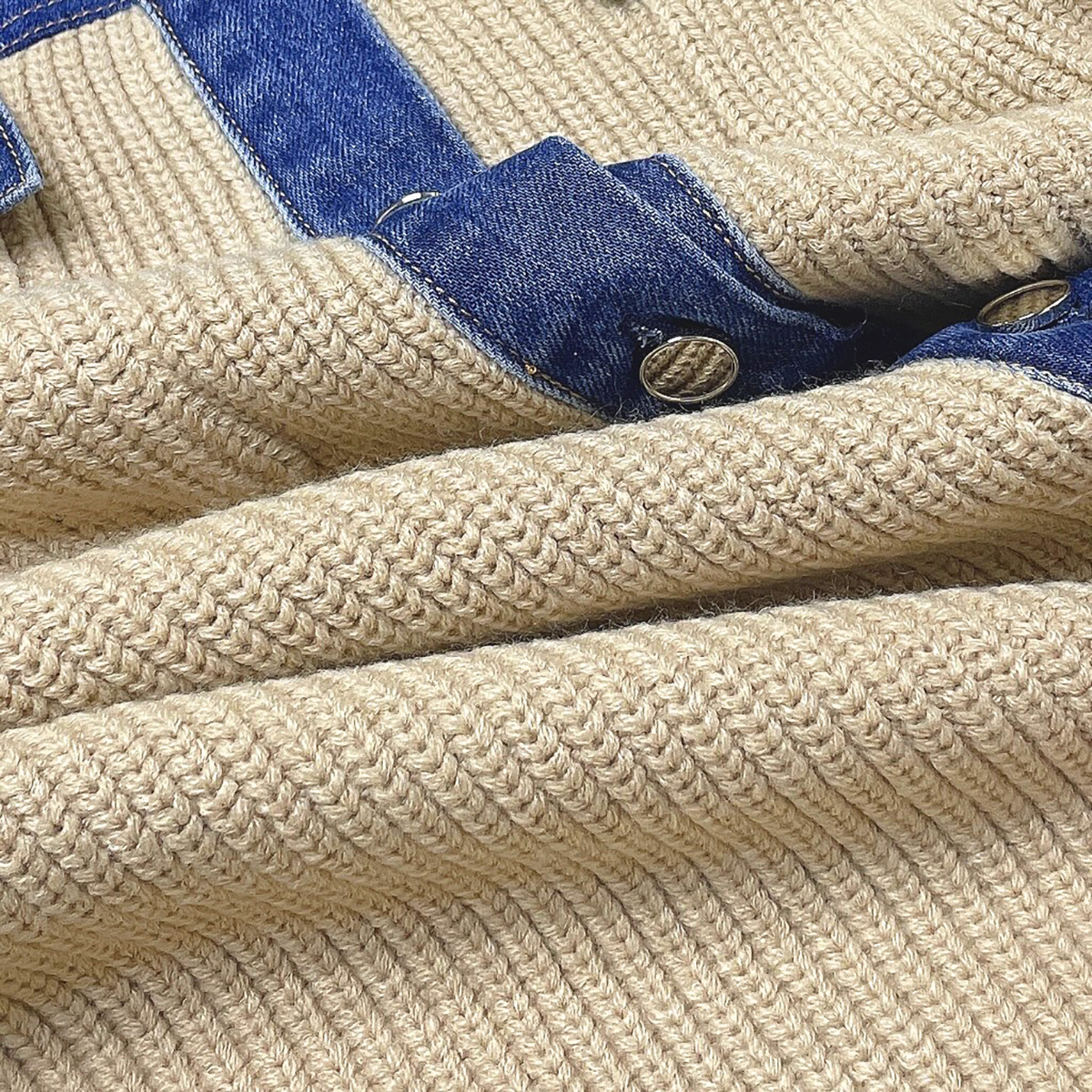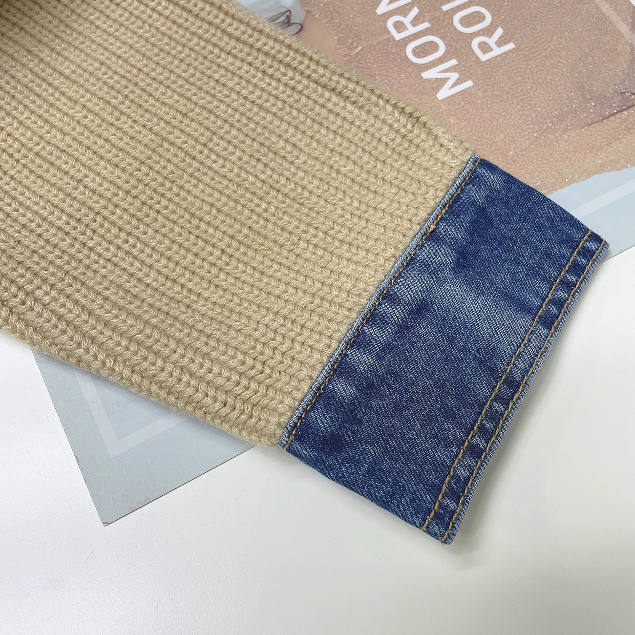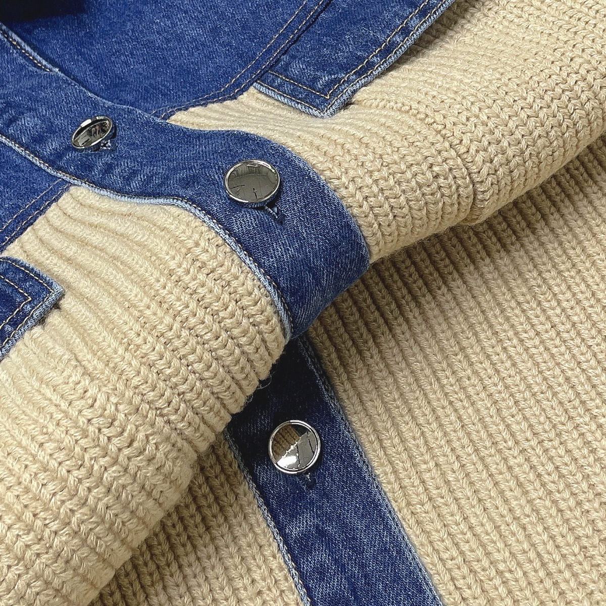 가을 2023 빈티지 패션 대비 색상 데님 바느질 옷깃 니트 카디건 여성의 새로운 여성 의류스토어 가기