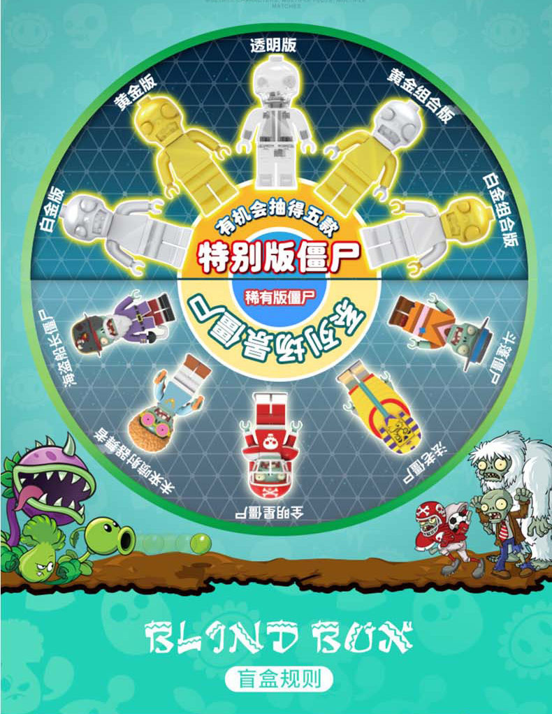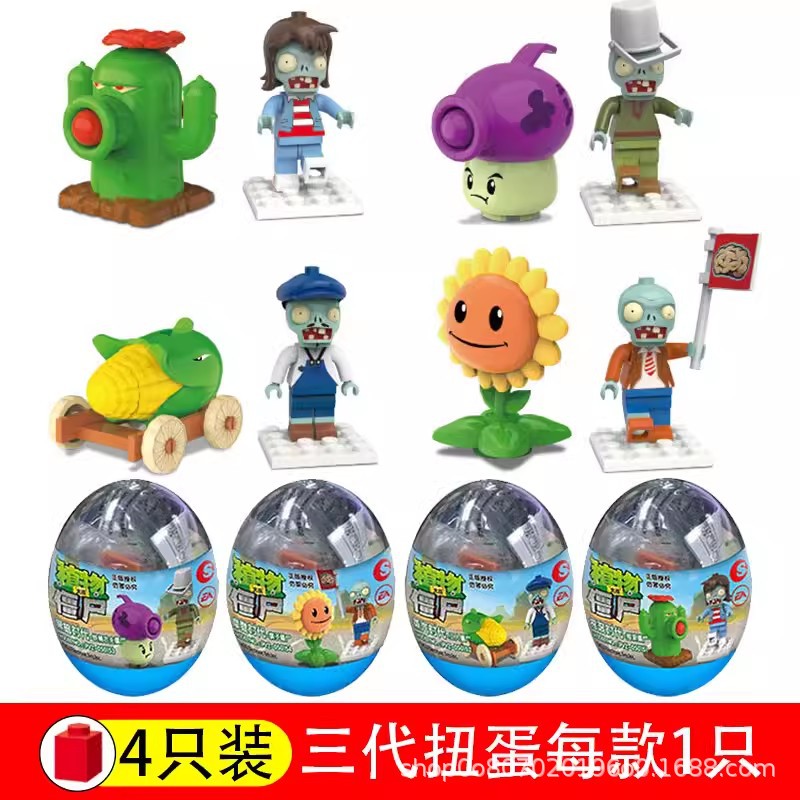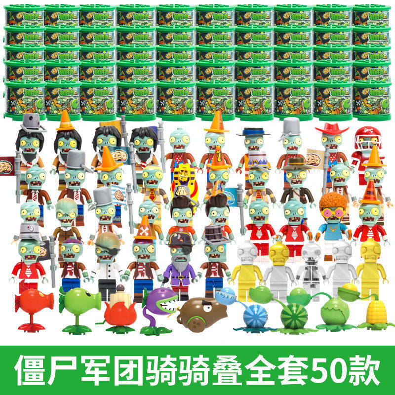식물 대 좀비 블라인드 박스 손 장난감 좀비 군단 승마 어린이 조립 퍼즐 빌딩 블록의 전체 세트
