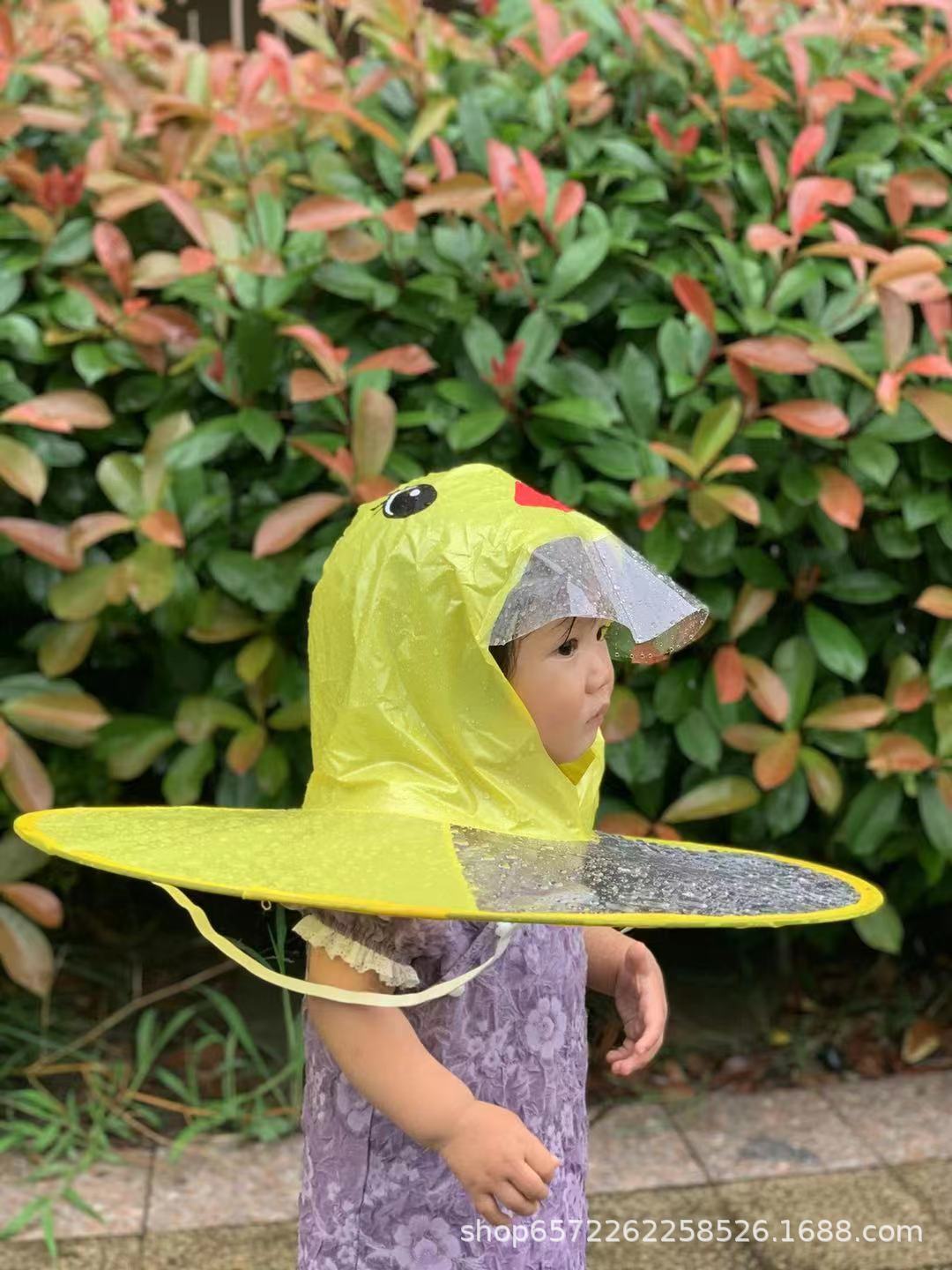 비행 접시 레인 캡 어린이 접이식 경량 노란 오리 머리 장착 판초 귀여운 만화 소년과 소녀를위한 케이프 비옷스토어 가기
