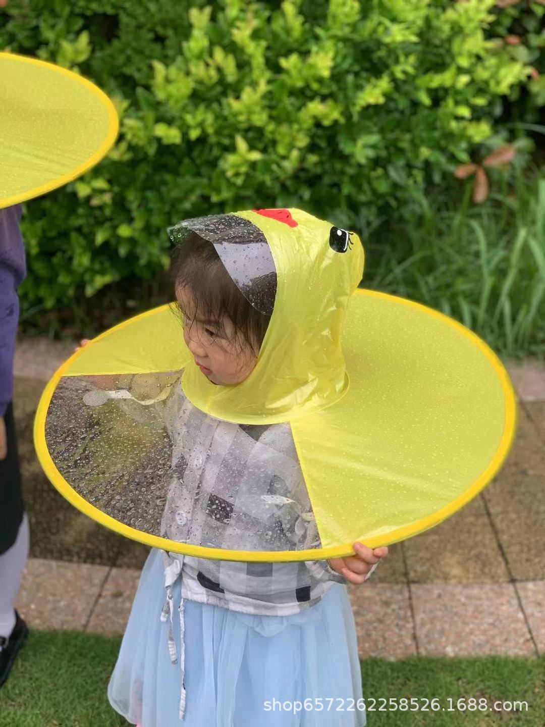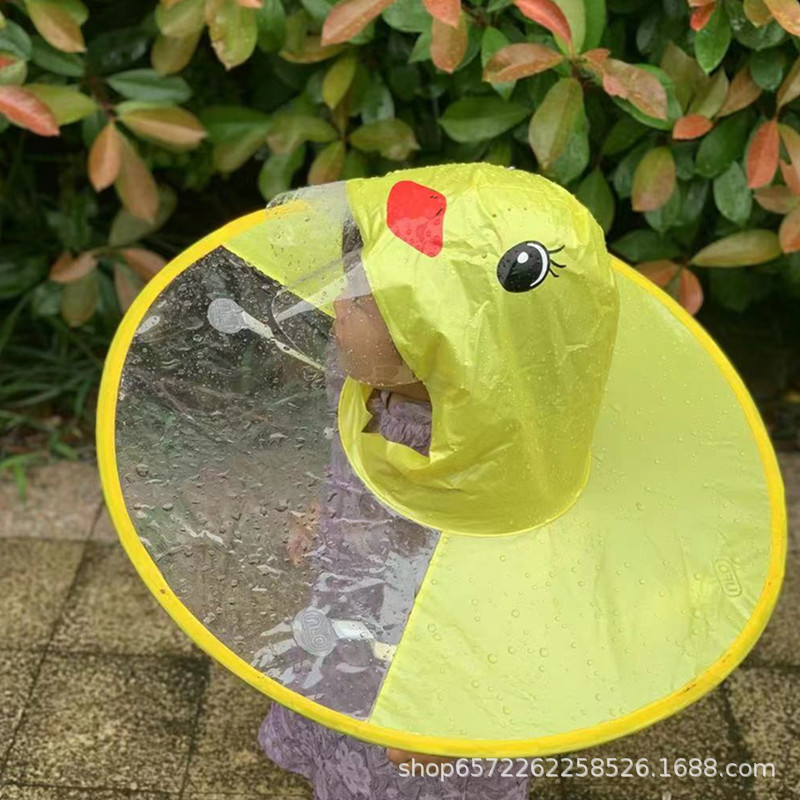 비행 접시 레인 캡 어린이 접이식 경량 노란 오리 머리 장착 판초 귀여운 만화 소년과 소녀를위한 케이프 비옷