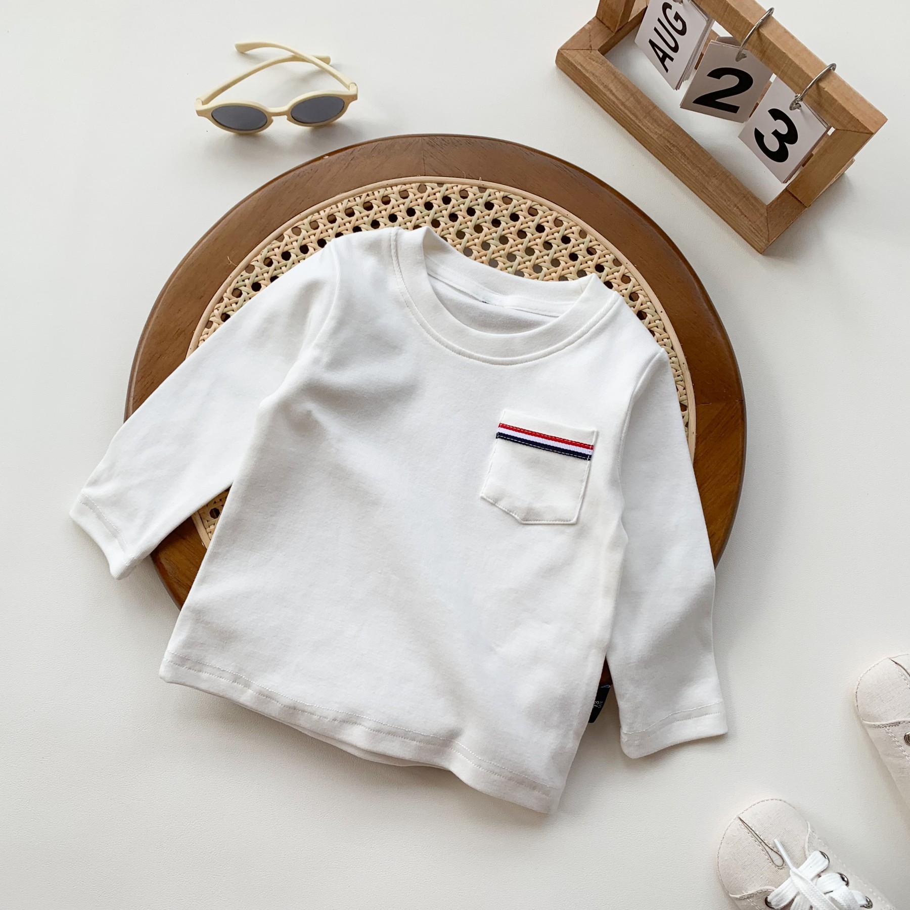 아기의 긴팔 티셔츠 2023 봄과 가을 새로운 솔리드 컬러 베이스 셔츠 순면 웨스턴 스타일 탑 베이비 화이트 옷 트렌디스토어 가기