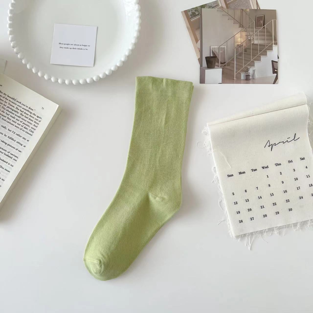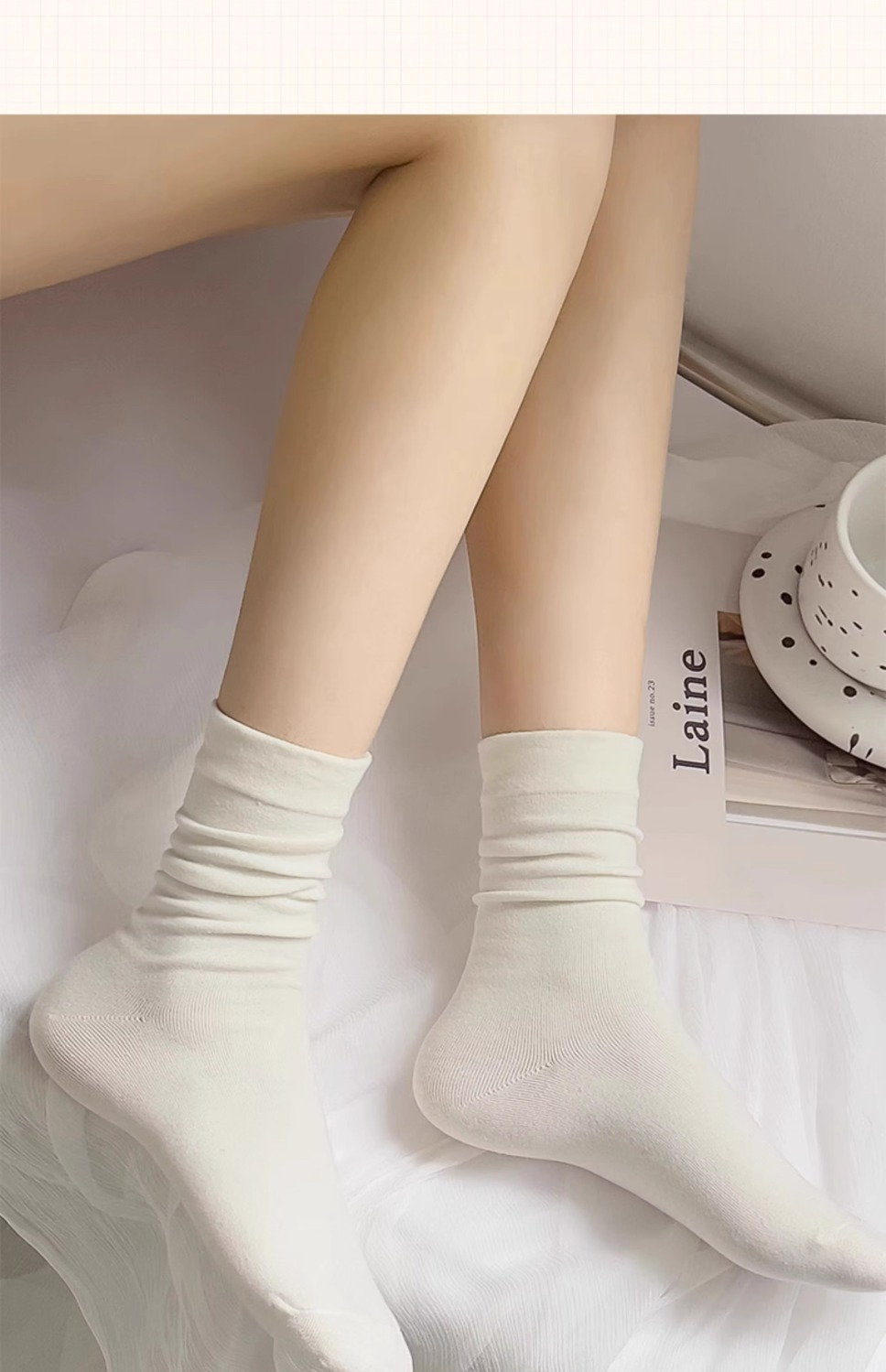 뼈없는 튜브 양말 신선한 단색 달 양말 흰색 양말 여성 가을 새로운 모든 일치 복고풍 패션 파일 양말