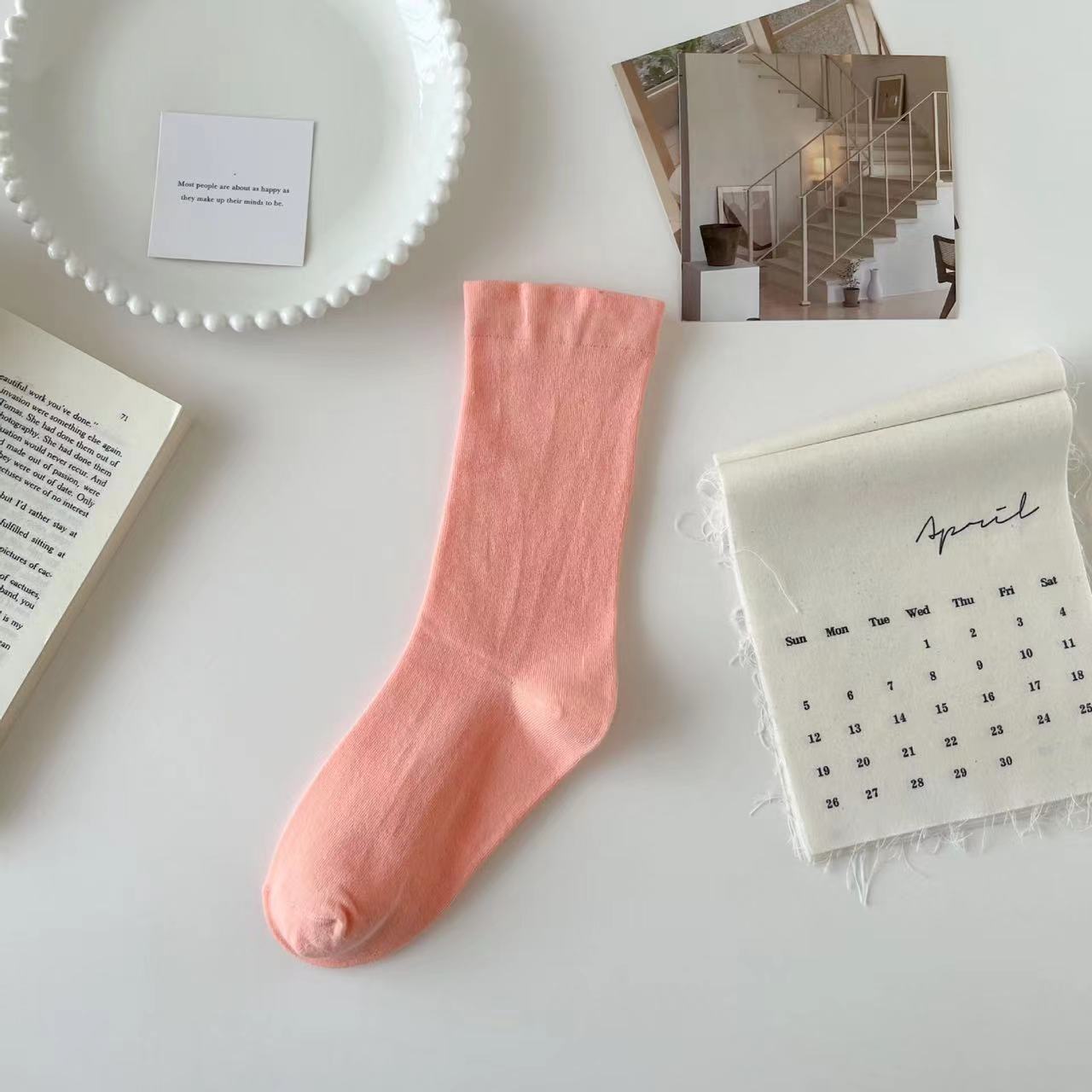 뼈없는 튜브 양말 신선한 단색 달 양말 흰색 양말 여성 가을 새로운 모든 일치 복고풍 패션 파일 양말스토어 가기