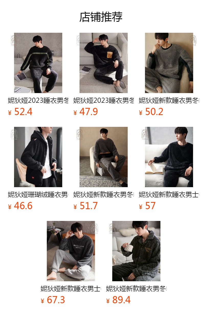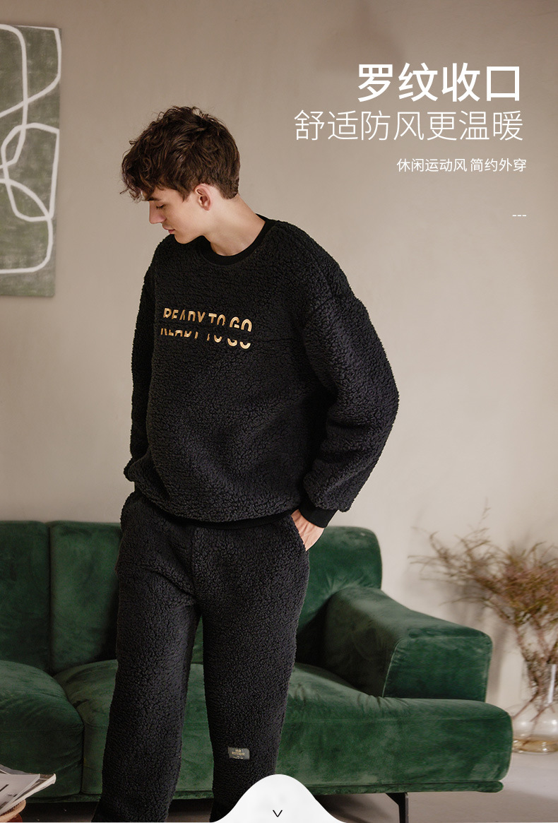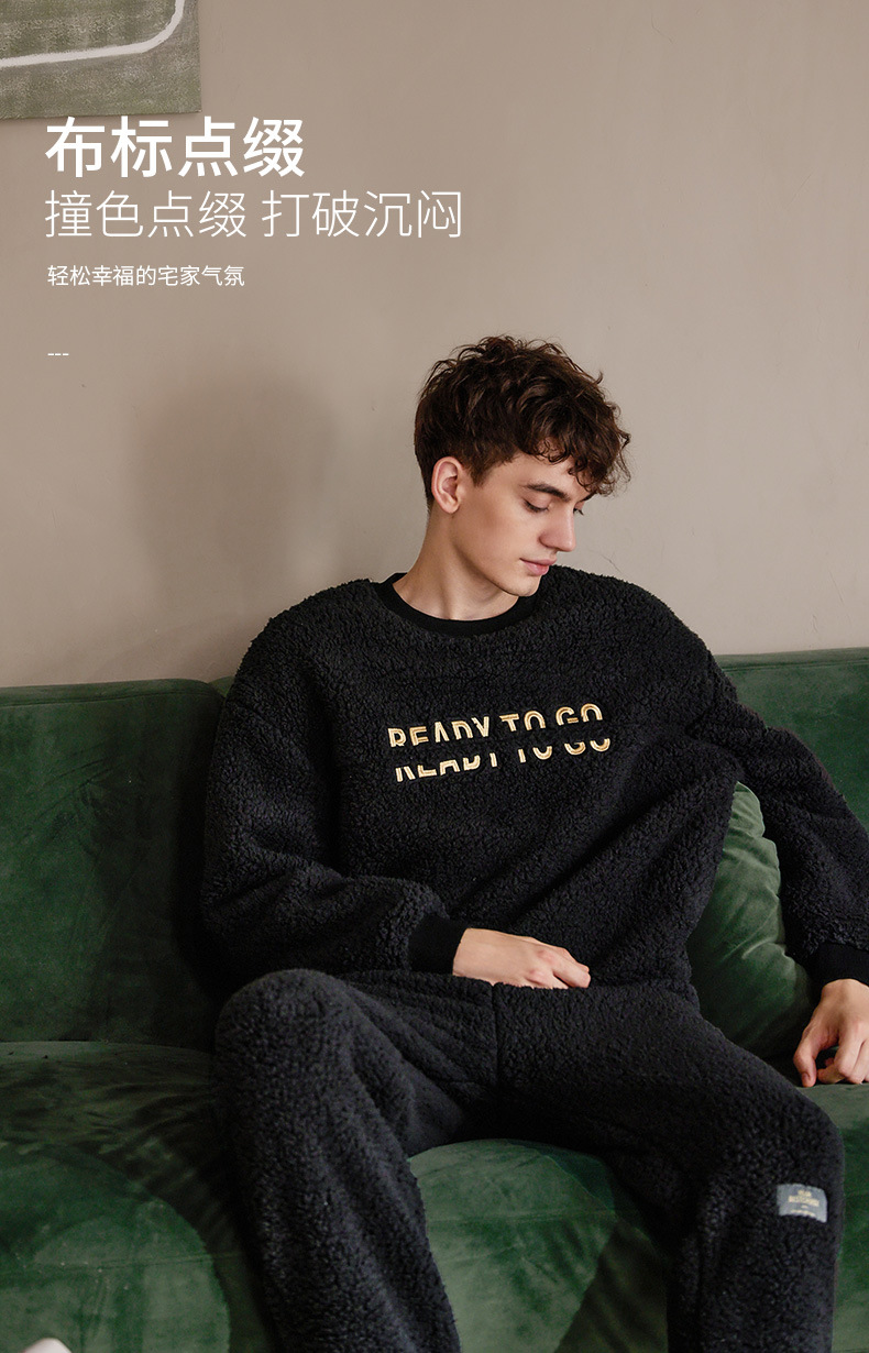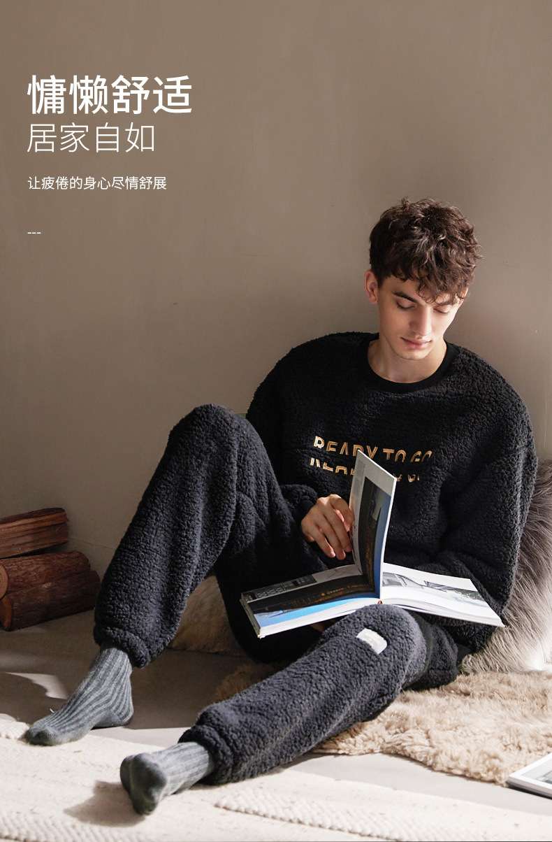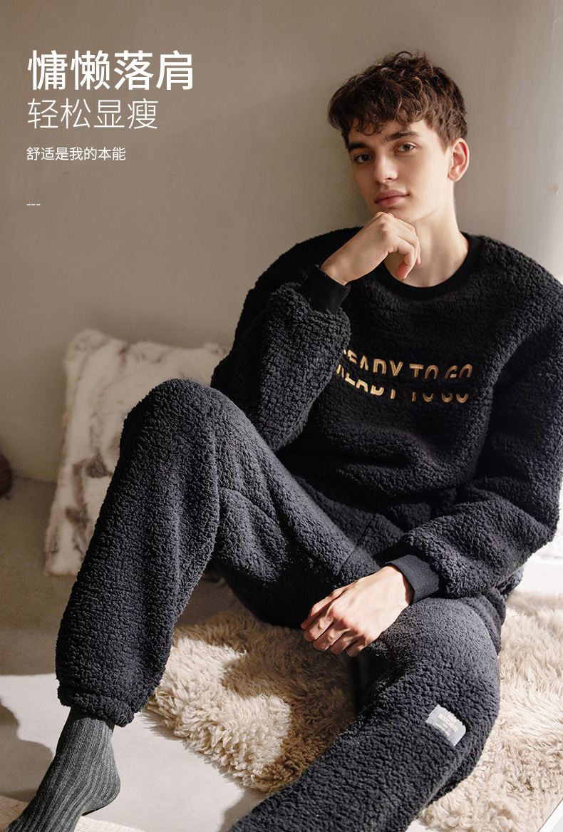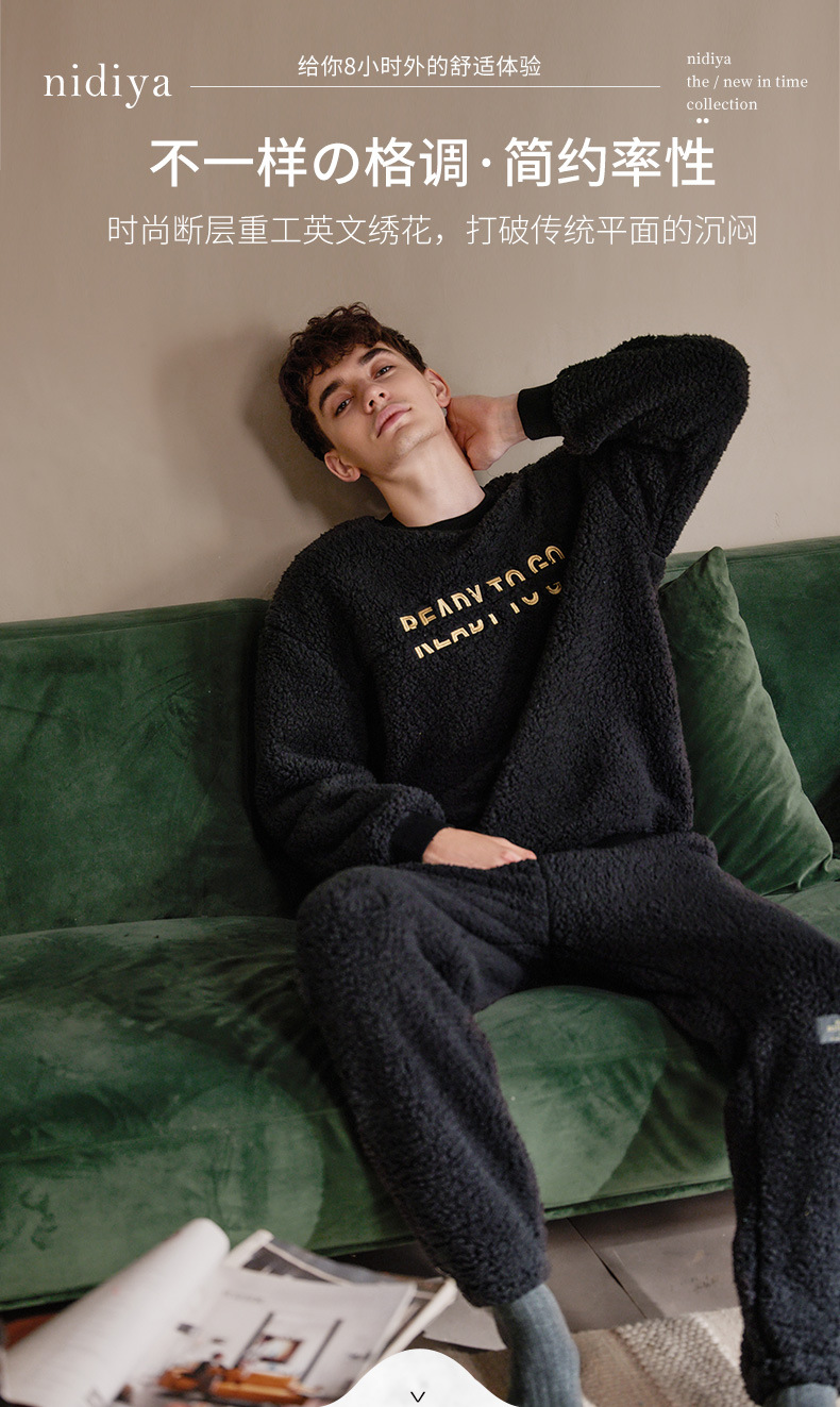 Nidia 새로운 잠옷 남자의 겨울 두꺼운 따뜻한 산호 양털 크루넥 풀오버 캐주얼 가정 옷 세트스토어 가기