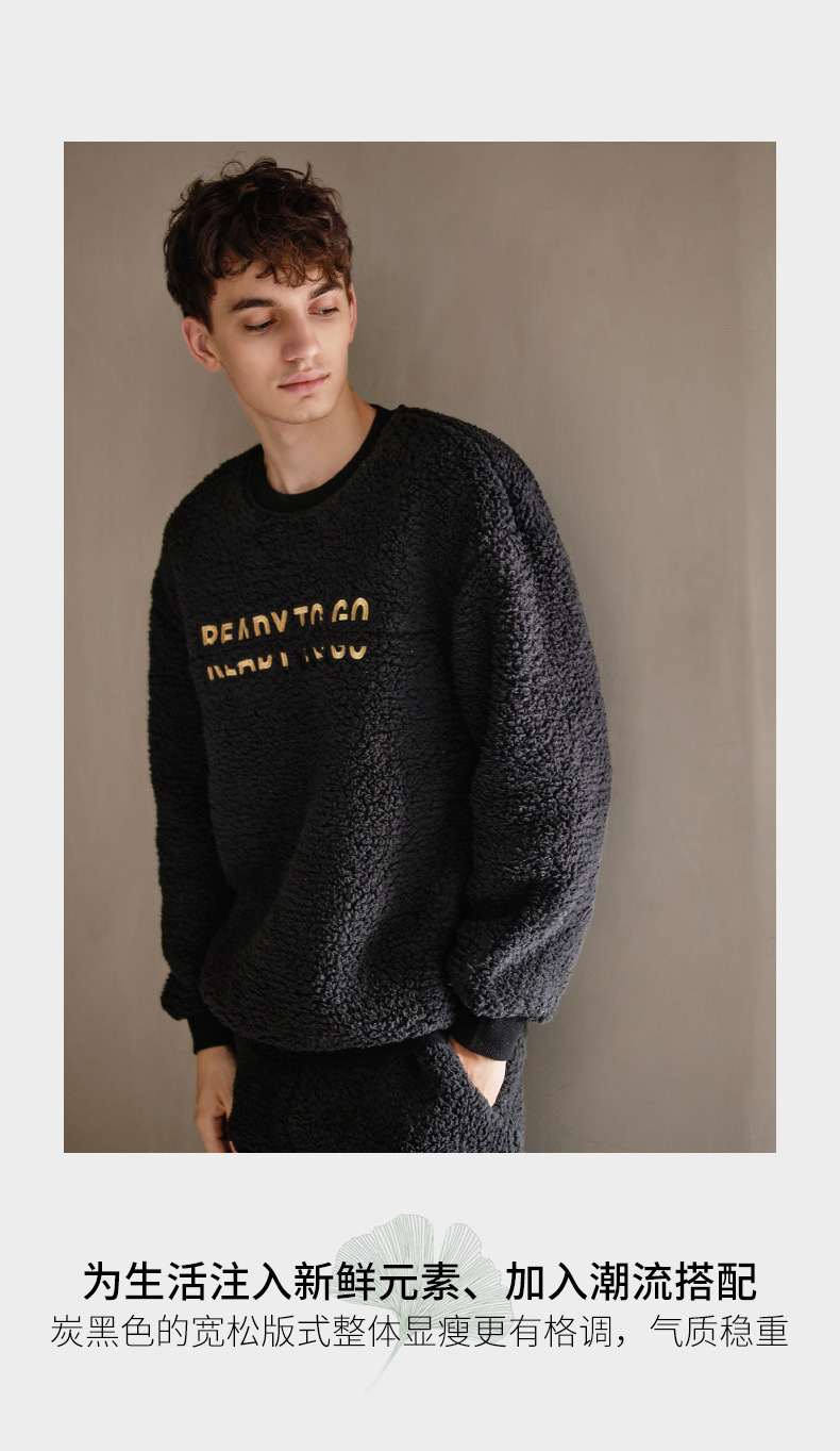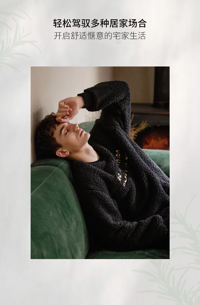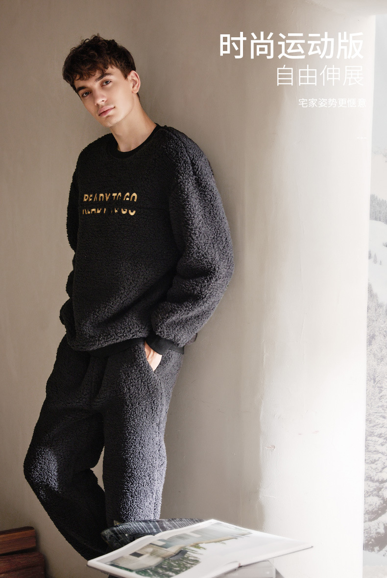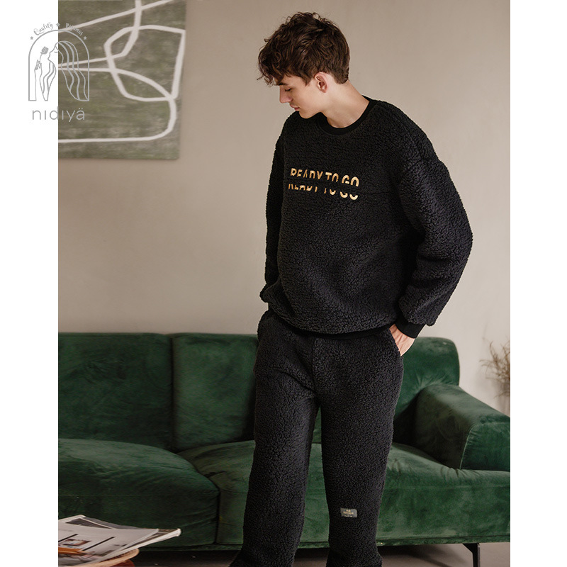 Nidia 새로운 잠옷 남자의 겨울 두꺼운 따뜻한 산호 양털 크루넥 풀오버 캐주얼 가정 옷 세트