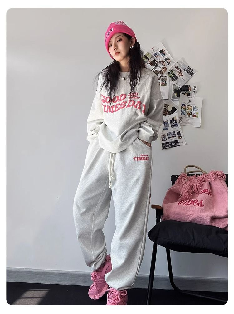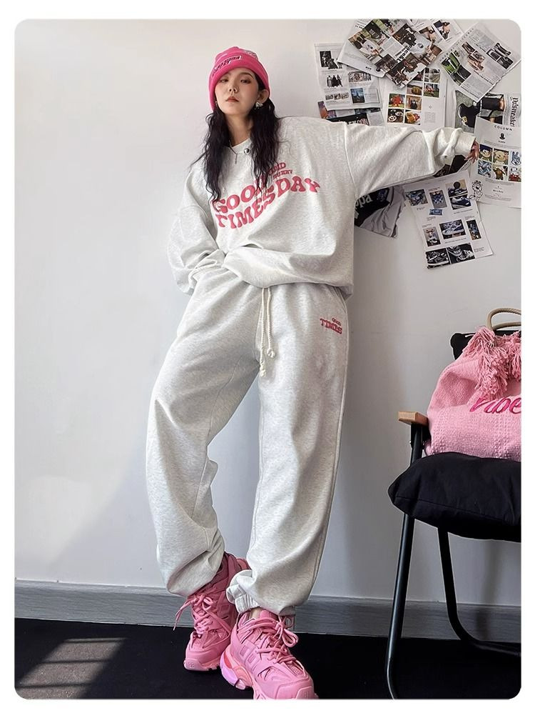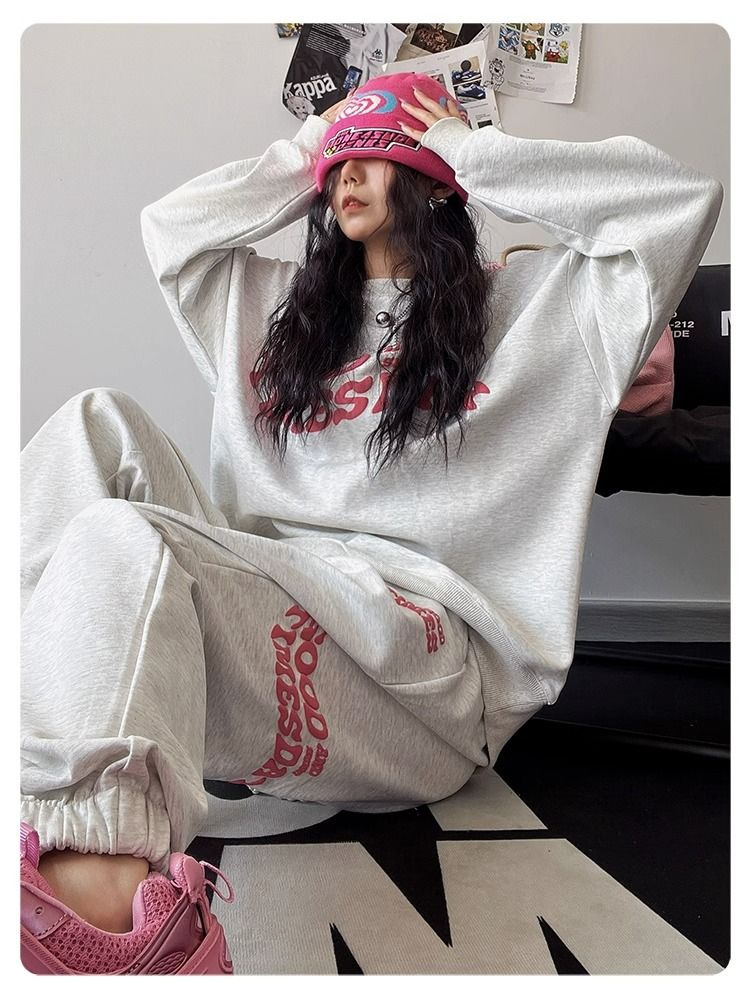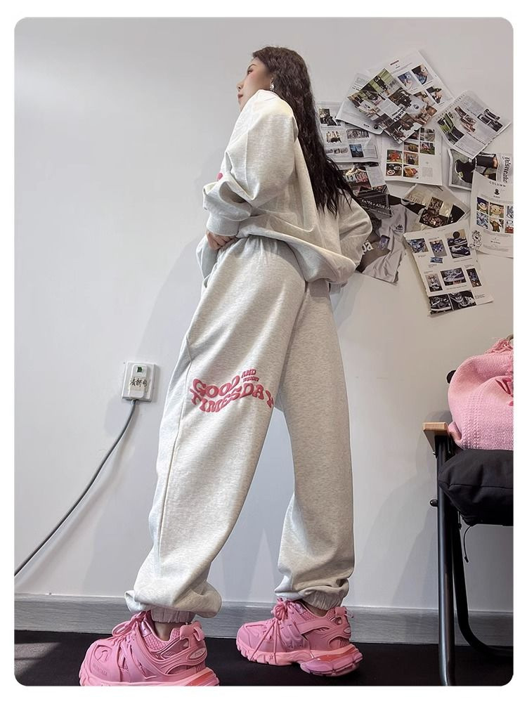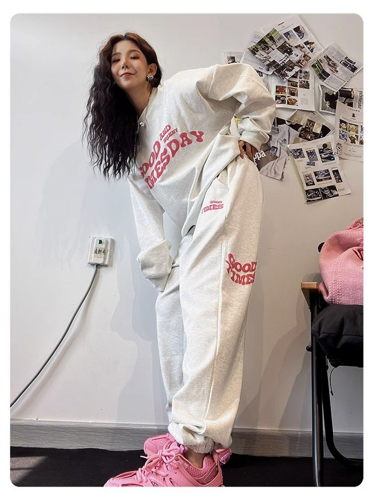 2024 새로운 한국 스타일 캐주얼 운동복 정장 여학생 봄, 가을 느슨한 서양식 스웨터 패션 투피스 세트스토어 가기