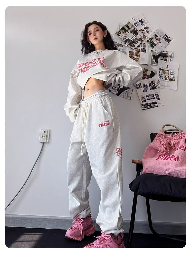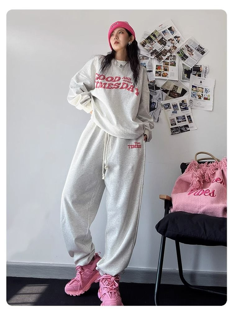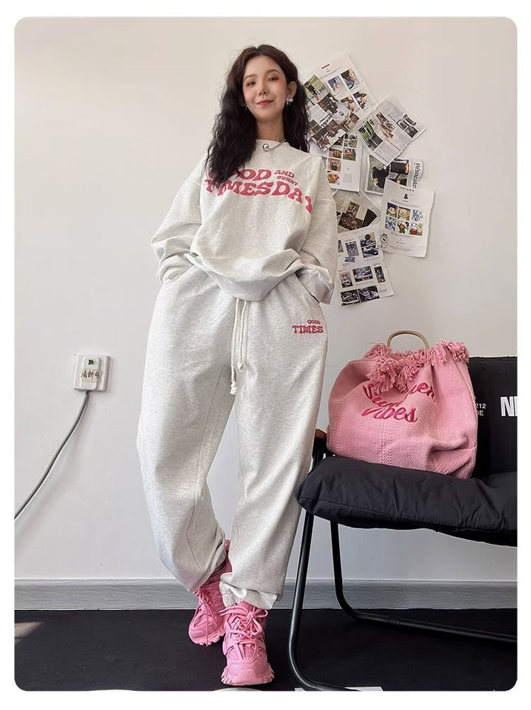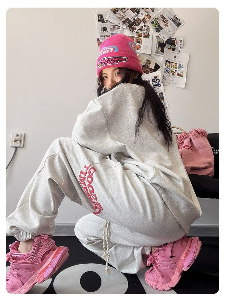 2024 새로운 한국 스타일 캐주얼 운동복 정장 여학생 봄, 가을 느슨한 서양식 스웨터 패션 투피스 세트스토어 가기