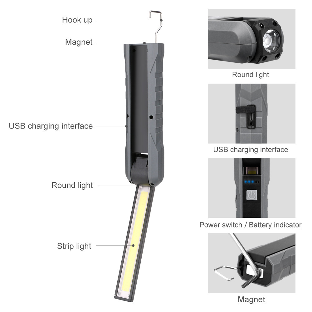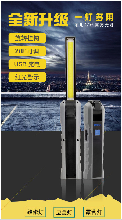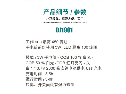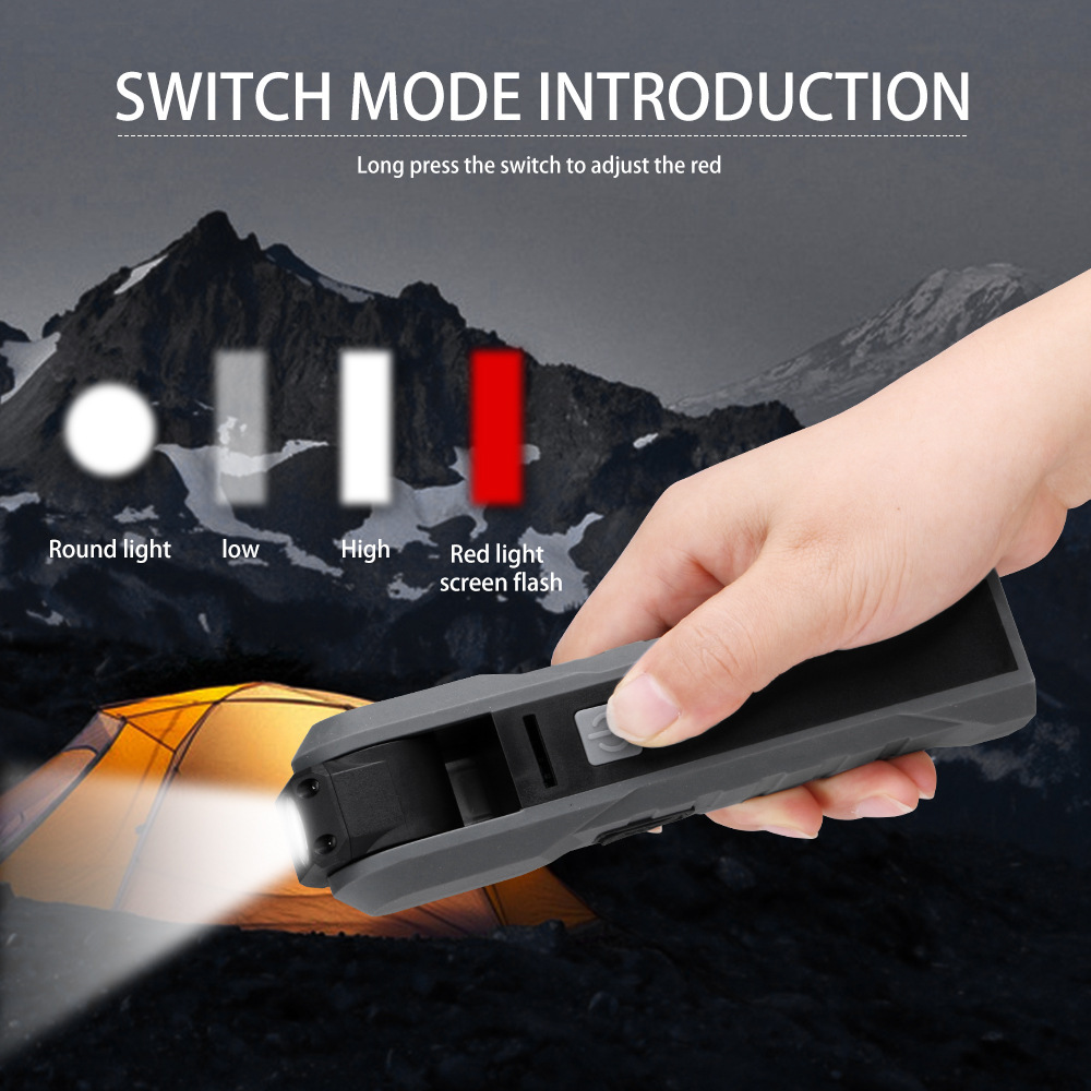 4种模式的选择:LED灯/ COB白色高光/ COB白色低光/ COB红色闪光灯。
