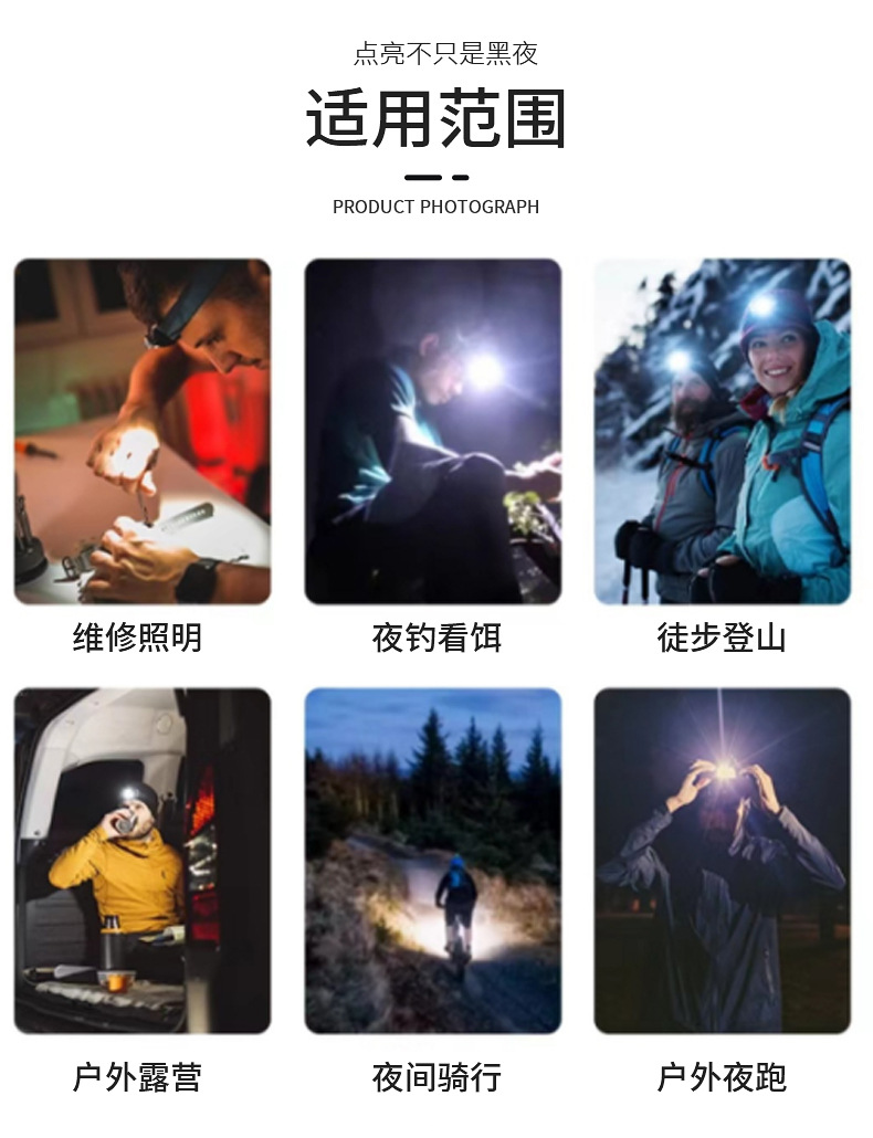 搜索,狩猎,露营,夜间钓鱼,夜间骑行。