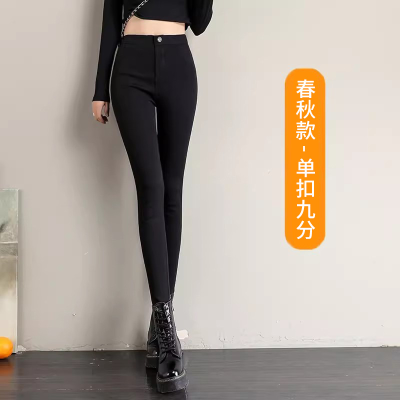 블랙 기모 레깅스 여자의 겉옷 겨울 하이 웨이스트 꽉 발 연필 봄과 가을 높은 탄성 슬림 매직 바지