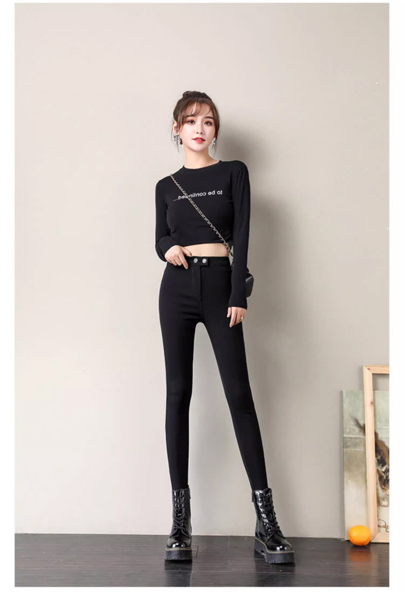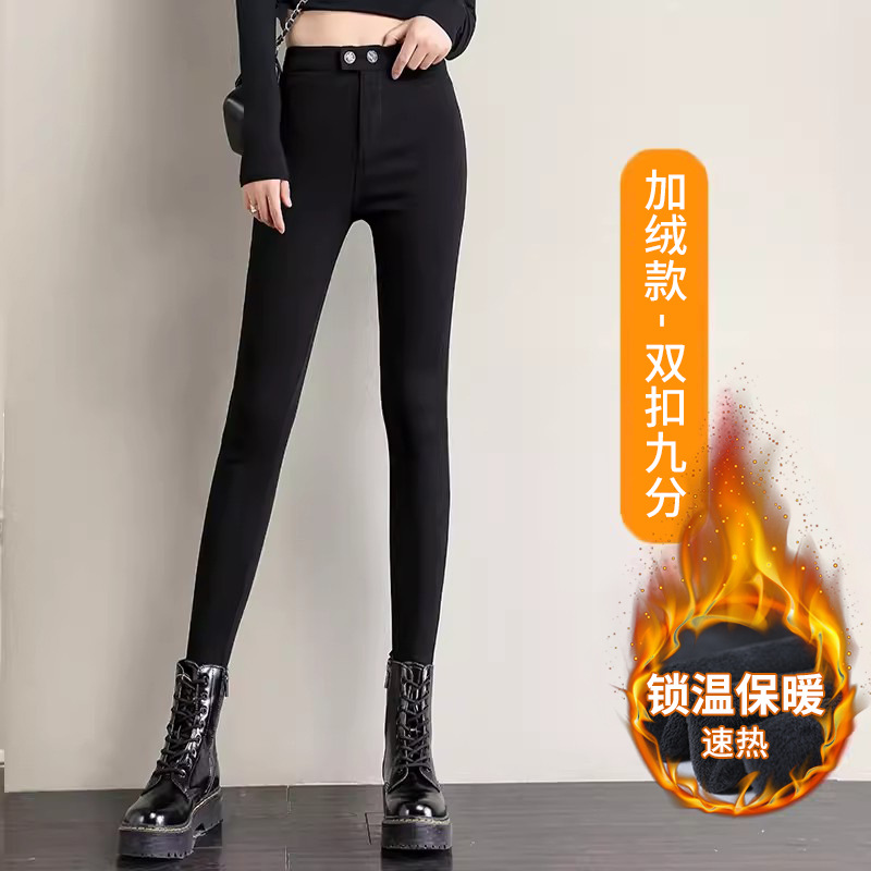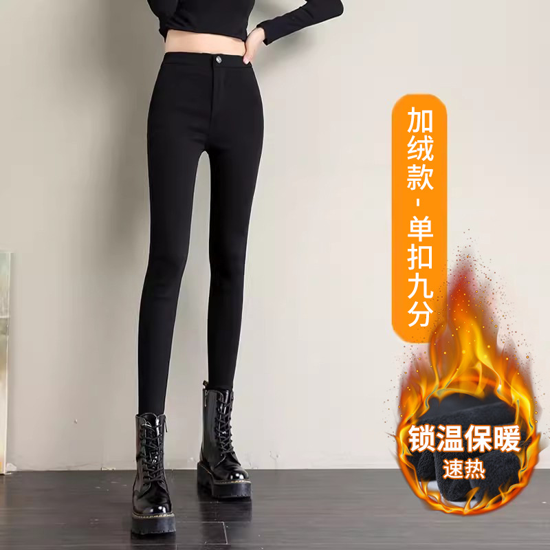 블랙 기모 레깅스 여자의 겉옷 겨울 하이 웨이스트 꽉 발 연필 봄과 가을 높은 탄성 슬림 매직 바지스토어 가기