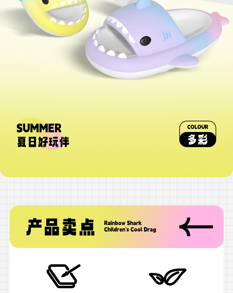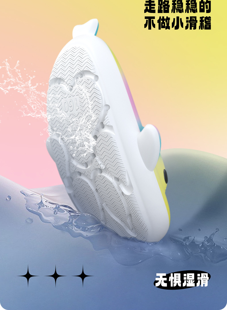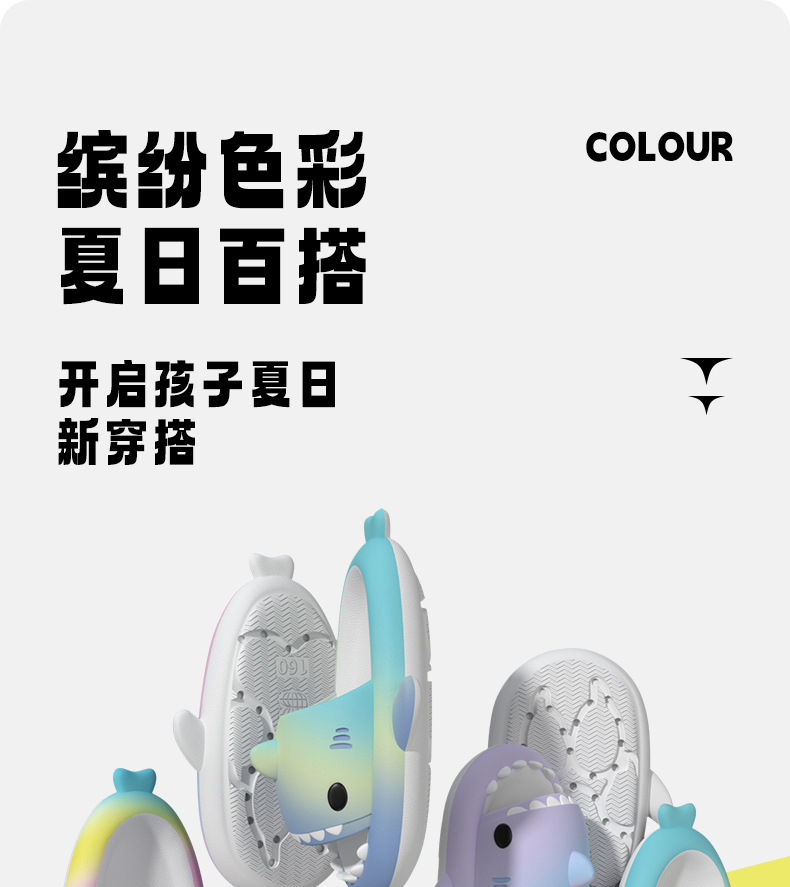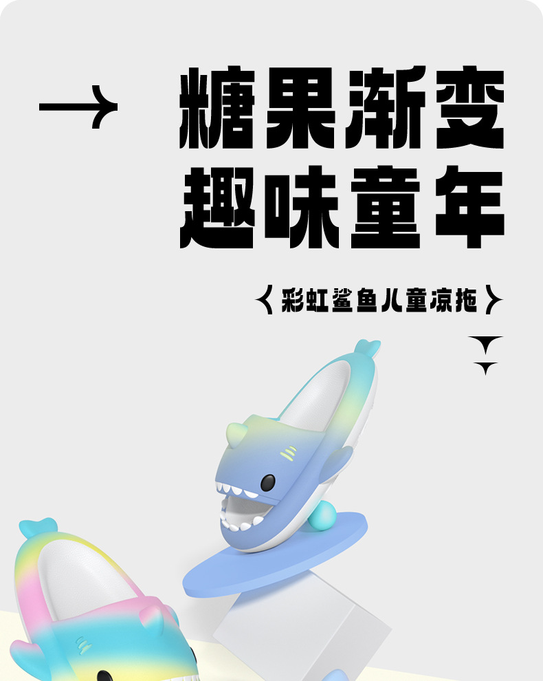 국경 간 폭발 무지개 그라데이션 어린이 상어 샌들 귀여운 만화 소년 소녀 실내 미끄럼 방지 아기 샌들
