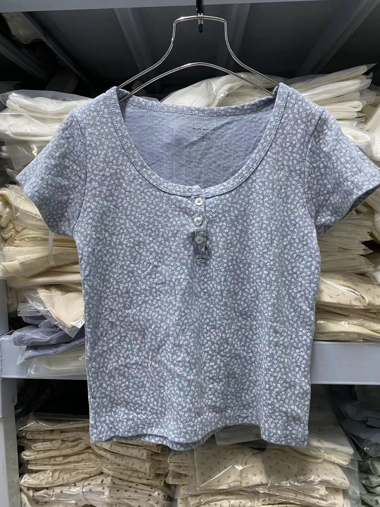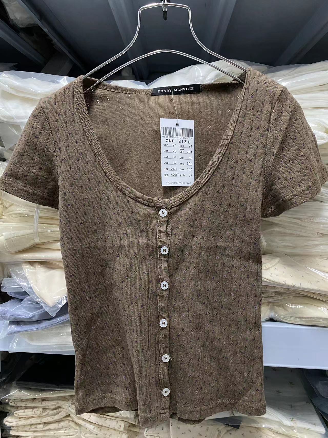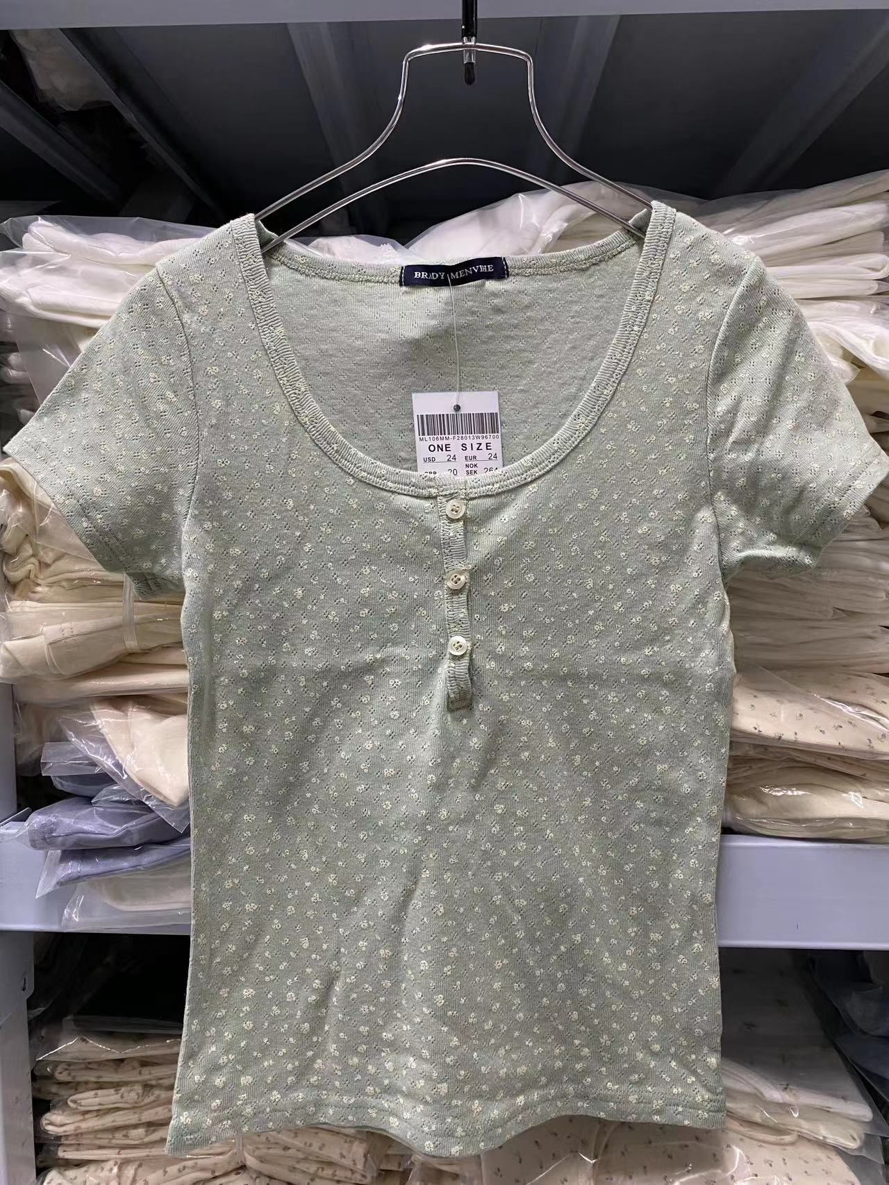 BM 스타일 아메리칸 스타일 플랫 멀티 컬러 중공 3 버튼 슬림 핏 반팔 티셔츠 소녀 스파이스 아이 탑
