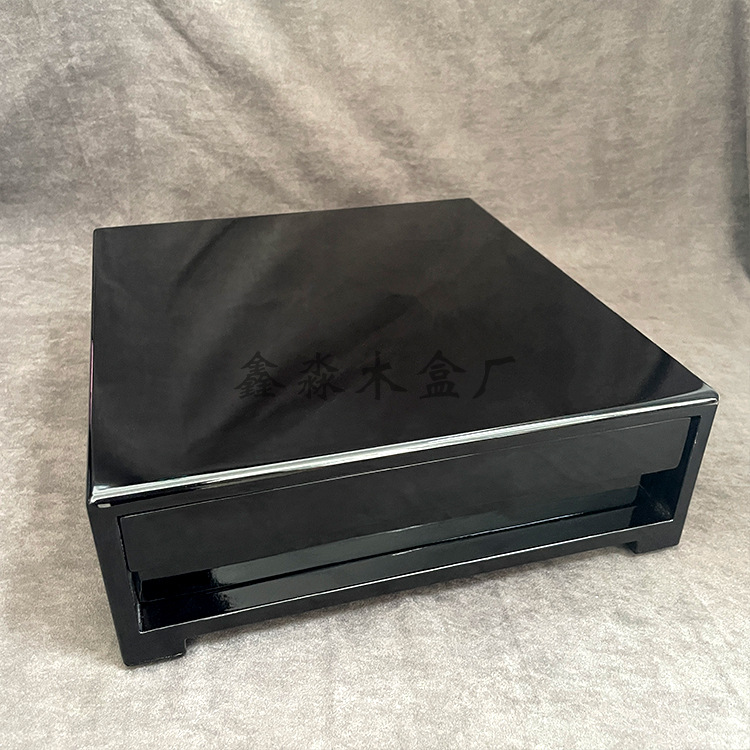 제조업체는 서랍 커피 머신 나무 베이스가 있는 고광택 피아노 페인트 블랙 커피 캡슐 나무 선물 상자를 맞춤 제작했습니다.스토어 가기