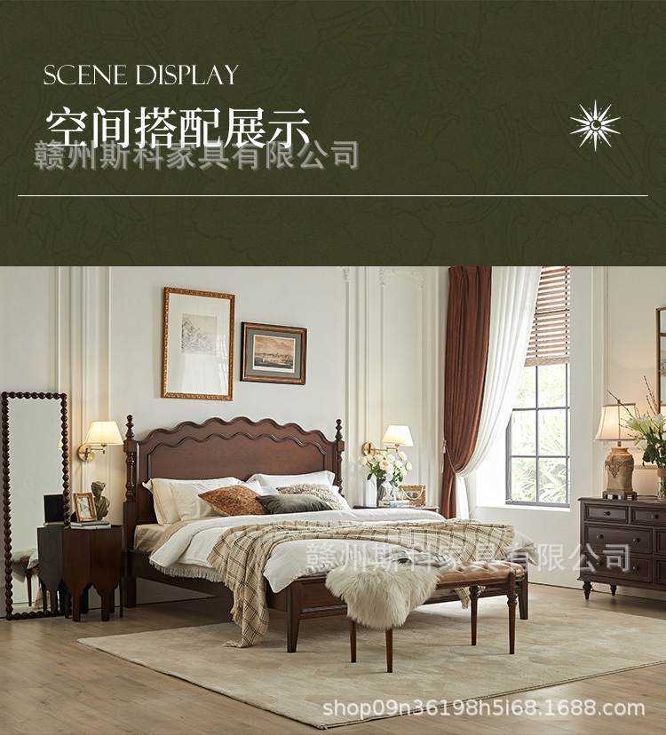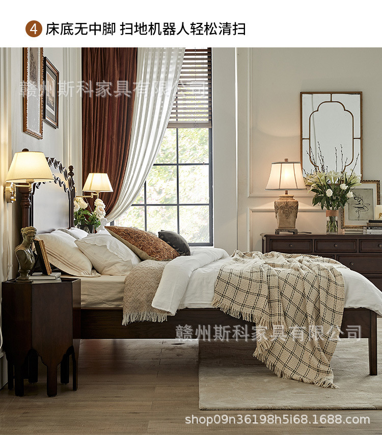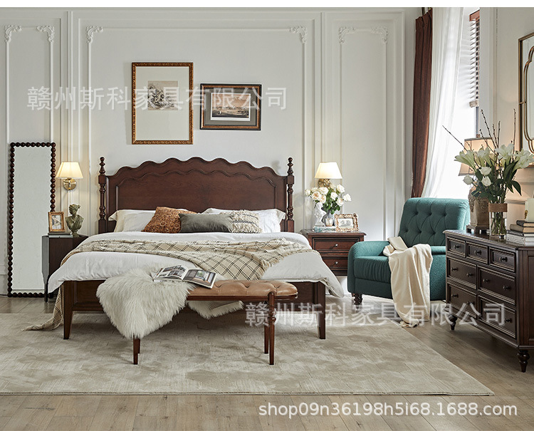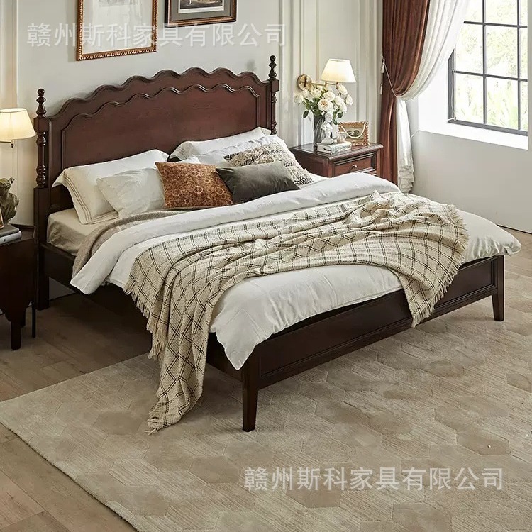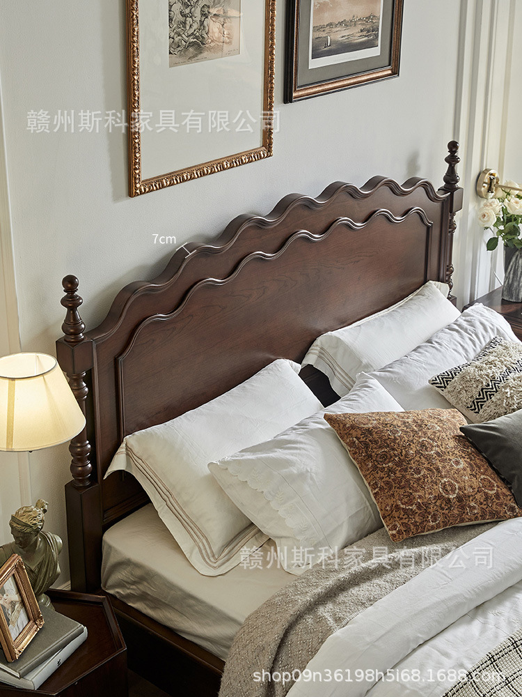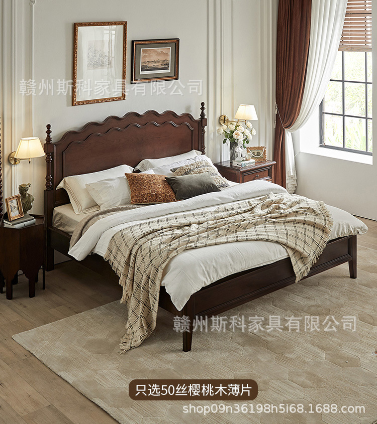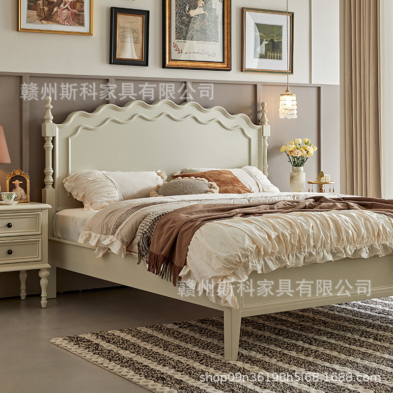 아메리칸 스타일 단단한 나무 침대 에이미 침대 프랑스 스타일 조각 된 침대 화면 마스터 침실 더블 퀸 침대 빛 복고풍 간단한 웨딩 침대스토어 가기