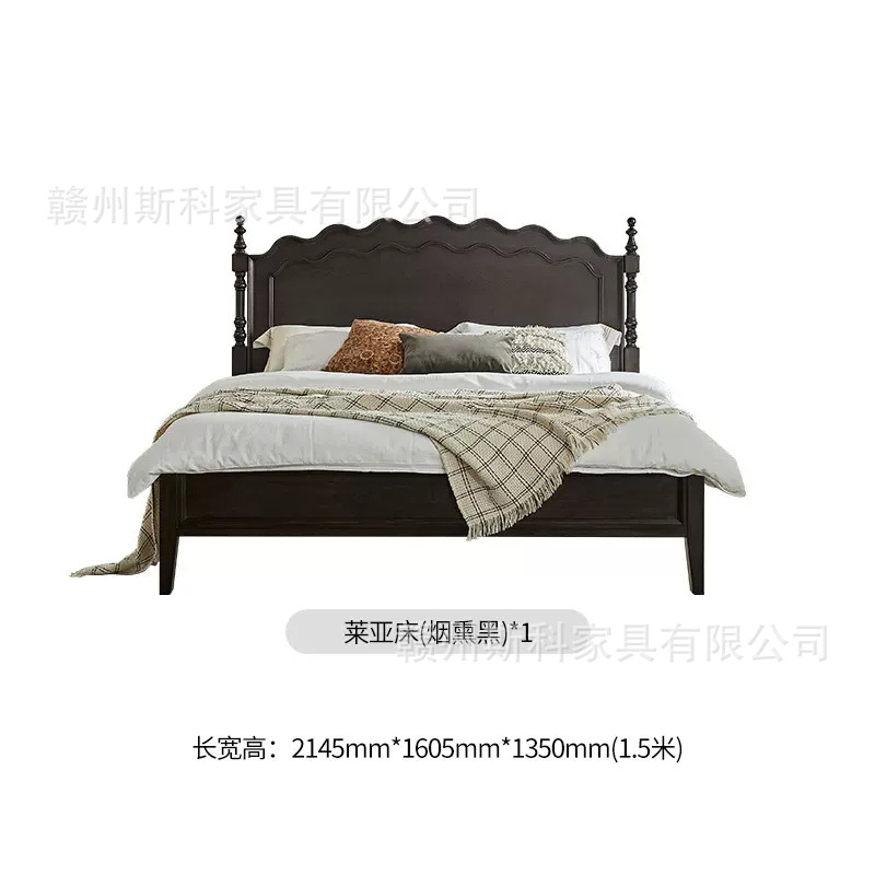 • 솔리드 우드 싱글 침대 (스모키 블랙)