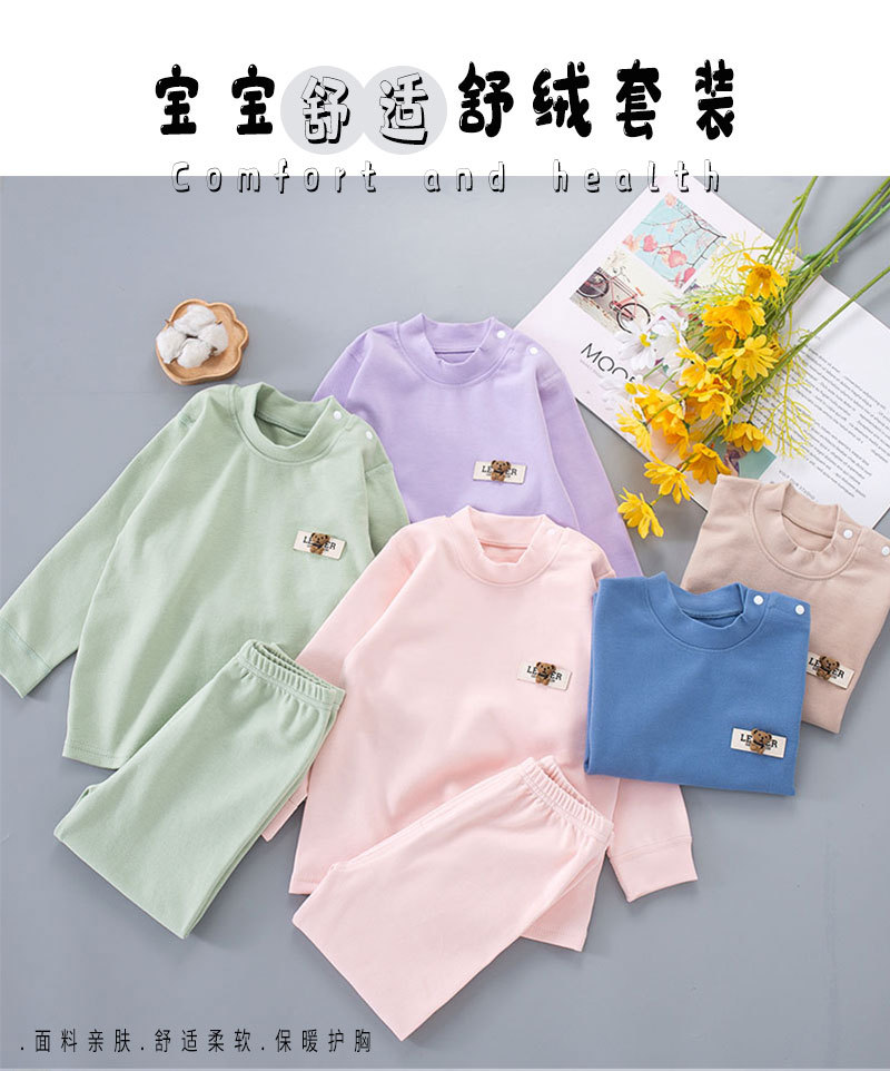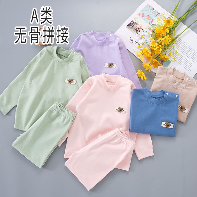 벨벳 무봉제 스플라이싱 1~15세 남아 여아 가을옷 가을바지 순면 A급 중대형 아동 속옷 홈웨어 세트