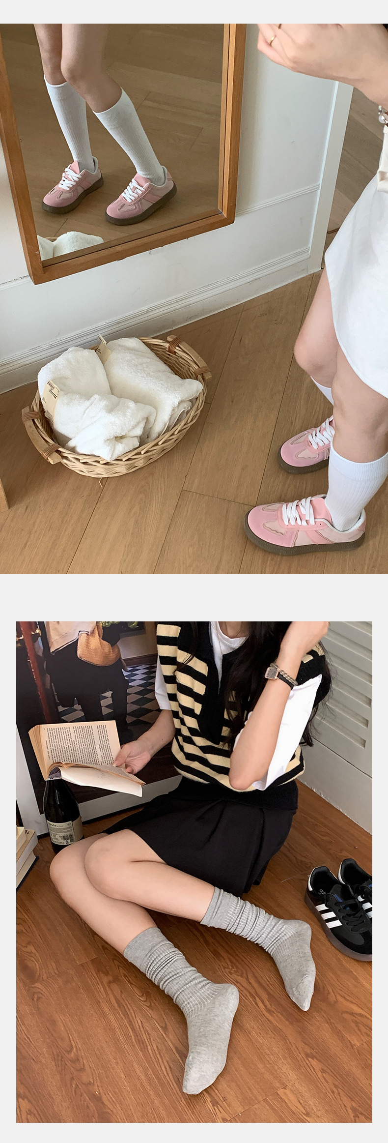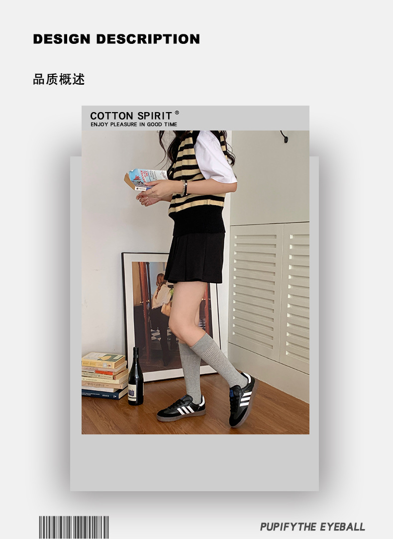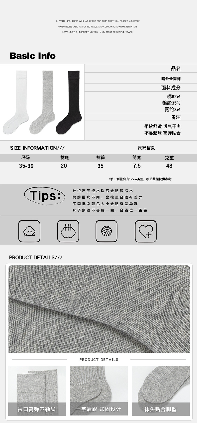 아카데미 스타일 패션쇼 다크 스트라이프 니트 중간 길이 양말 JK 커프 양말 얇은 대마 그레이 유행 틈새 스택 양말