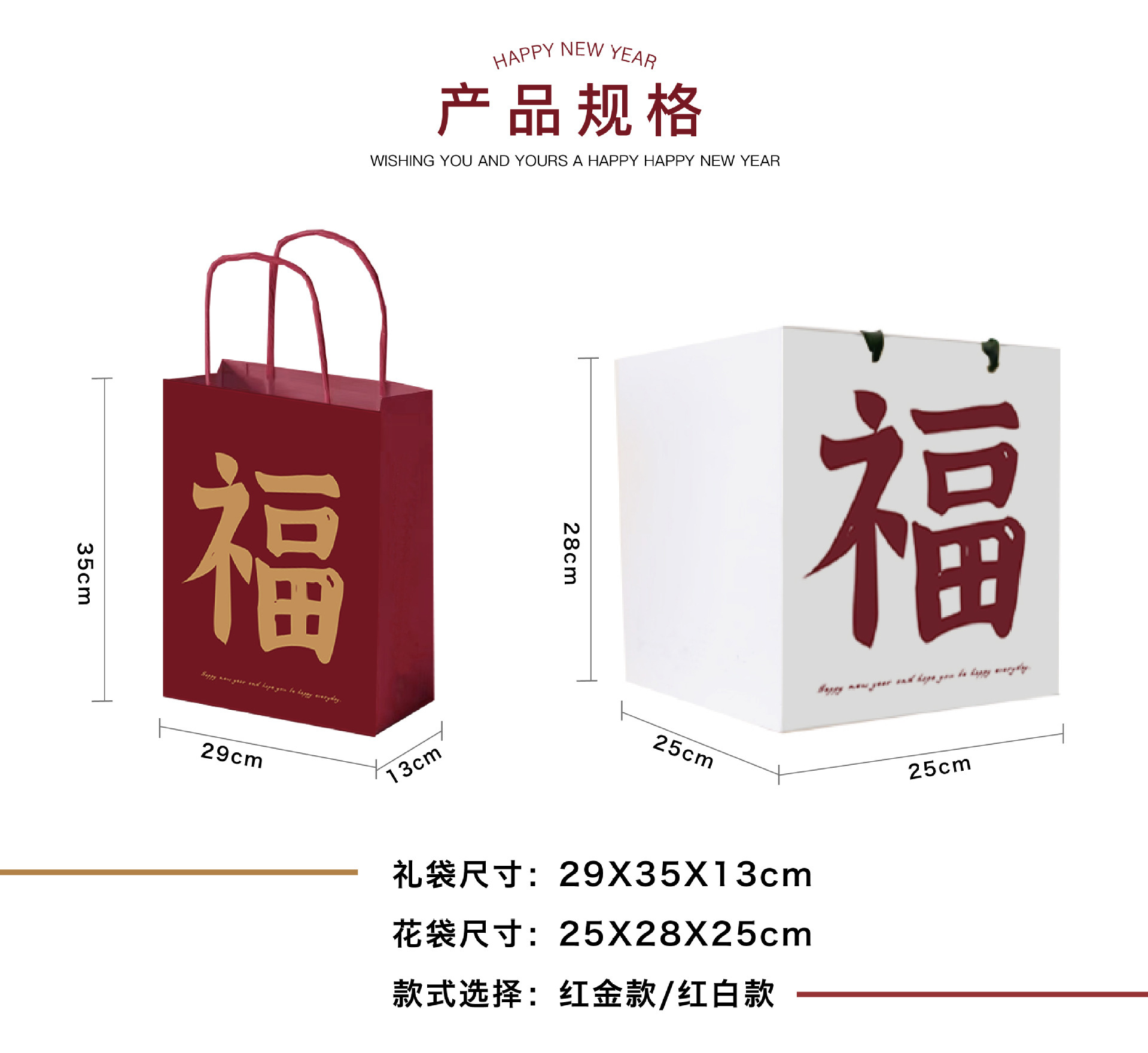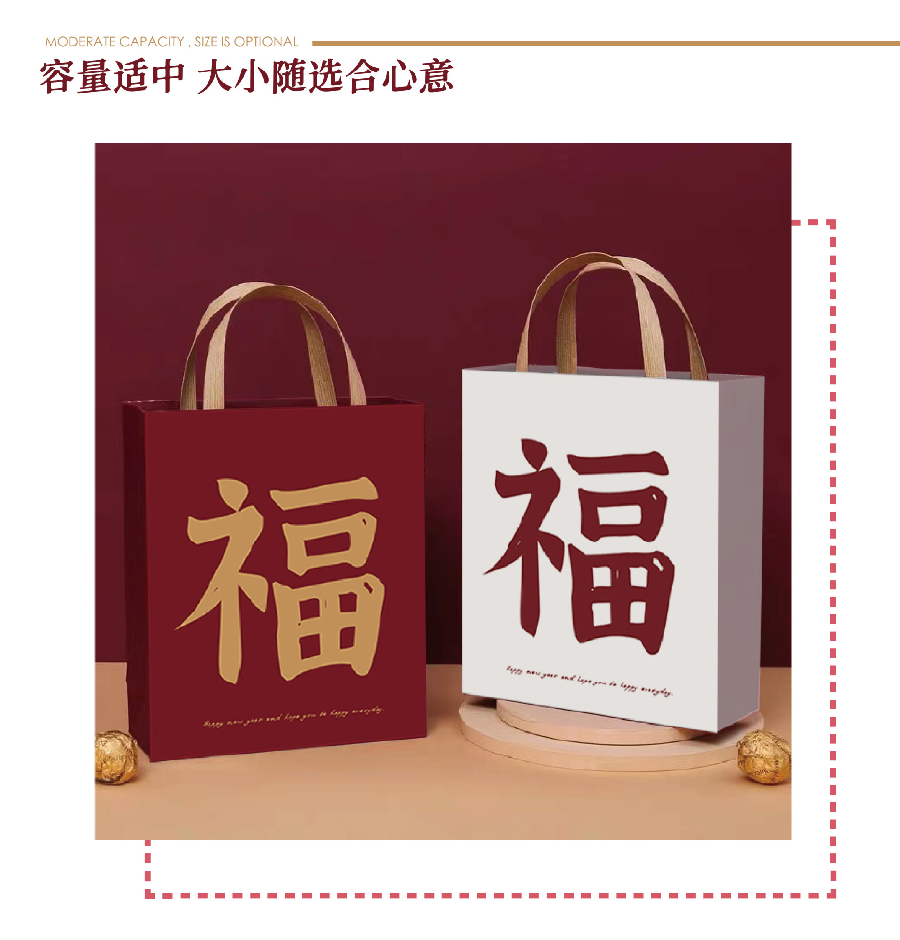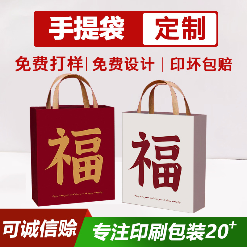 새해맞이 맞춤형 핸드백, 축제용 빨간색 선물 가방, 종이 가방, 고급 쇼핑백, 맞춤 제작 대량 주문