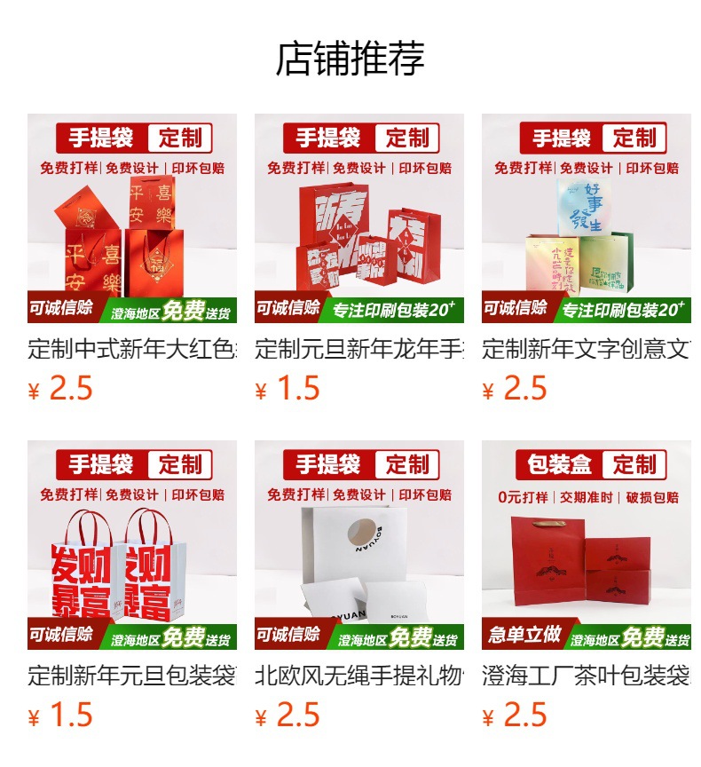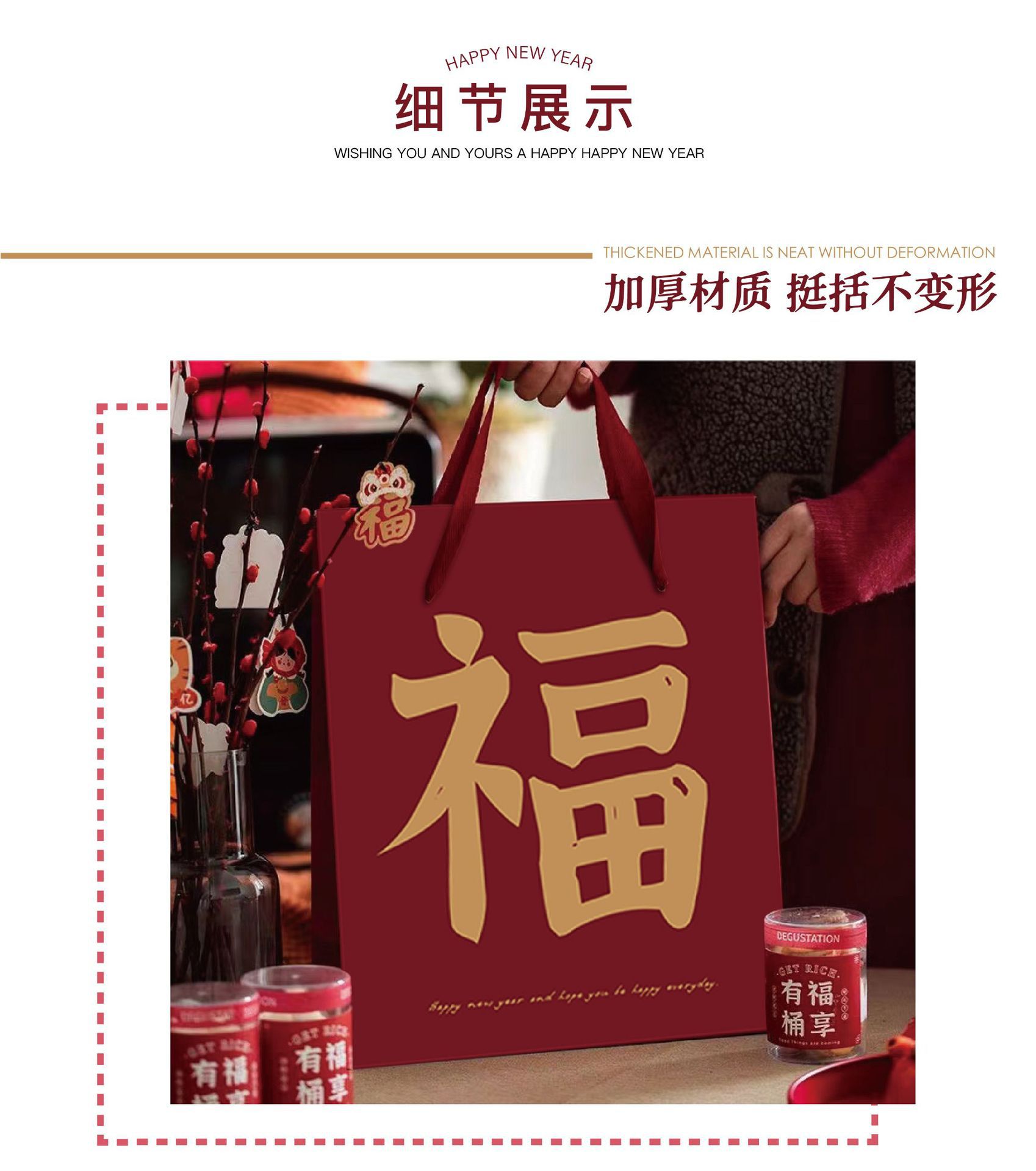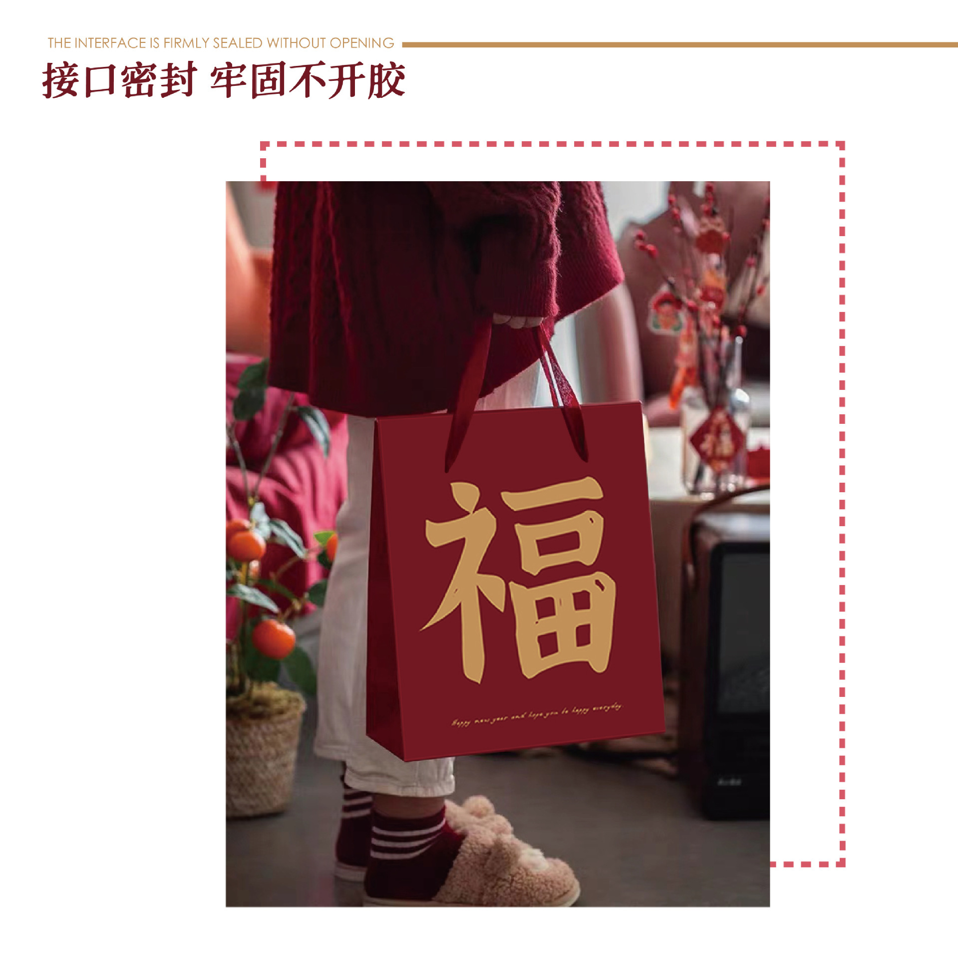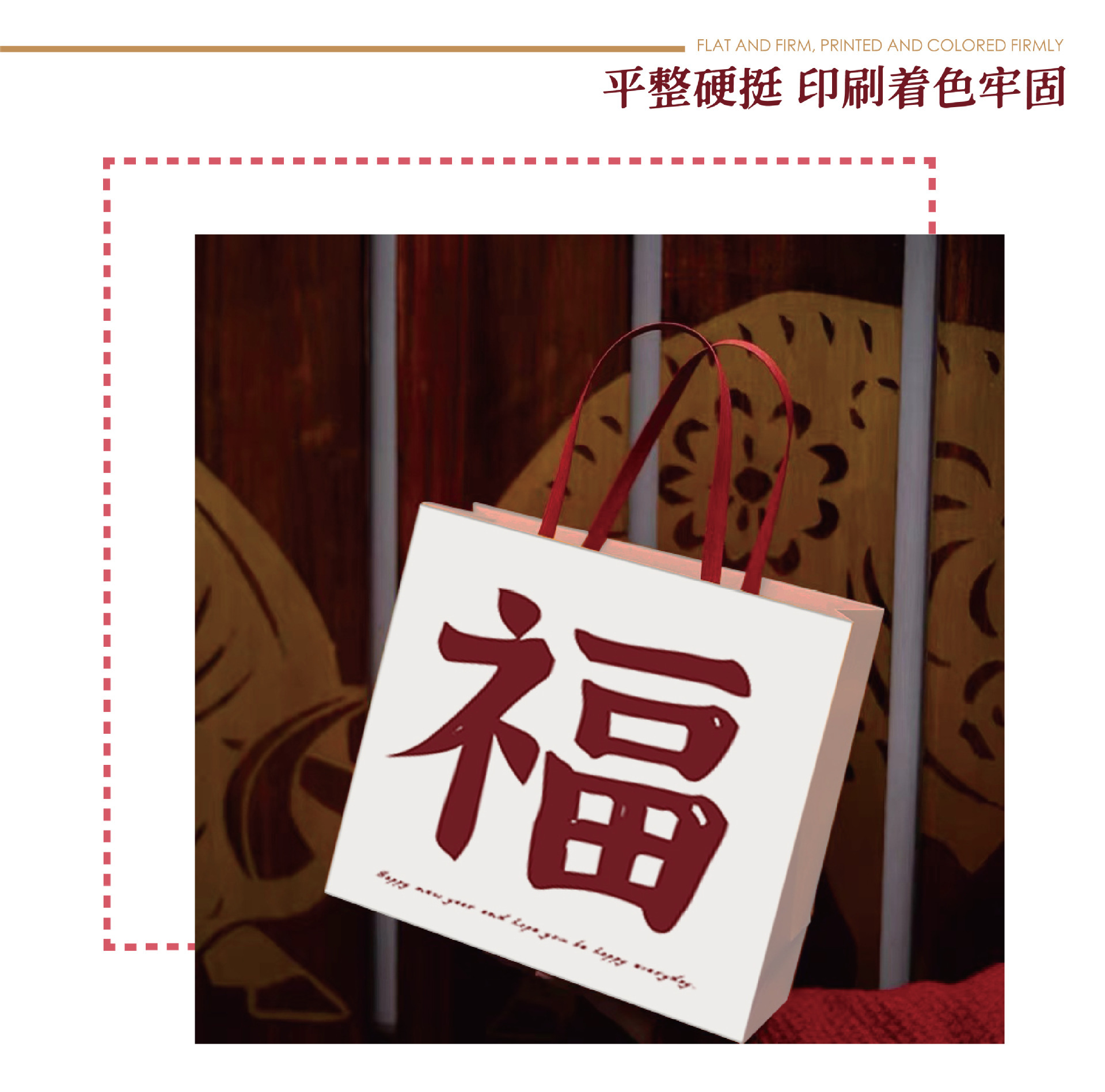 새해맞이 맞춤형 핸드백, 축제용 빨간색 선물 가방, 종이 가방, 고급 쇼핑백, 맞춤 제작 대량 주문스토어 가기