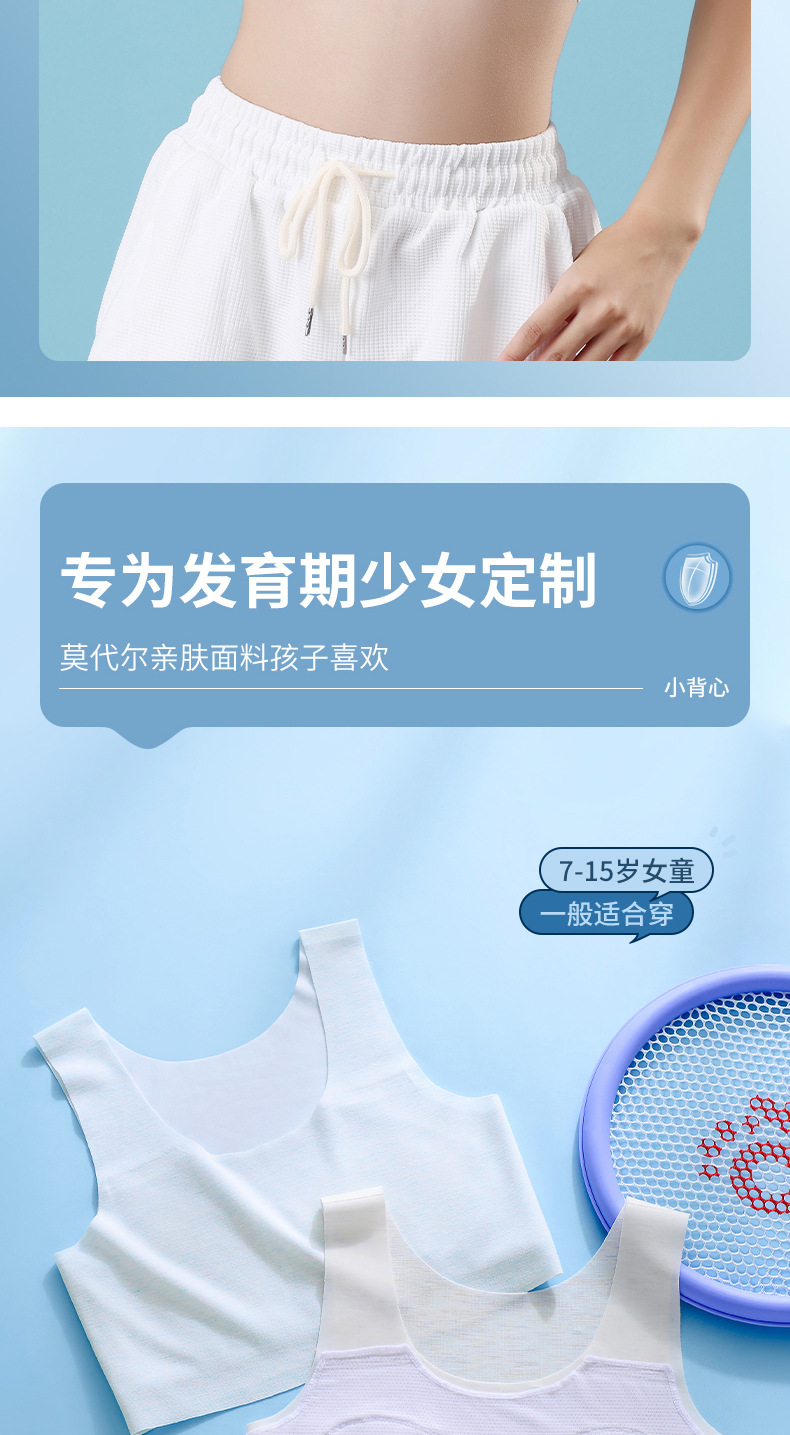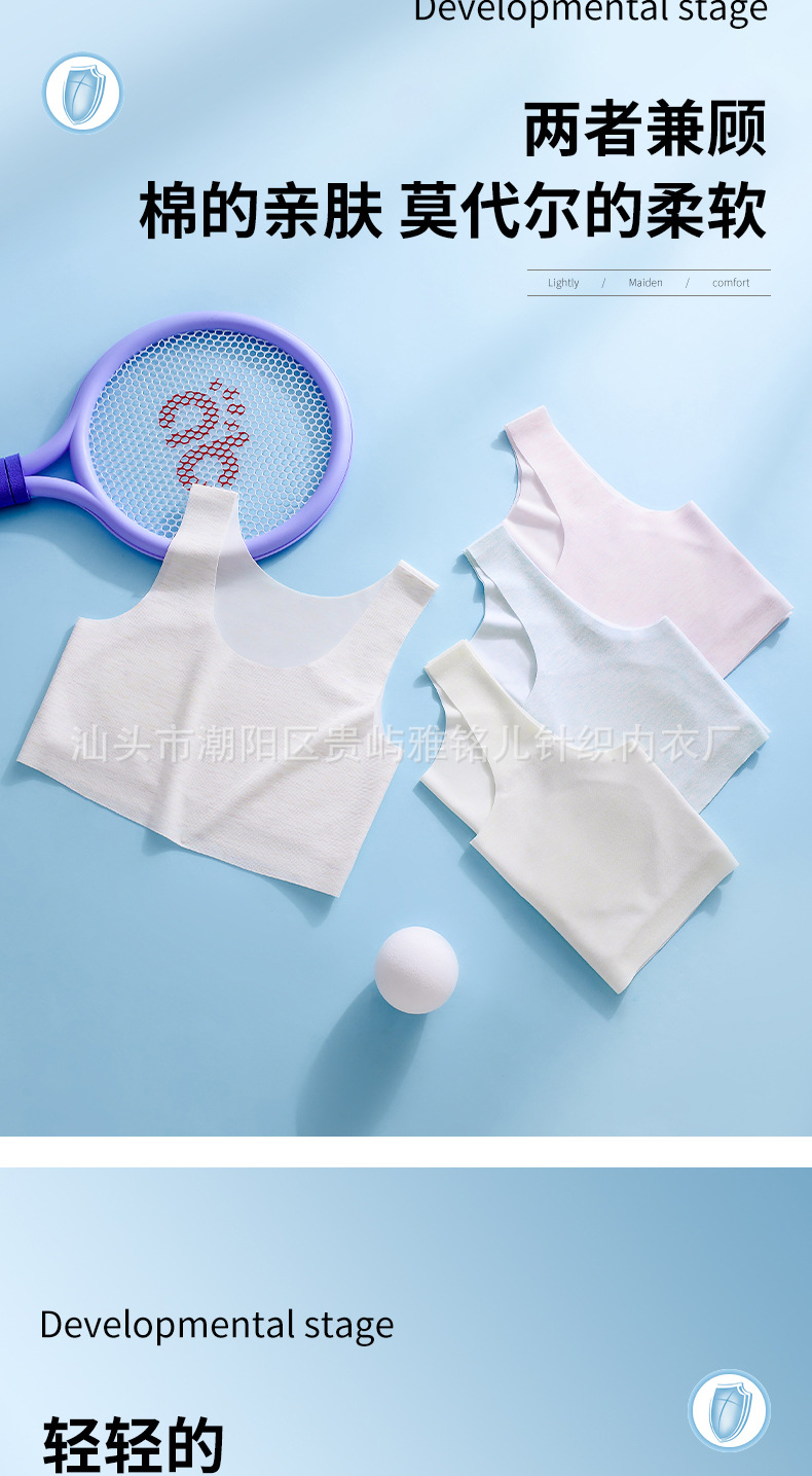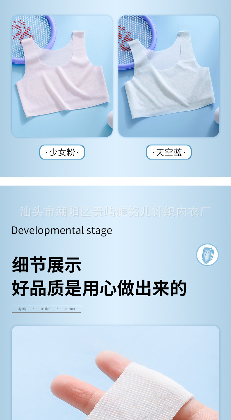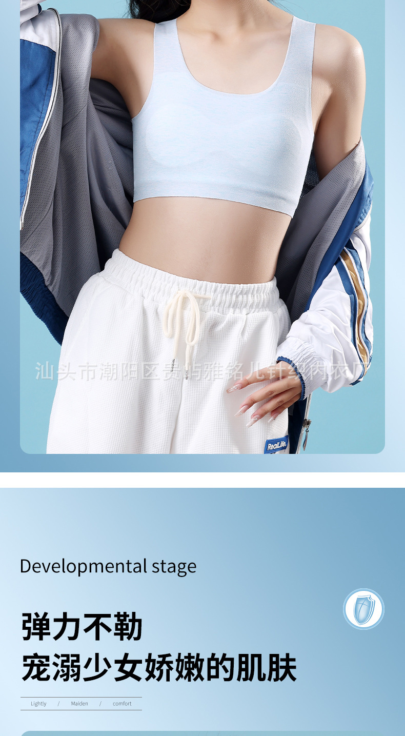 흔적없는 중학교 여아 속옷 여아 발달 초등학생 스포츠 조끼 벨트 가슴 패드 중학생 브라
