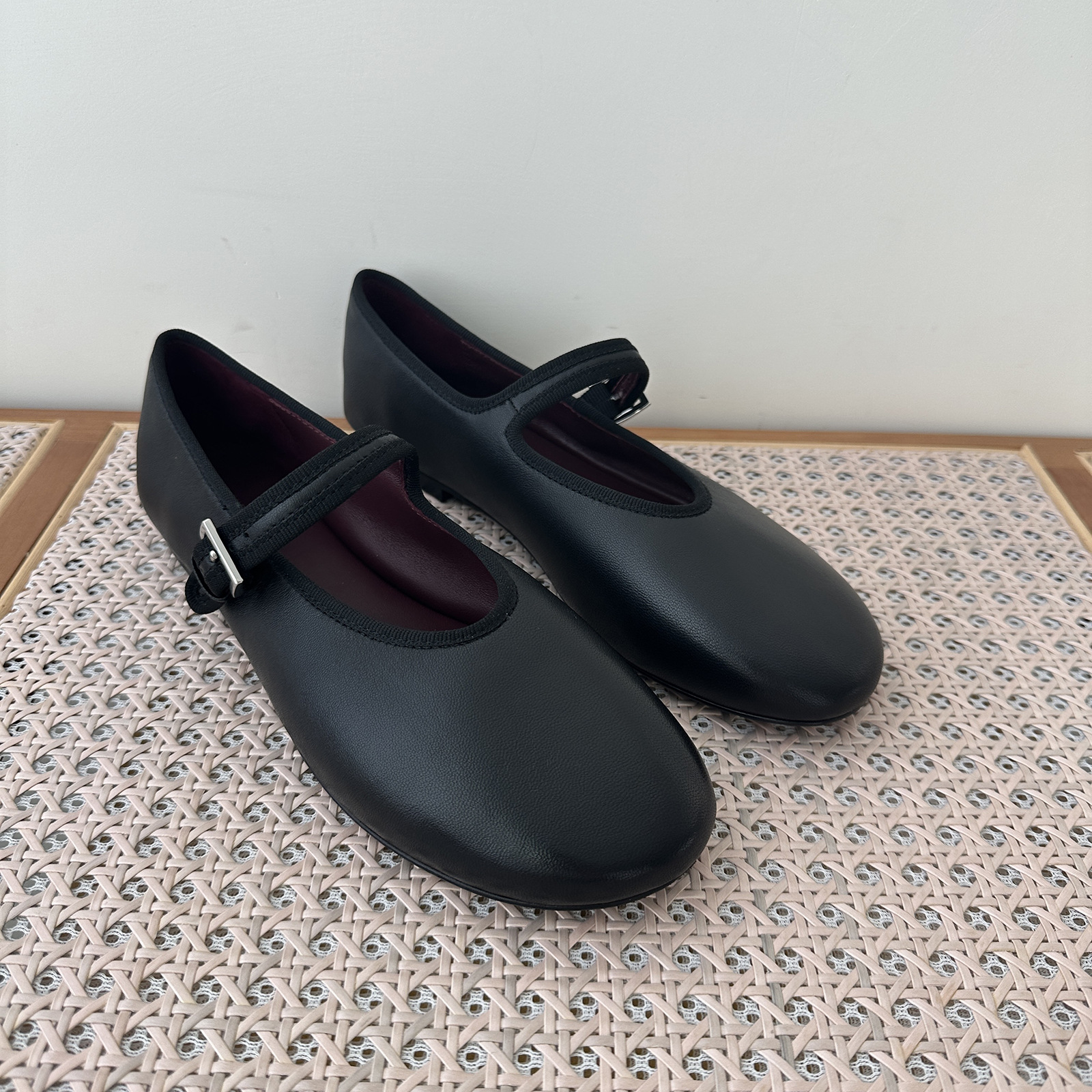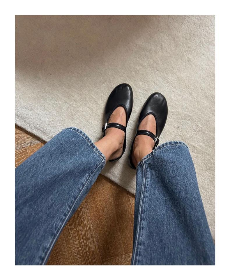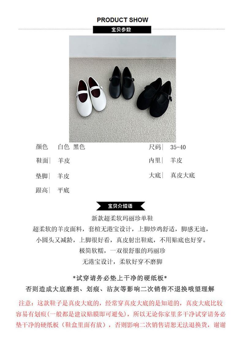 탑플레이트 니치 양가죽 메리제인 여성화 발레 플랫 버클 펌프스 라운드 토 천연가죽 신발 작은 가죽 신발스토어 가기