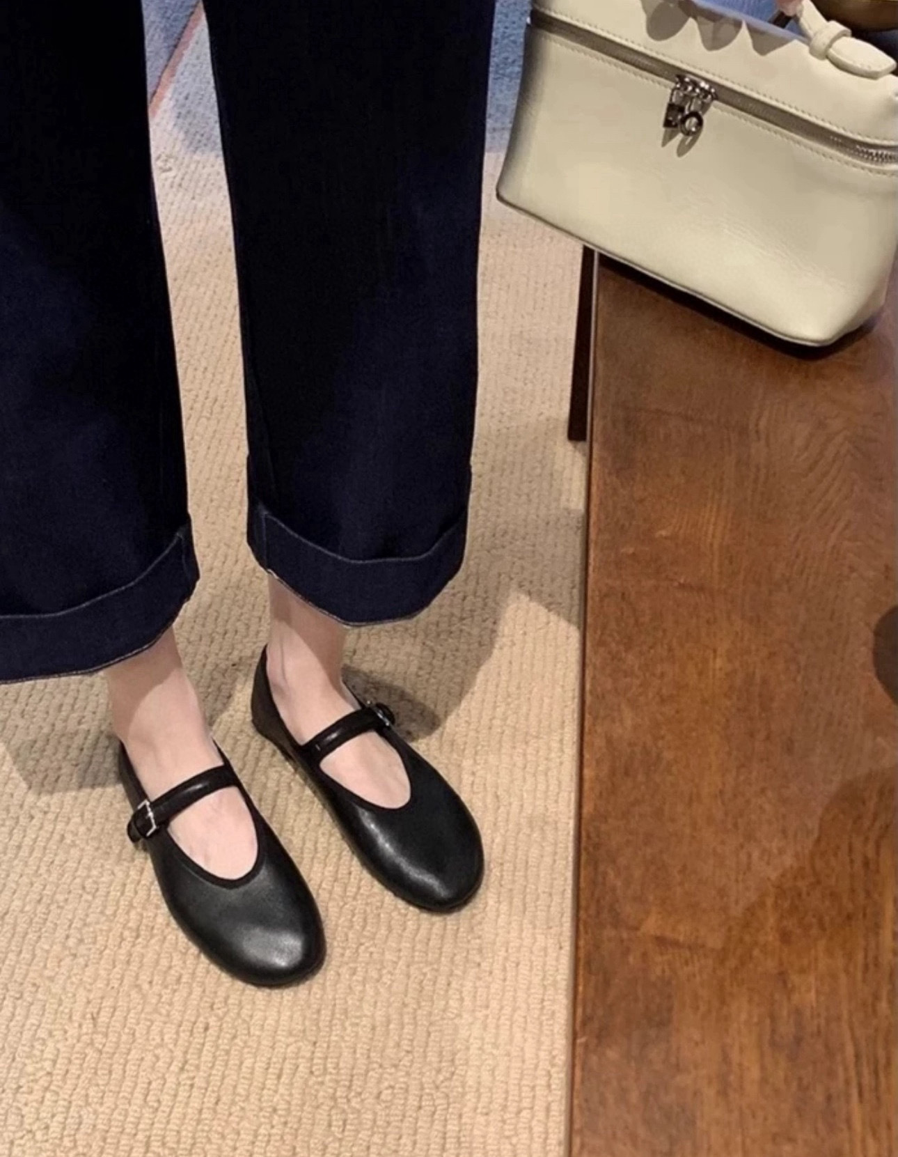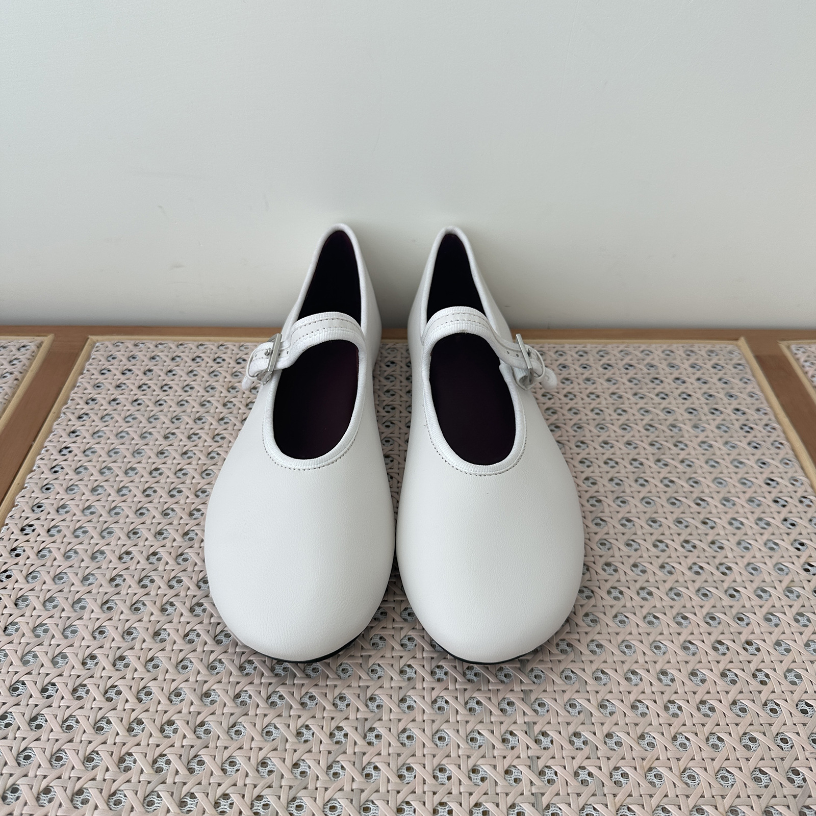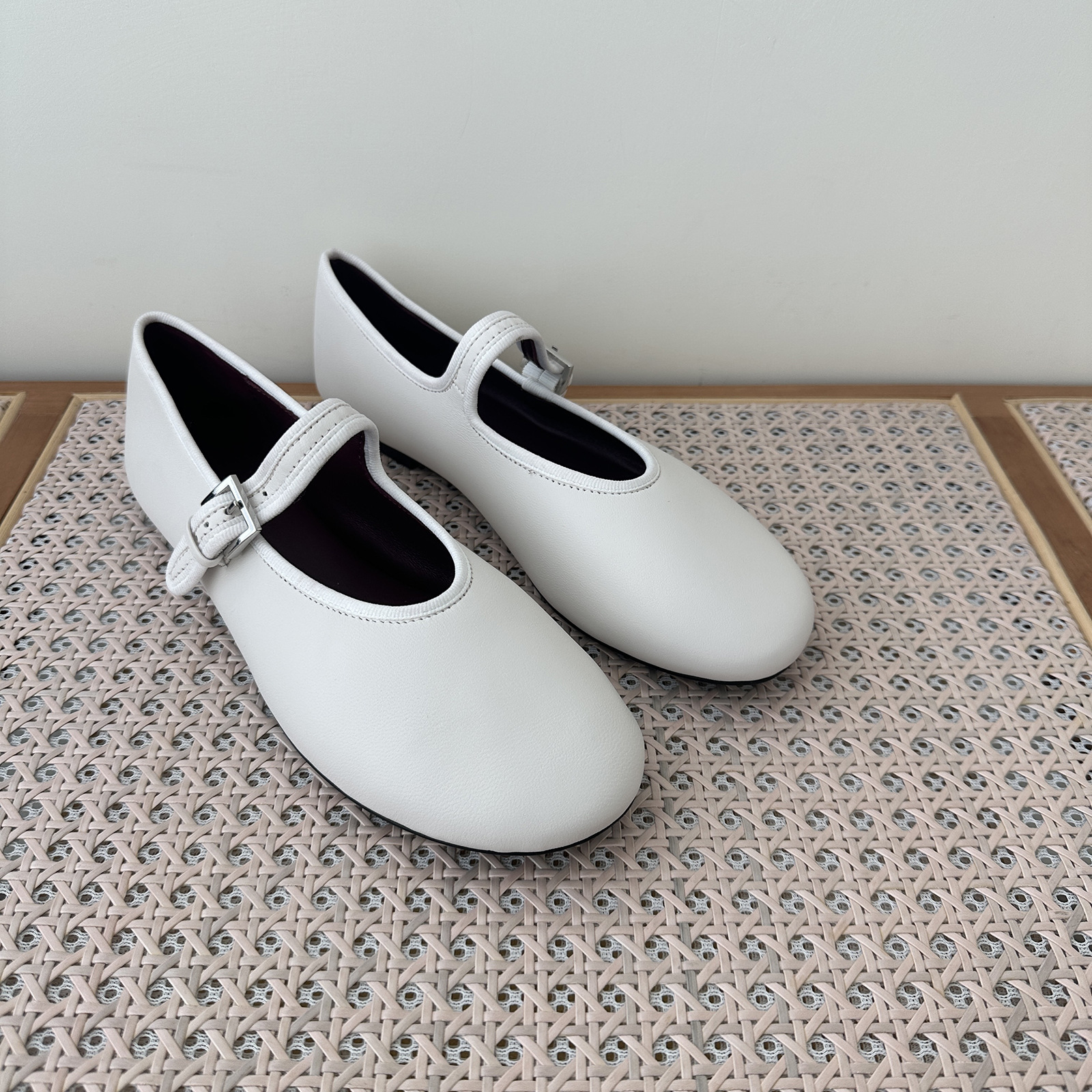 탑플레이트 니치 양가죽 메리제인 여성화 발레 플랫 버클 펌프스 라운드 토 천연가죽 신발 작은 가죽 신발스토어 가기