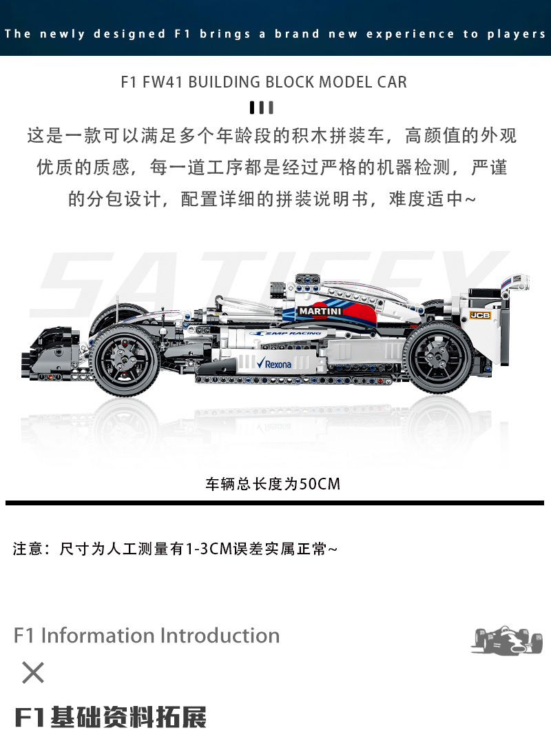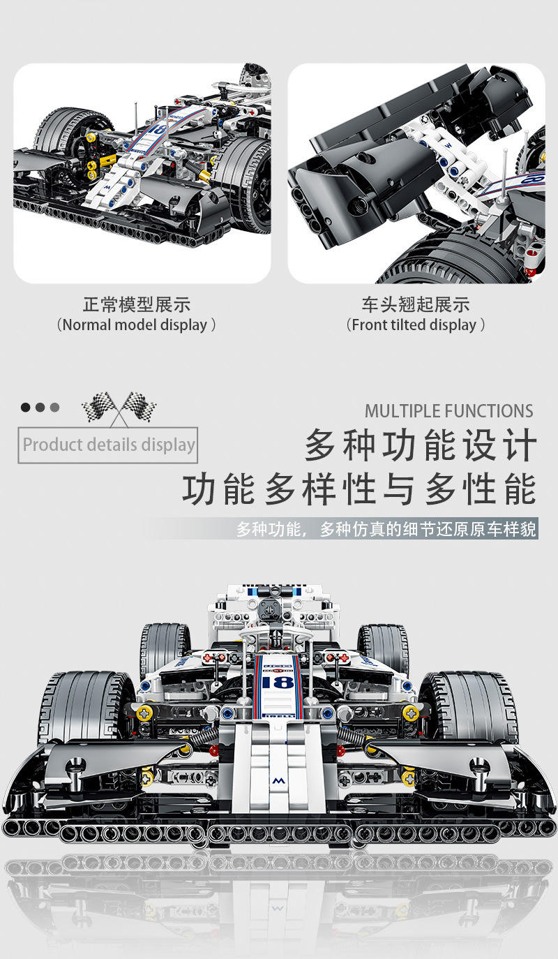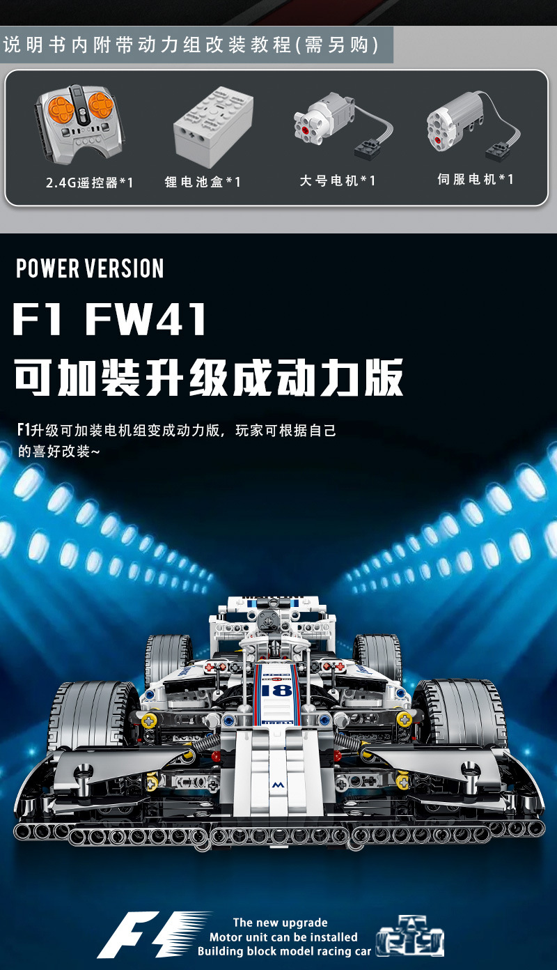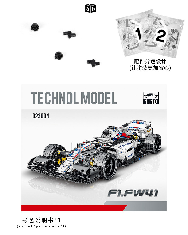 모델 MK-023004 기술 모델 FW41 레이싱 크리에이티브 시리즈 퍼즐 조립 된 작은 입자 빌딩 블록 모델