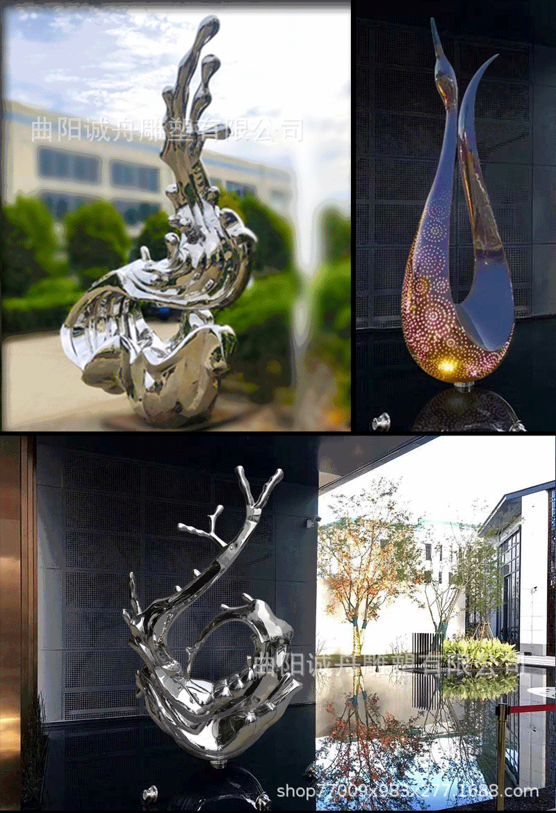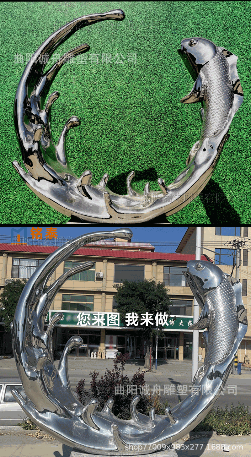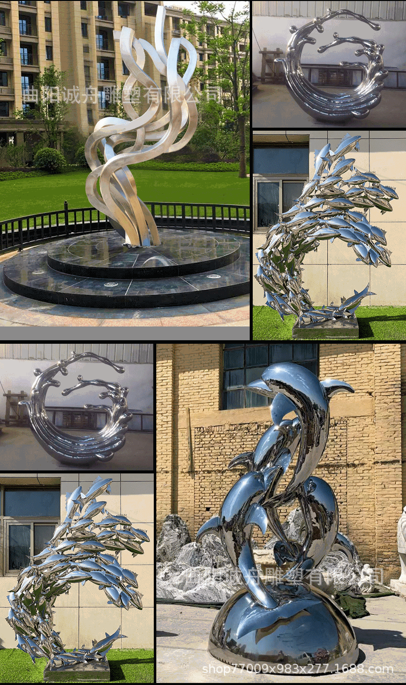 워터 드롭 워터 스프레이 물고기 그룹 창조적 인 스테인레스 스틸 거울 조각 공원 수영장 풍경 조경 창조적 인 장식품스토어 가기