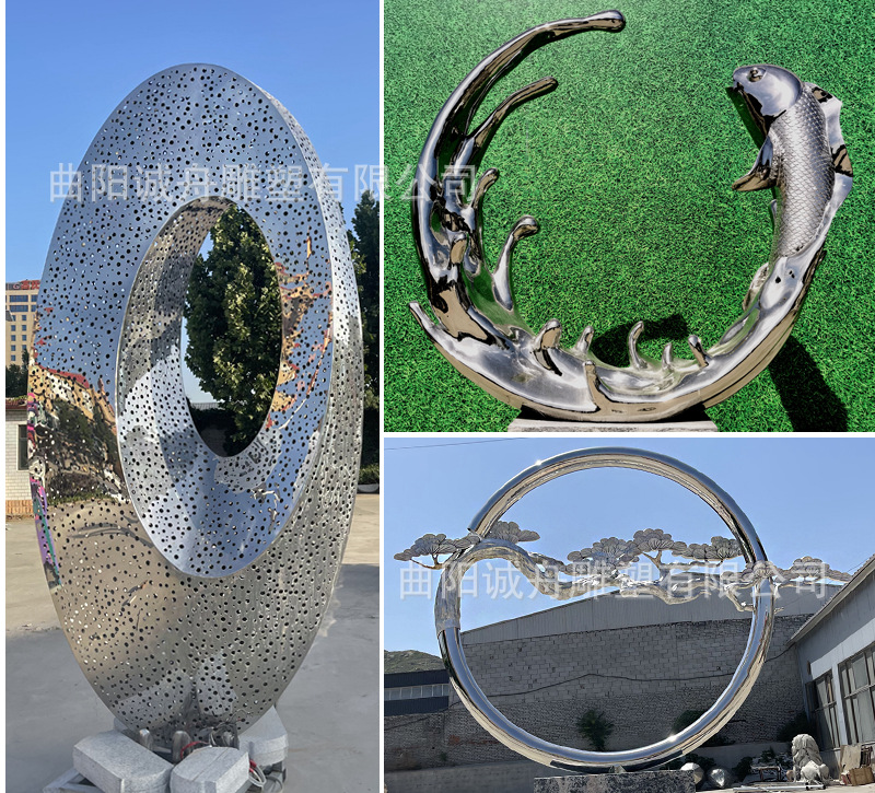워터 드롭 워터 스프레이 물고기 그룹 창조적 인 스테인레스 스틸 거울 조각 공원 수영장 풍경 조경 창조적 인 장식품