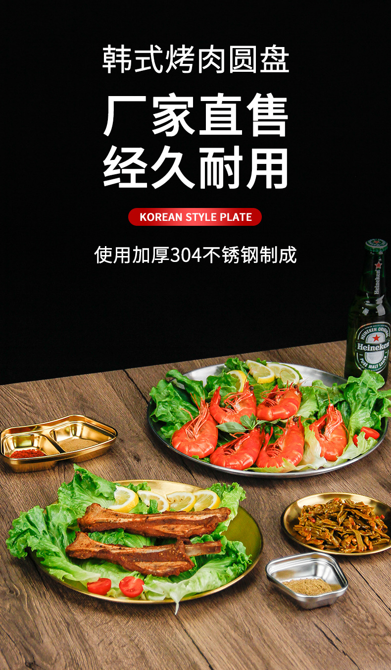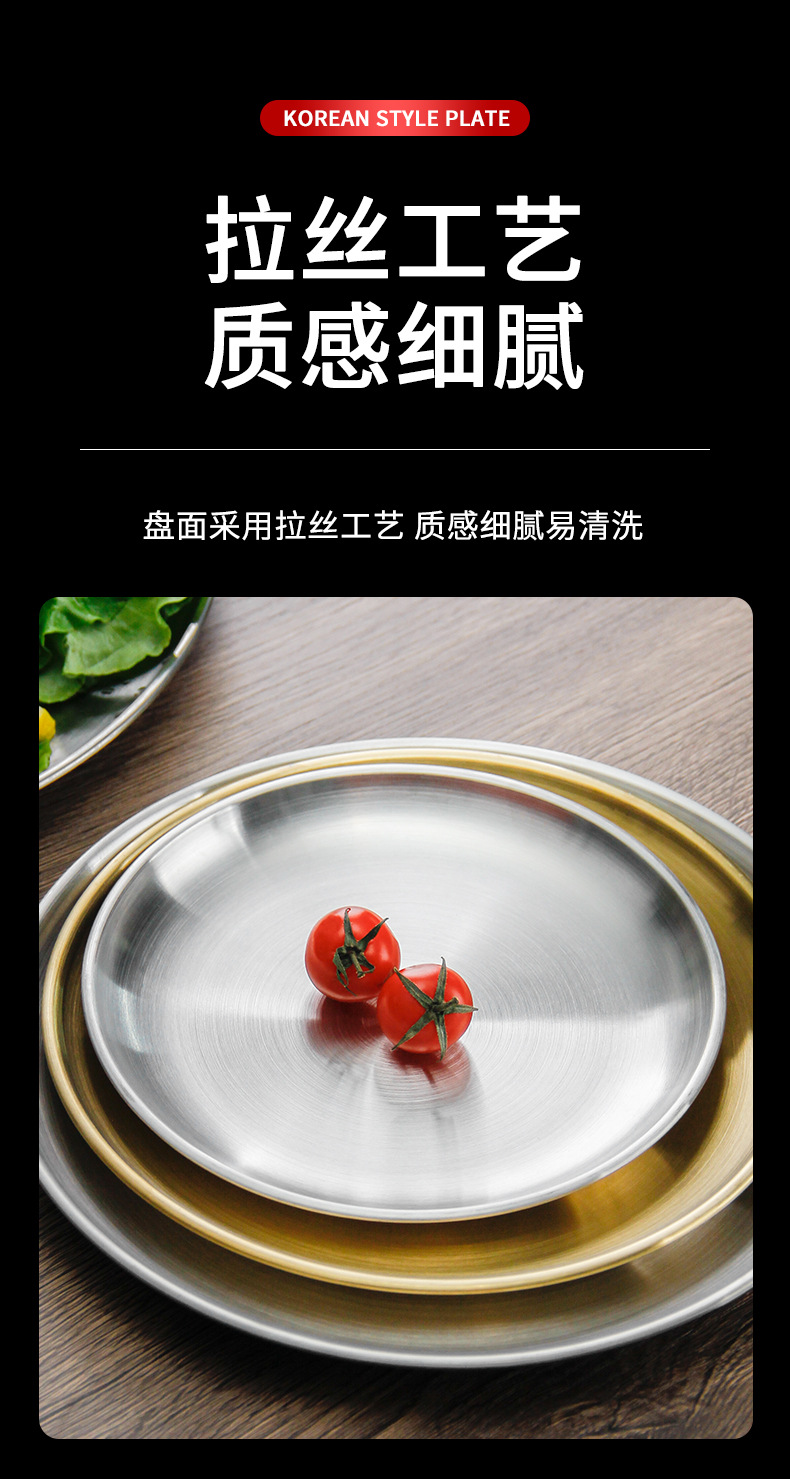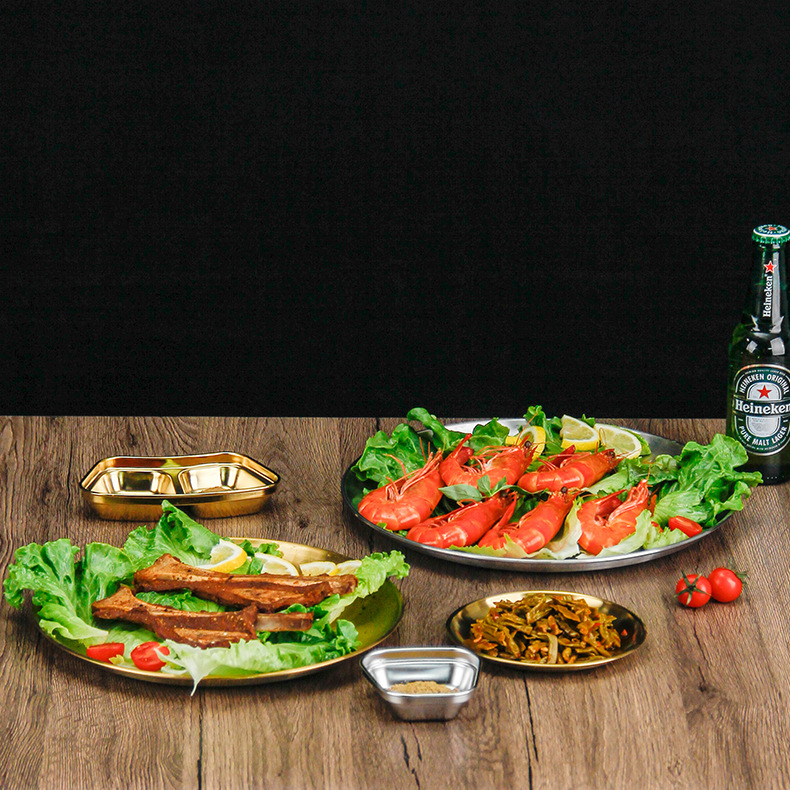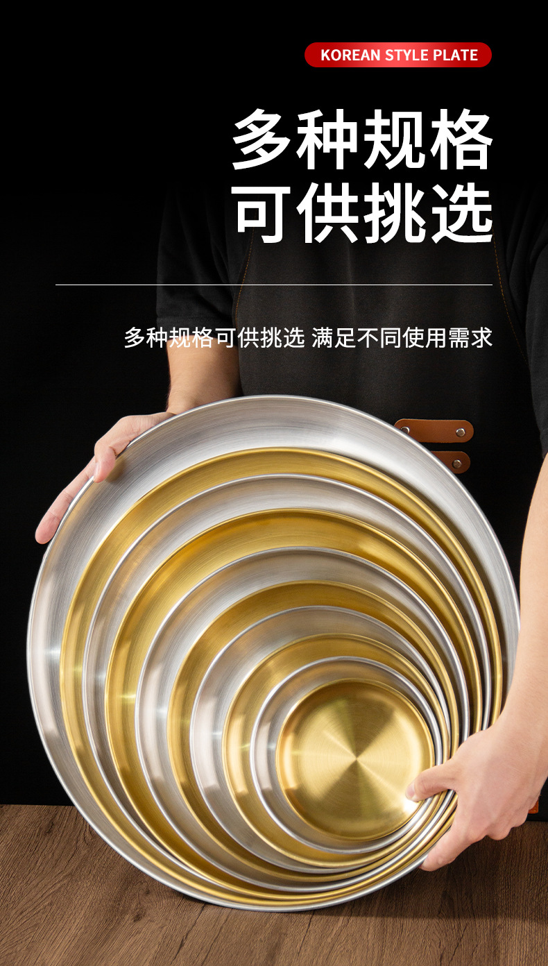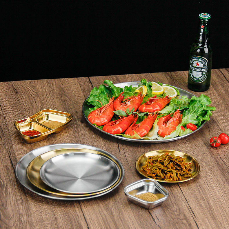 스테인레스 스틸 라운드 플레이트 디저트 플레이트 야채 플레이트 상업용 스테인레스 스틸 디너 플레이트 바베큐 플레이트 트레이 플레이트 고가스토어 가기